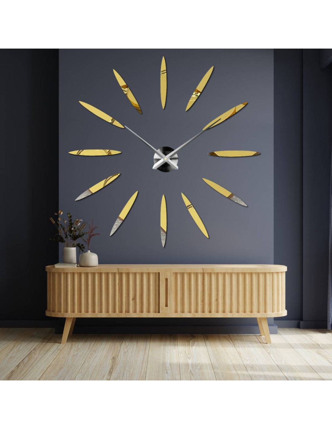 Die luxuriöse selbstklebende Wanduhr aus goldverspiegeltem Plexiglas ist eine ideale Ergänzung für jedes moderne Interieur.