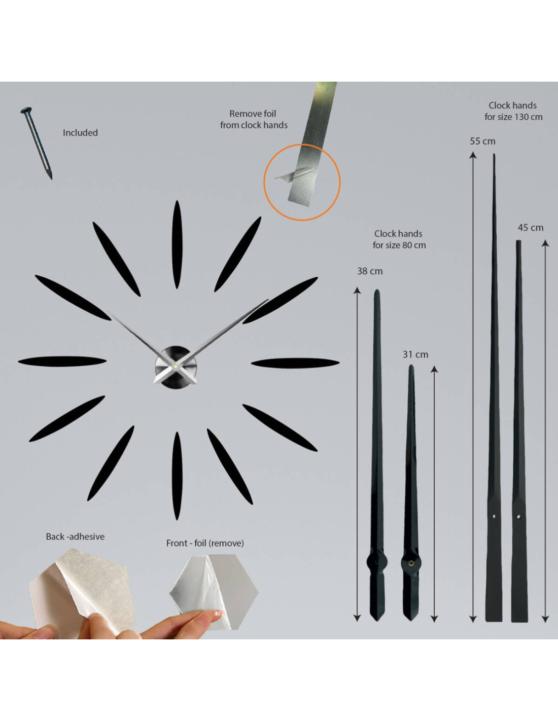 Die Montage der Uhr ist kinderleicht und ohne Bohren möglich – einfach nach beiliegender Anleitung und Schablone aufkleben.