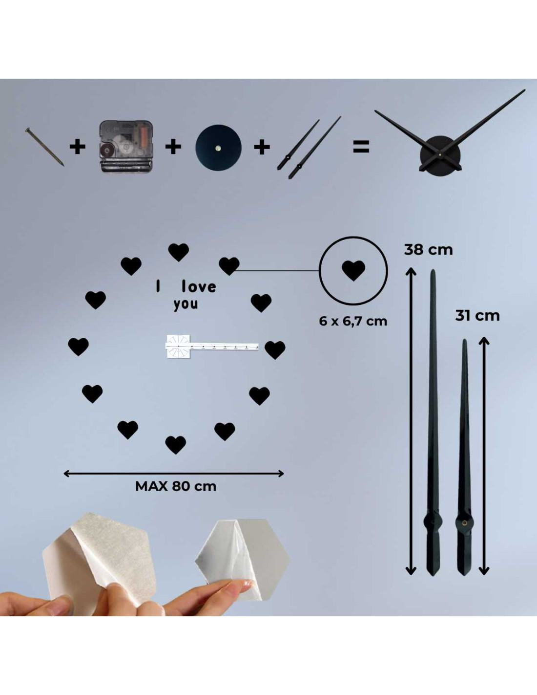 • Die Zifferblätter verfügen über eine selbstklebende Schicht, so dass die Montage schnell und ohne Bohren möglich ist.