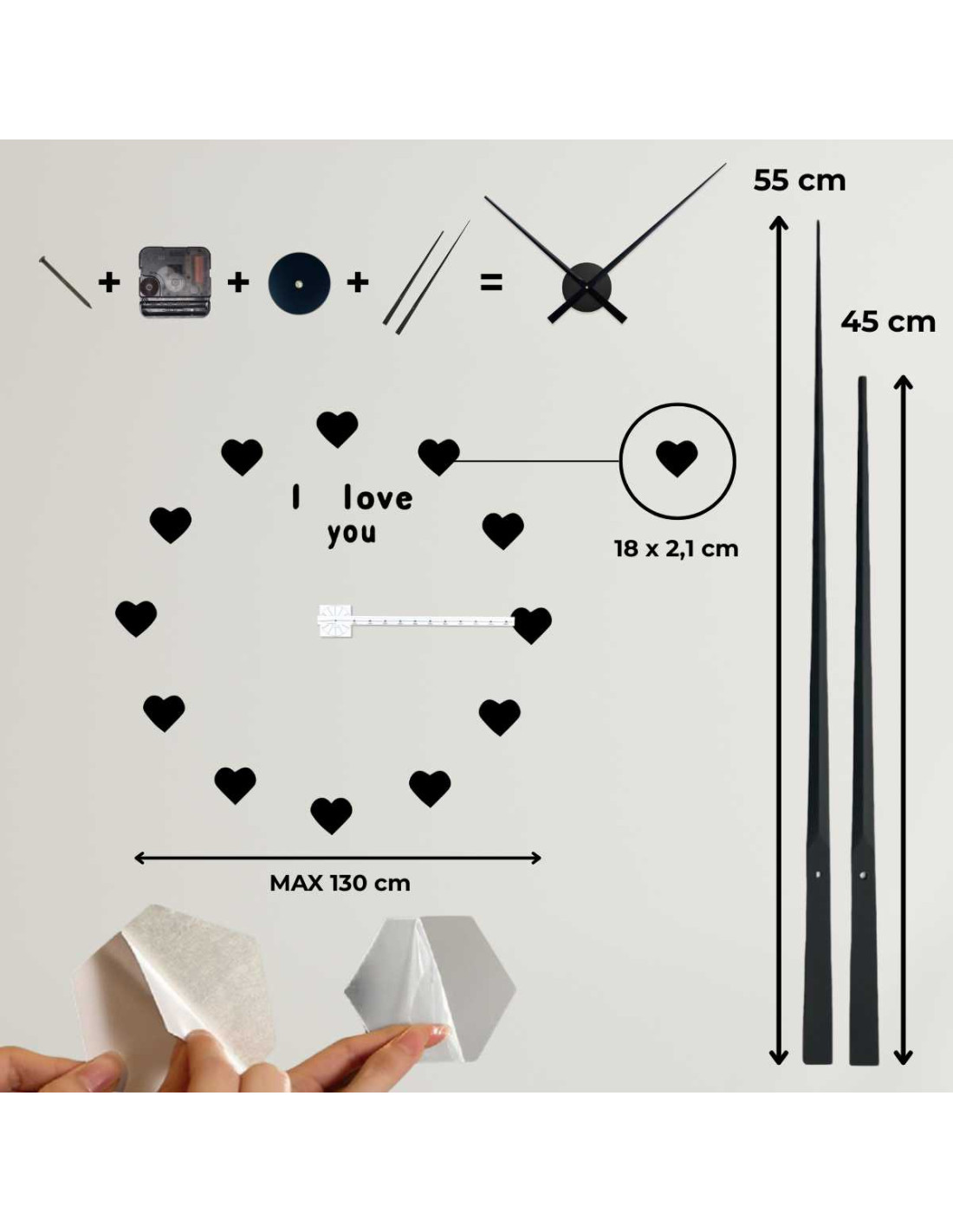 Entdecken Sie eine stilvolle Wanduhr mit einem verstellbaren Durchmesser von bis zu 130 cm, die als markantes Element im Wohnzimmer, Schlafzimmer, Büro oder Eingangsbereich auffällt.