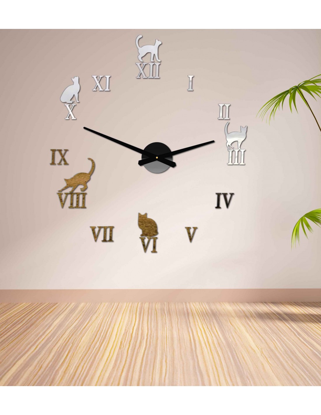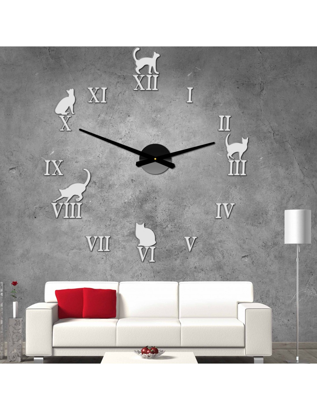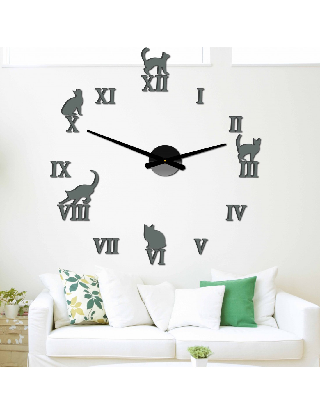 Eine moderne Wanduhr mit Katzenmotiv aus Plexiglas, die Ihre leere Wand belebt und Ihrem Interieur einen stilvollen und verspielten Akzent verleiht .