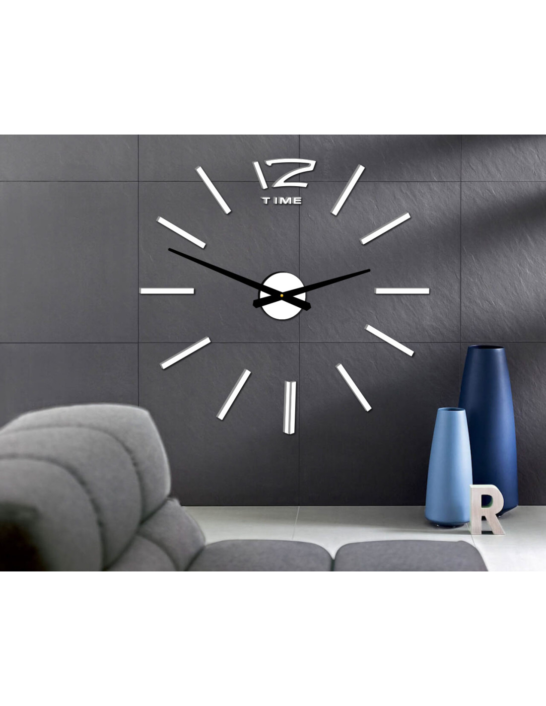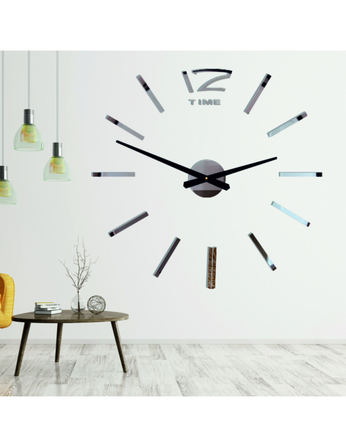 Edle Klebeuhren aus glänzendem Plexiglas mit einem verstellbaren Durchmesser von bis zu 130 cm passen ideal in moderne Innenräume.