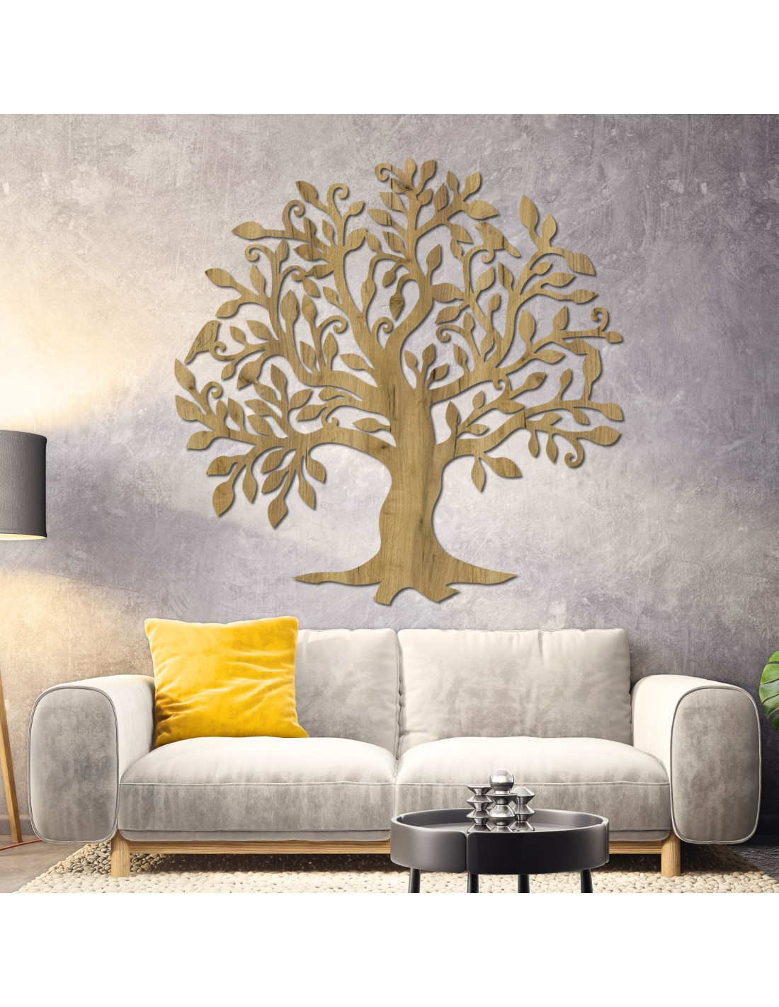 Hölzerner Lebensbaum – ein einzigartiges Bild, das Harmonie und natürliche Schönheit in den Innenraum bringt.