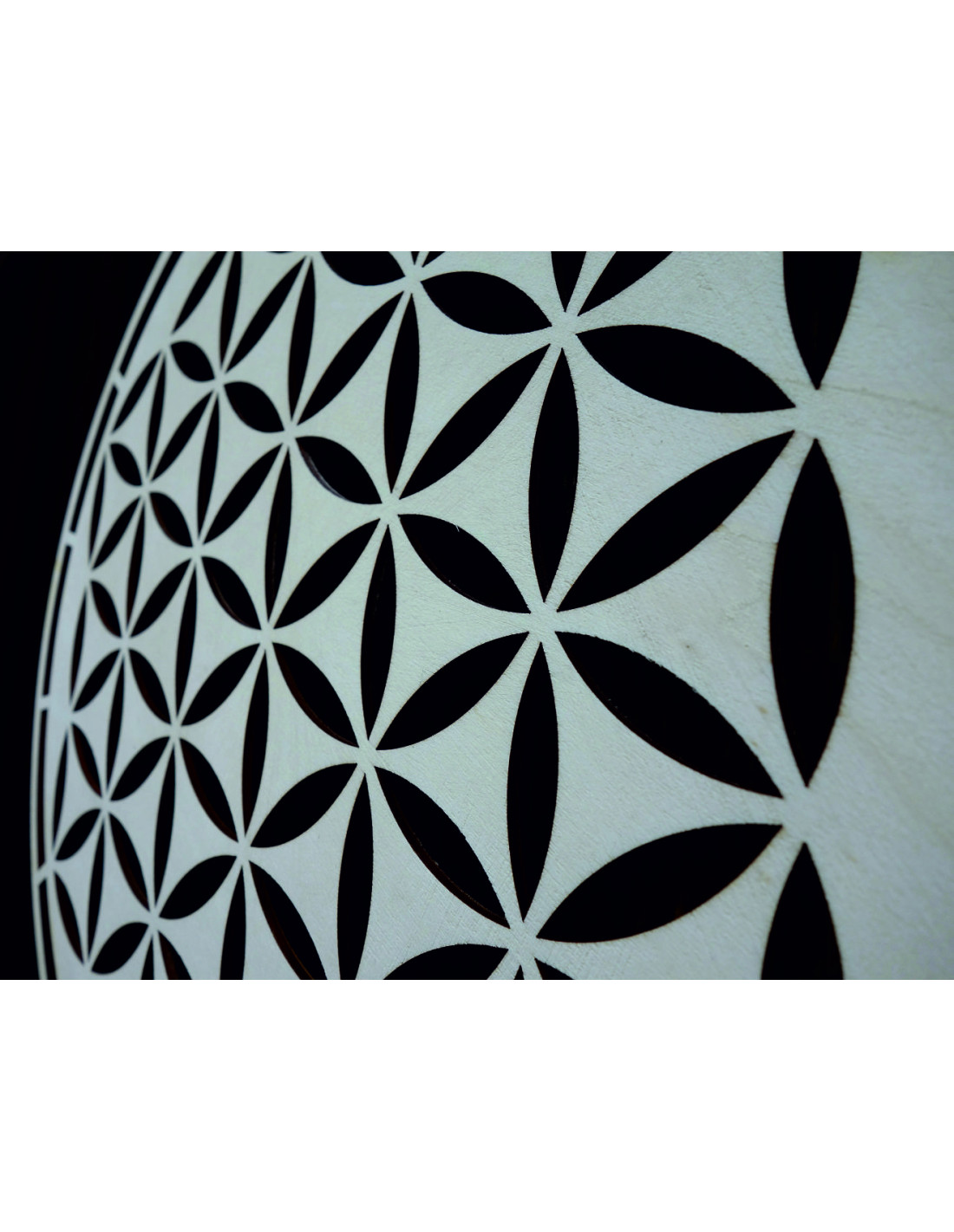 Dieses wunderschöne Holzdekor mit dem Muster der Blume des Lebens verbindet zeitloses Design mit tiefer Symbolik .