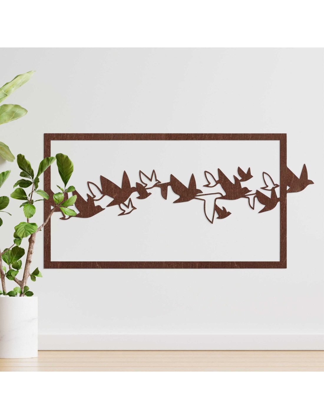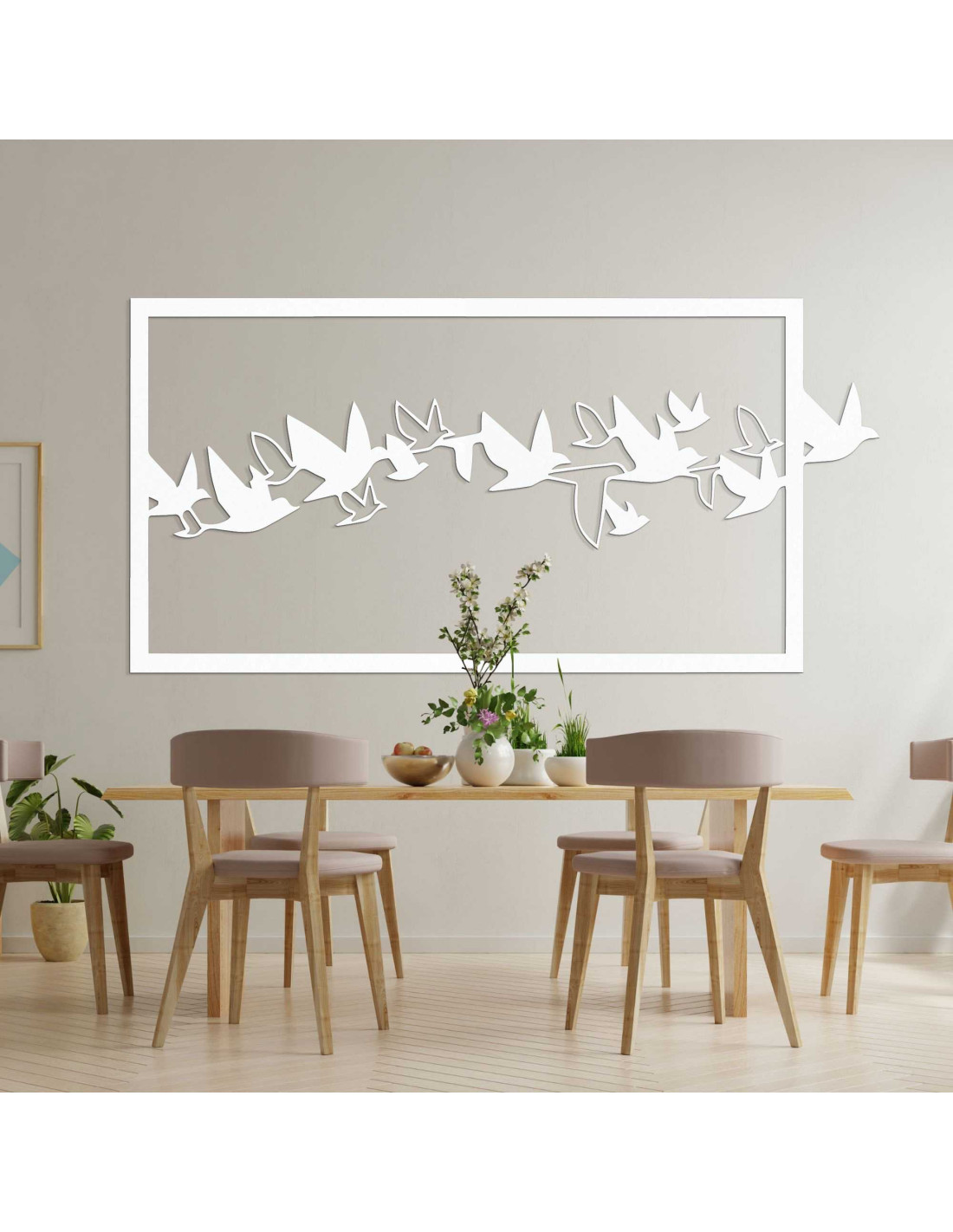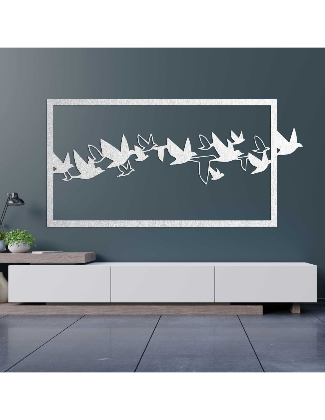 SentopDie dynamische Silhouette eines Vogelschwarms erscheint wie ein eingefrorener Moment . Das Design fängt die Bewegung mit Leichtigkeit und Eleganz ein und erzeugt so einen lebendigen Eindruck . Die präzise Verarbeitung verleiht dem Ganzen Reinheit und zeitlosen Charakter . Die Gesamtkomposition wirkt entspannt und dennoch präzise ausgewogen .