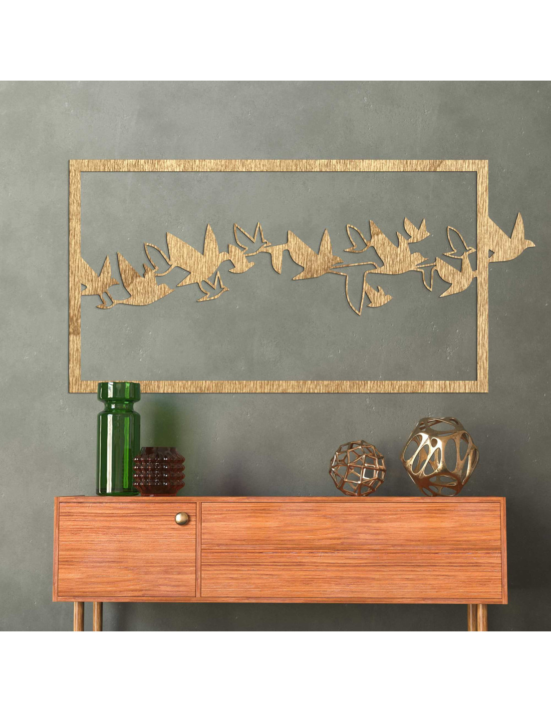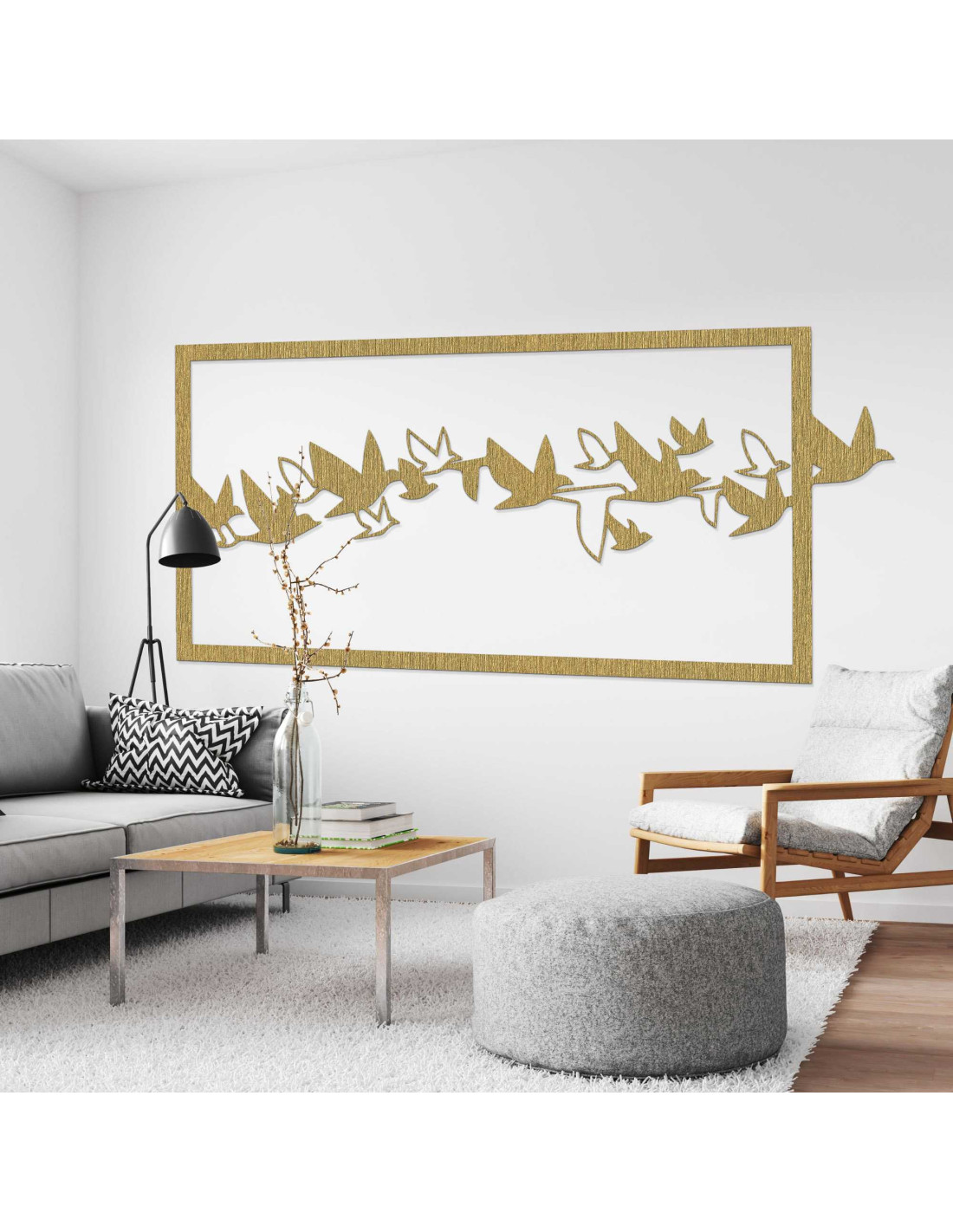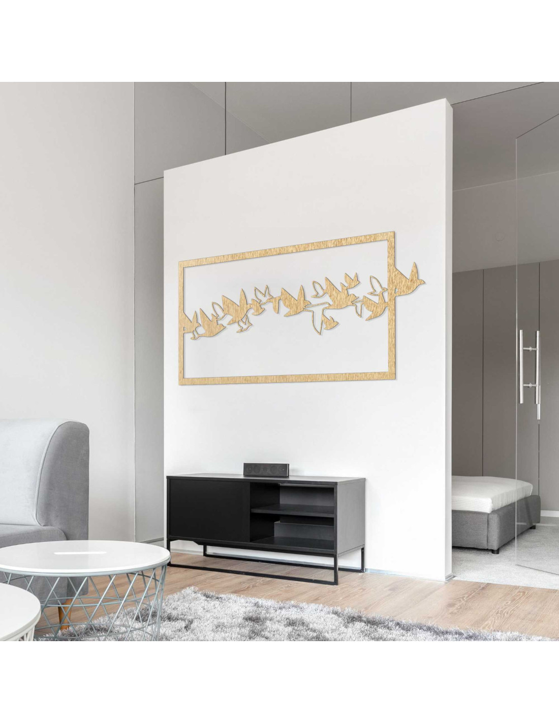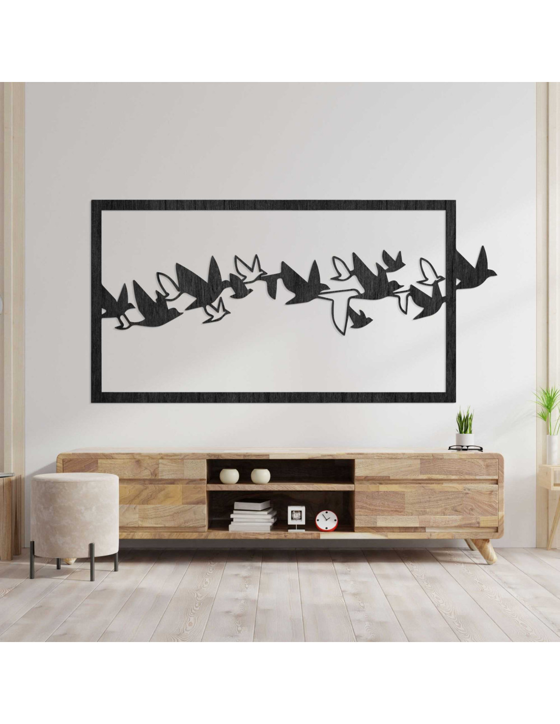 SentopDie dynamische Silhouette eines Vogelschwarms erscheint wie ein eingefrorener Moment . Das Design fängt die Bewegung mit Leichtigkeit und Eleganz ein und erzeugt so einen lebendigen Eindruck . Die präzise Verarbeitung verleiht dem Ganzen Reinheit und zeitlosen Charakter . Die Gesamtkomposition wirkt entspannt und dennoch präzise ausgewogen .
