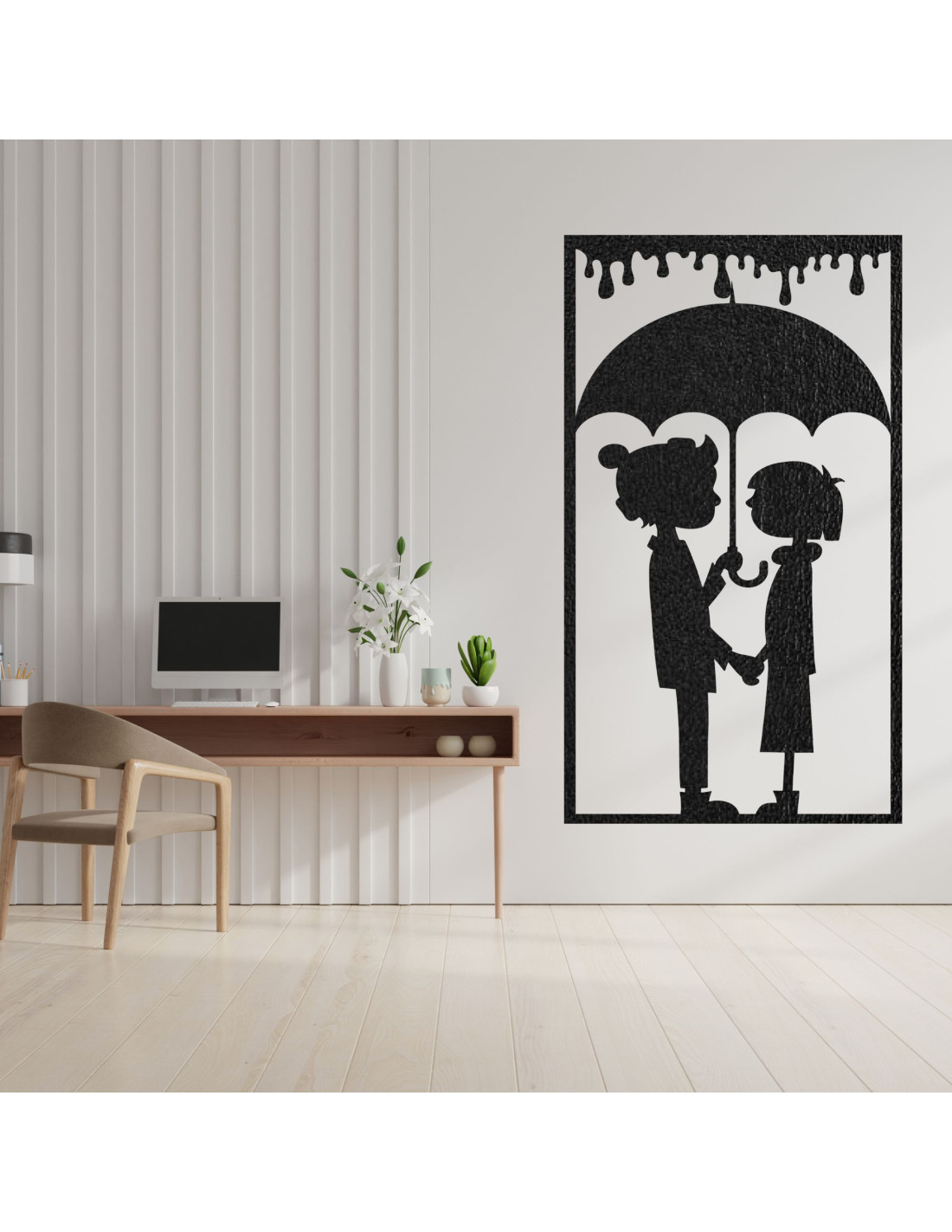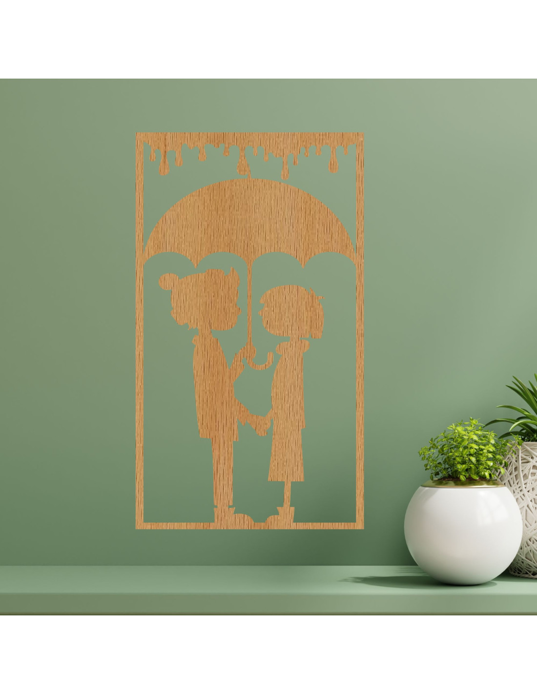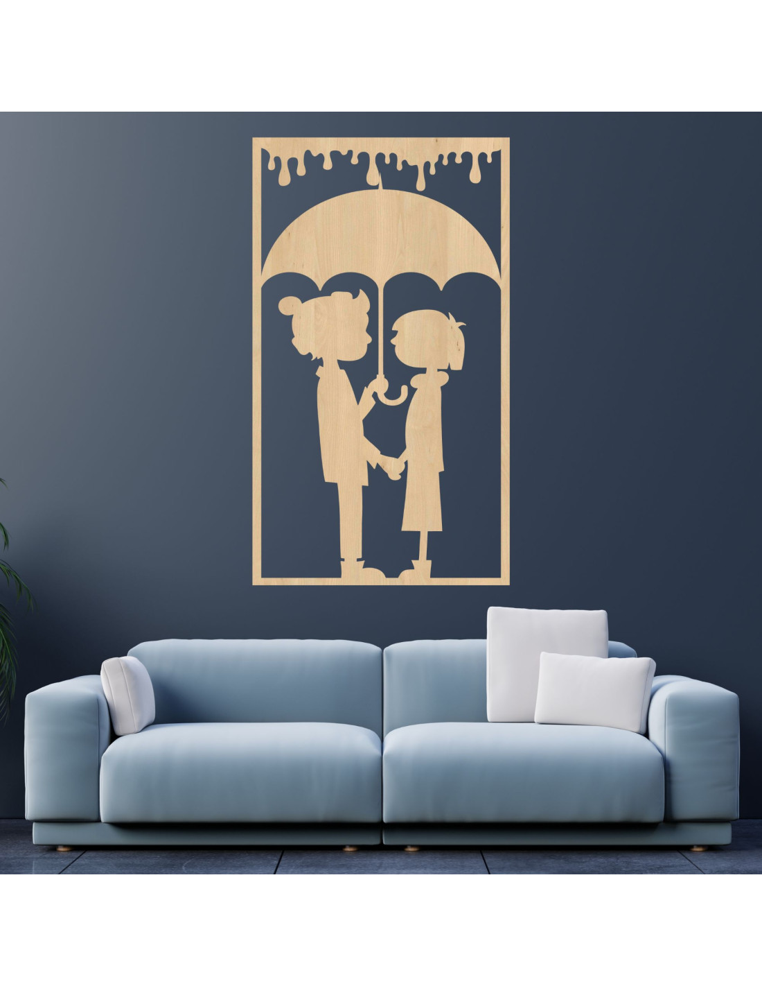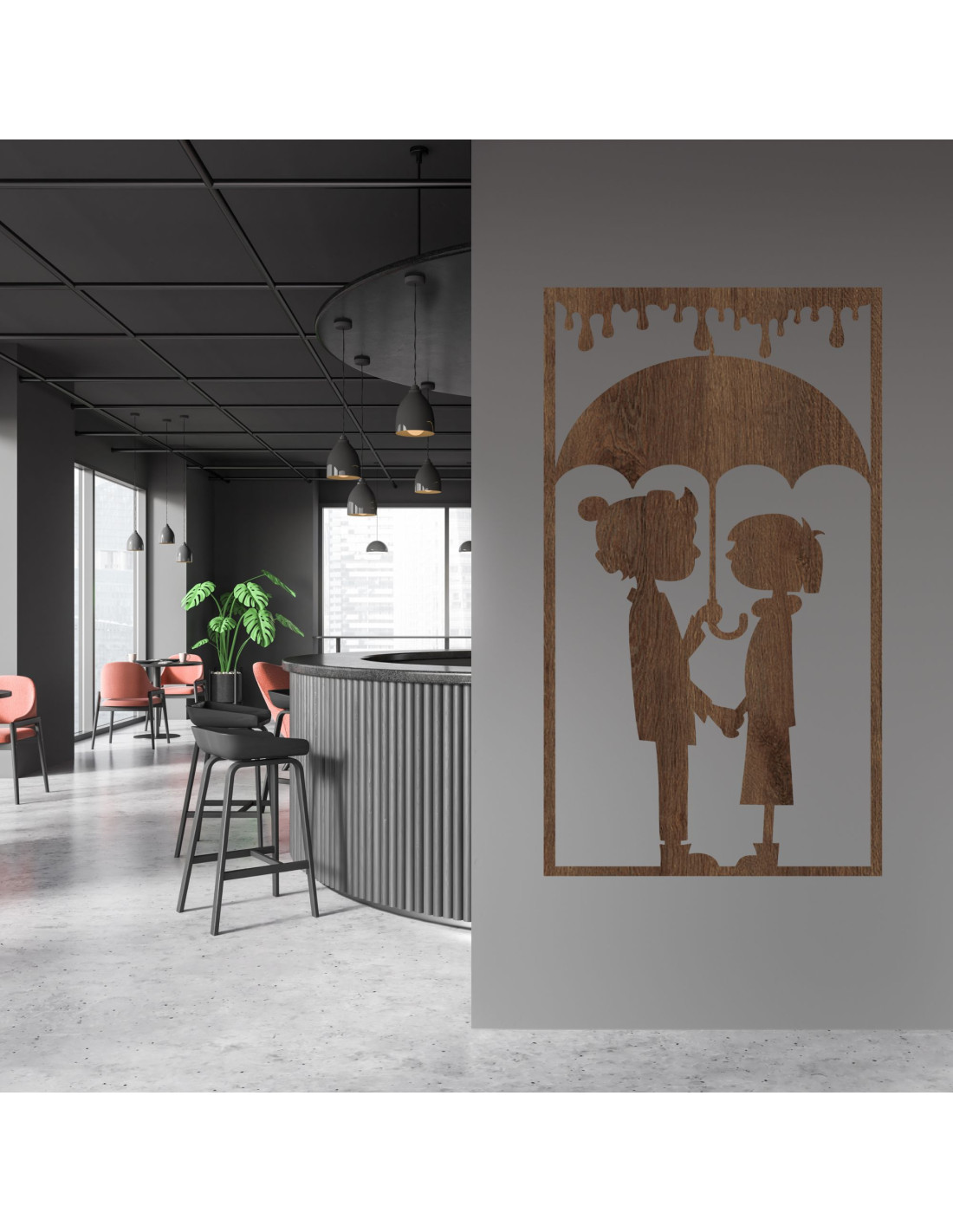 Die elegante Holzdekoration mit dem Motiv von Figuren unter einem Regenschirm verbindet Schlichtheit mit einer starken emotionalen Botschaft. Diese Wanddekoration ist geeignet, um Gefühle wie Liebe, Unterstützung oder Zusammengehörigkeit auszudrücken. Außerdem bringt das natürliche Material ein Gefühl von Wärme und Authentizität in den Raum. Sie eignet sich sowohl für moderne als auch für rustikale Innenräume, wo sie eine harmonische Atmosphäre schafft.