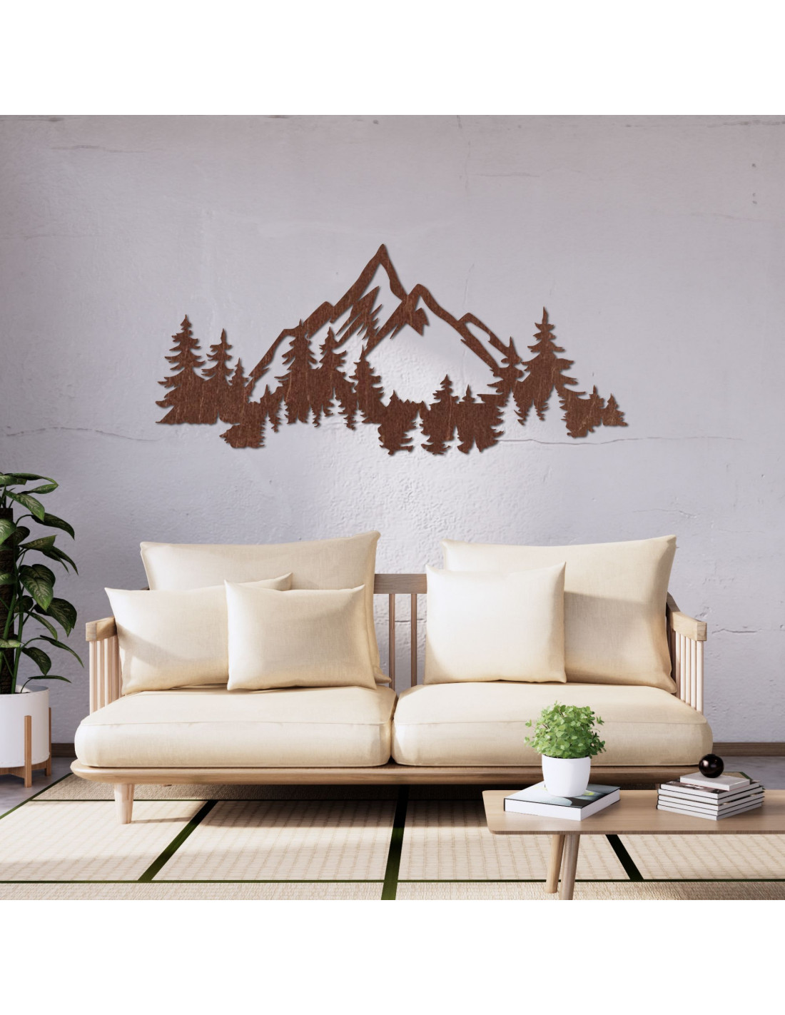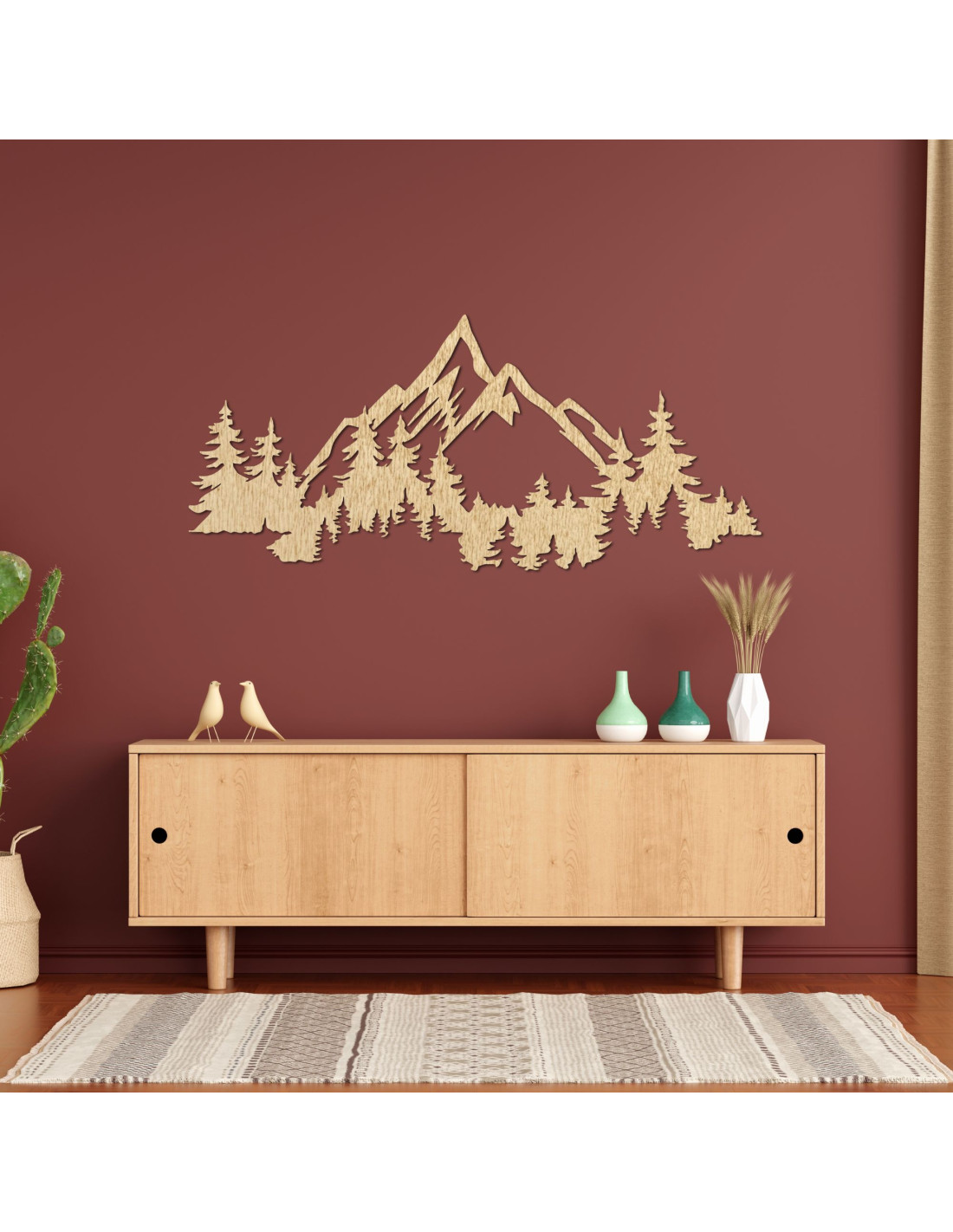 Diese detailreiche Holzdekoration fängt die wilde Schönheit der Natur in Form von Bergpanoramen und Wäldern ein. Sie vereint Eleganz und natürliches Design auf perfekte Weise und wird Ihr Interieur bereichern. Eine hervorragende Wahl für alle , die Abenteuer und Naturmotive lieben .