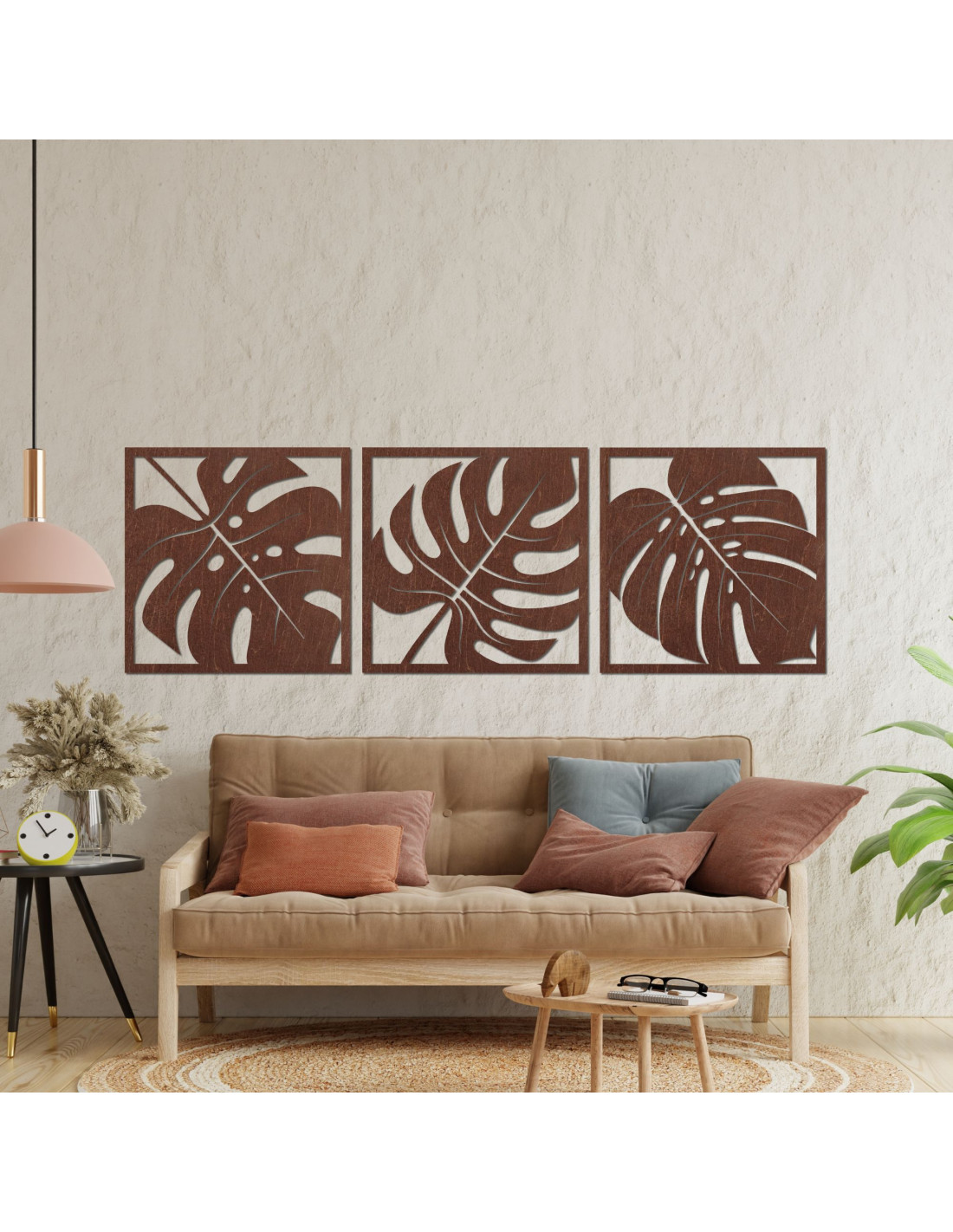 Monstera-Bild aus Holz – 3-teilige Wanddekoration