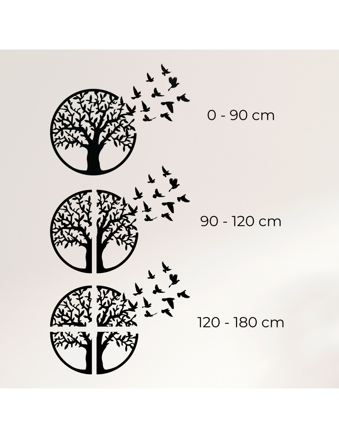 Das elegante Design und die raffinierte Silhouette des Baums und der Vögel sind ein faszinierendes visuelles Element, das Aufmerksamkeit verdient. Es ist ideal für Kinderzimmer, Wohnzimmer, Schlafzimmer oder Büros und verleiht durch seine vielseitige Verwendung Gemütlichkeit und Charakter.
