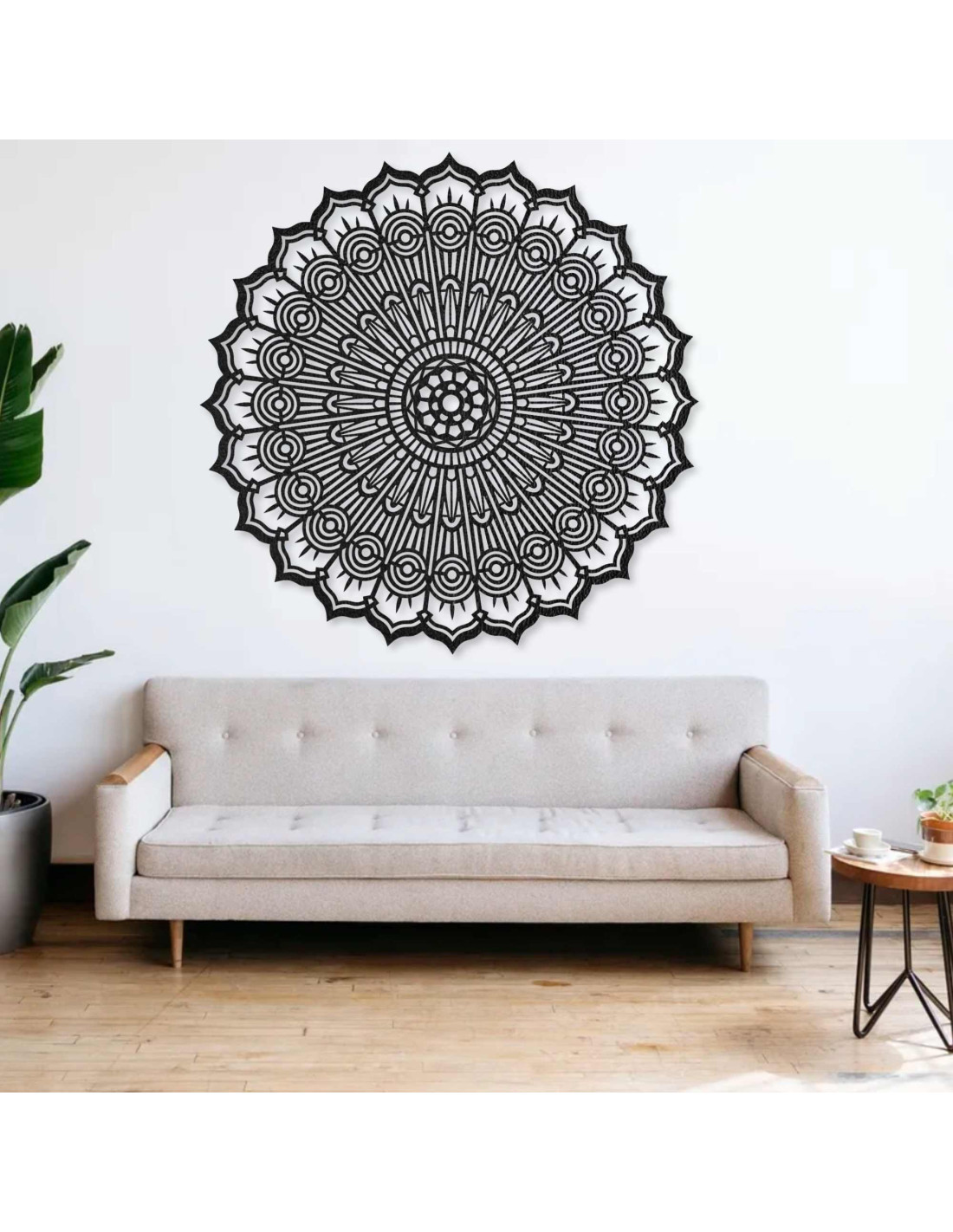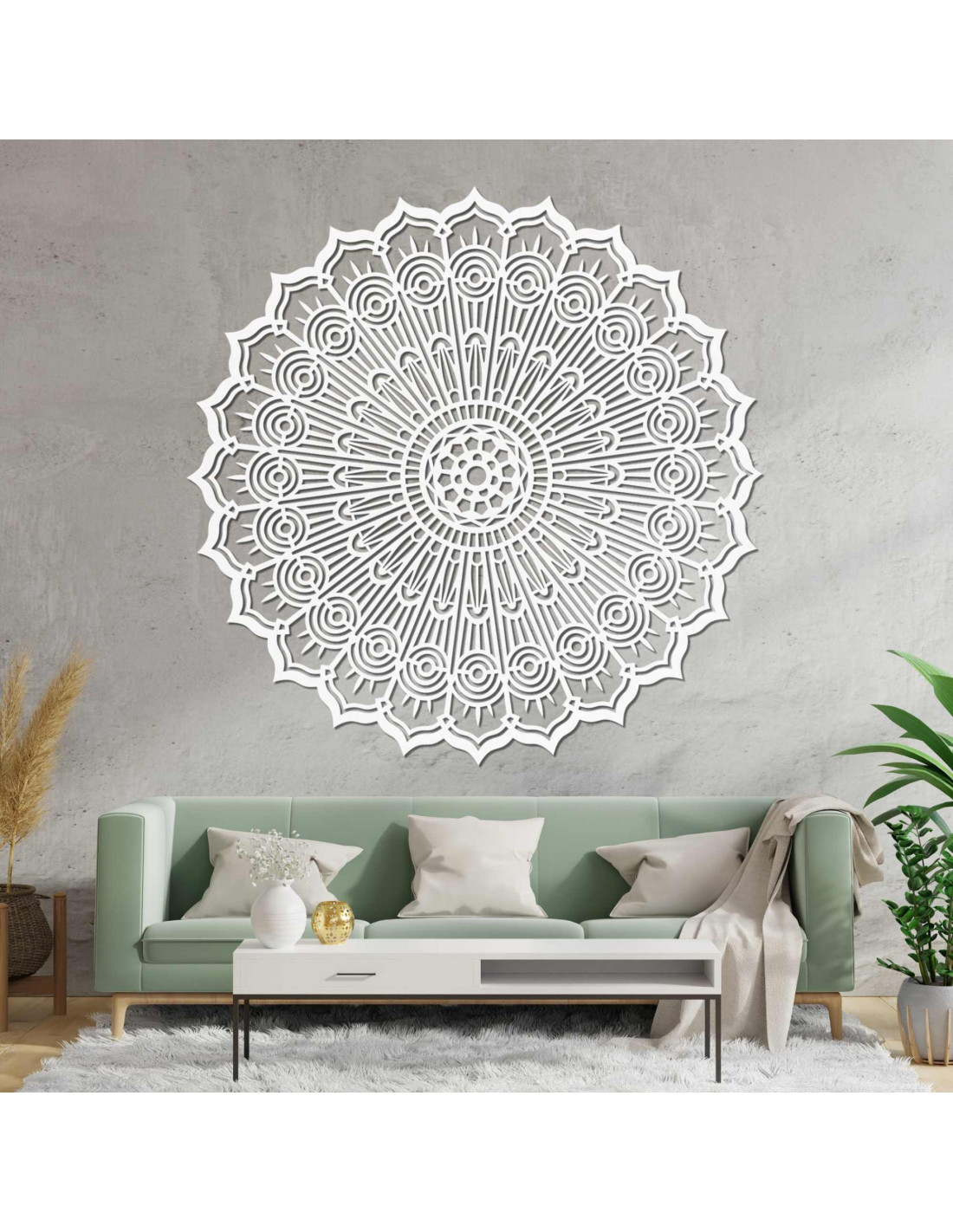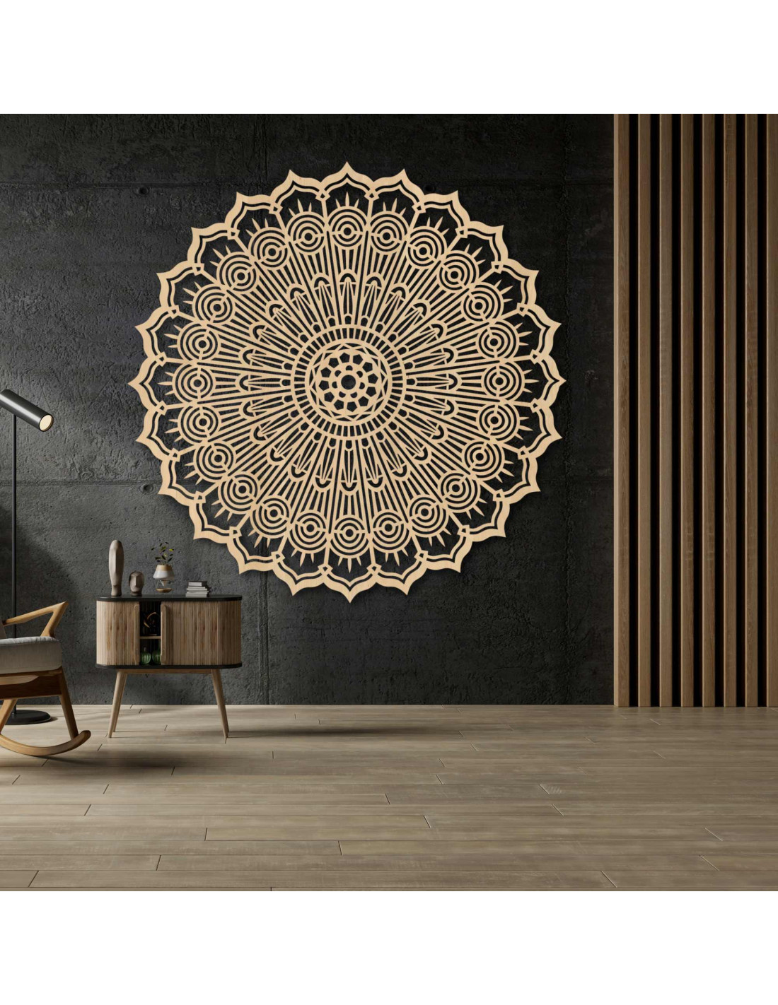 Aus hochwertigem Material gefertigt, erzeugen seine detaillierten Muster einen einzigartigen visuellen Effekt. Dieses Mandala eignet sich ideal zum Dekorieren der Wände eines Wohnzimmers, Schlafzimmers oder Büros und trägt zur Schaffung einer friedlichen und gemütlichen Atmosphäre bei.