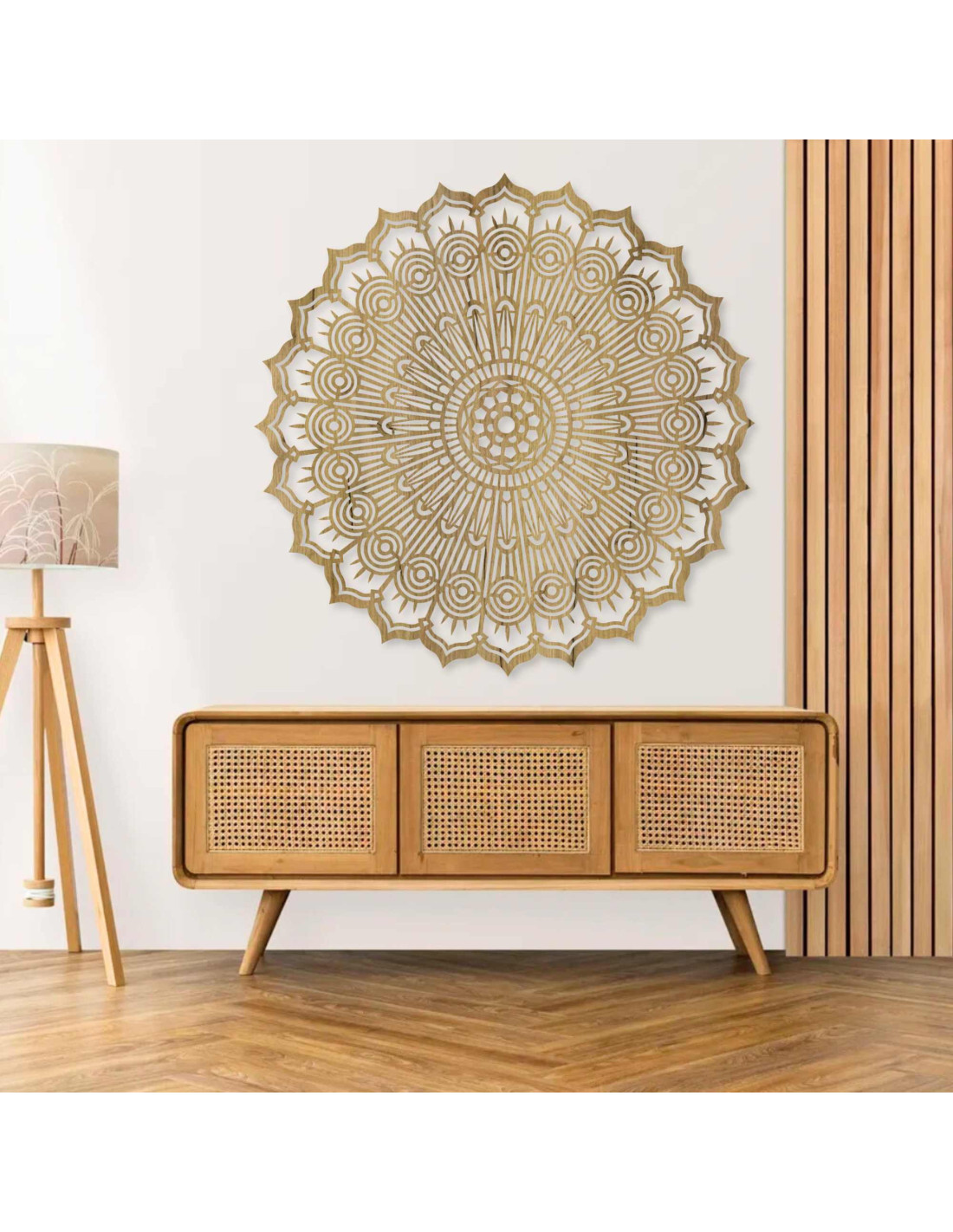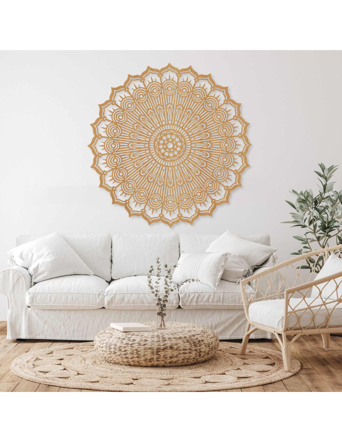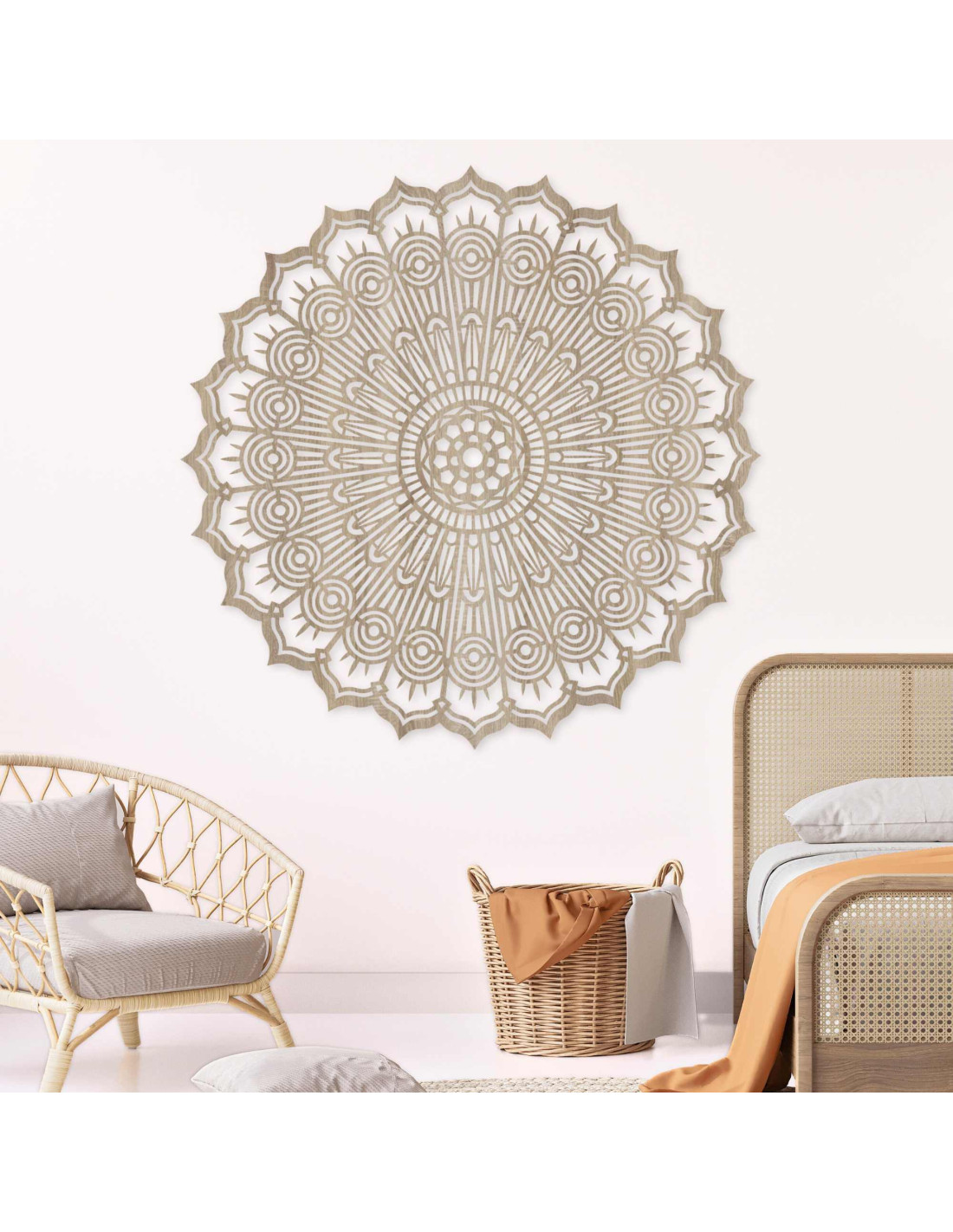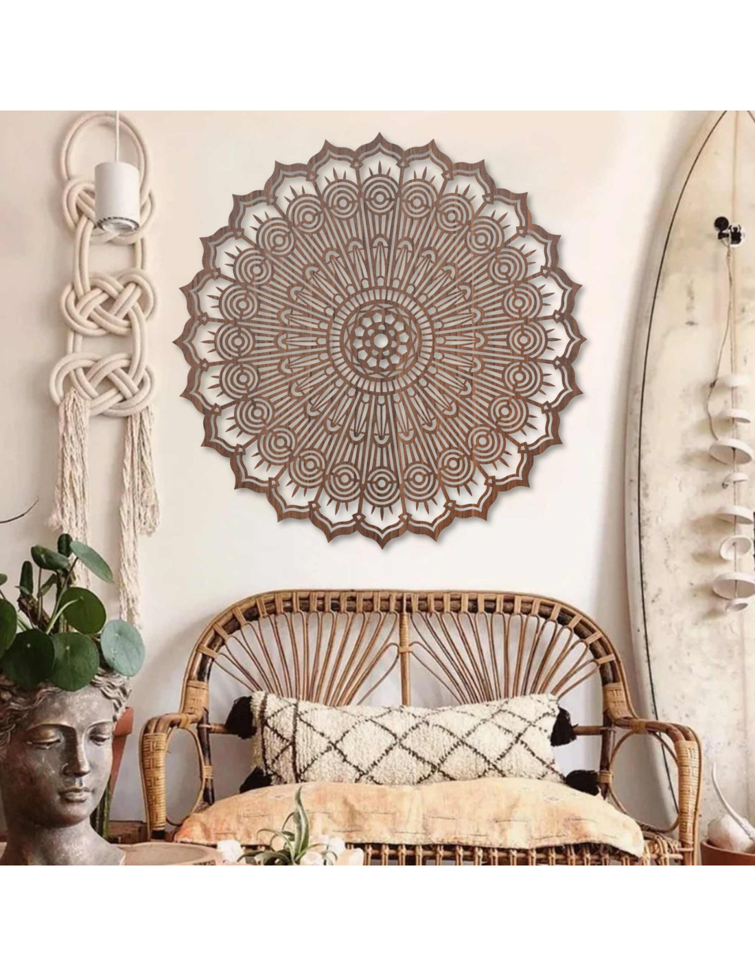 Aus hochwertigem Material gefertigt, erzeugen seine detaillierten Muster einen einzigartigen visuellen Effekt. Dieses Mandala eignet sich ideal zum Dekorieren der Wände eines Wohnzimmers, Schlafzimmers oder Büros und trägt zur Schaffung einer friedlichen und gemütlichen Atmosphäre bei.