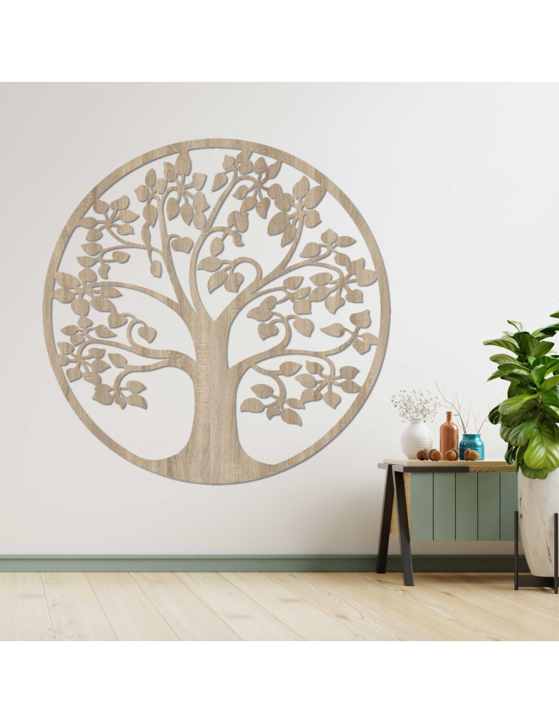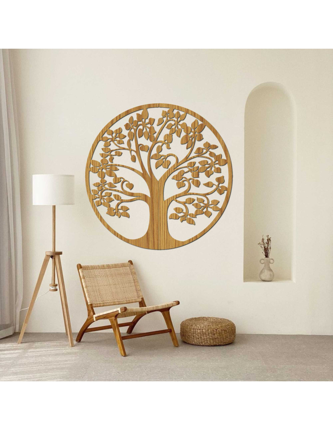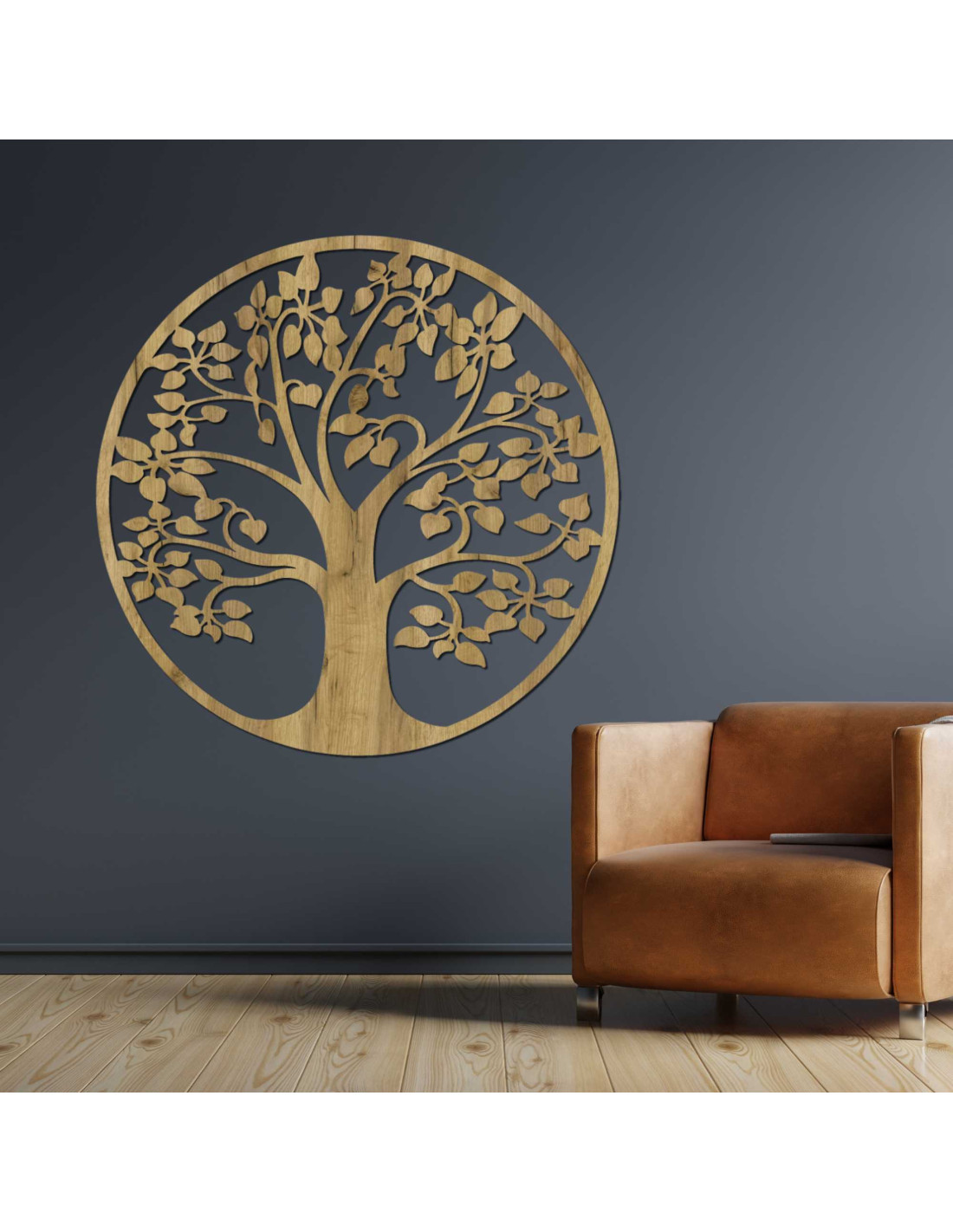 Die Visualisierung des Lebensbaums in einem kreisförmigen Design wirkt wie eine visuelle Poesie voller Symbole und Gleichgewicht. Die Komposition besticht durch die Reinheit der Formen und öffnet gleichzeitig den Raum für Interpretationen. Ein starkes Zentrum mit einer reich verzweigten Krone evoziert ein Gefühl von Verankerung und Entwicklung zugleich. Die Dekoration fängt die natürliche Schönheit des Baumes auf eine Weise ein, die sowohl das Gefühl als auch den Verstand anspricht.