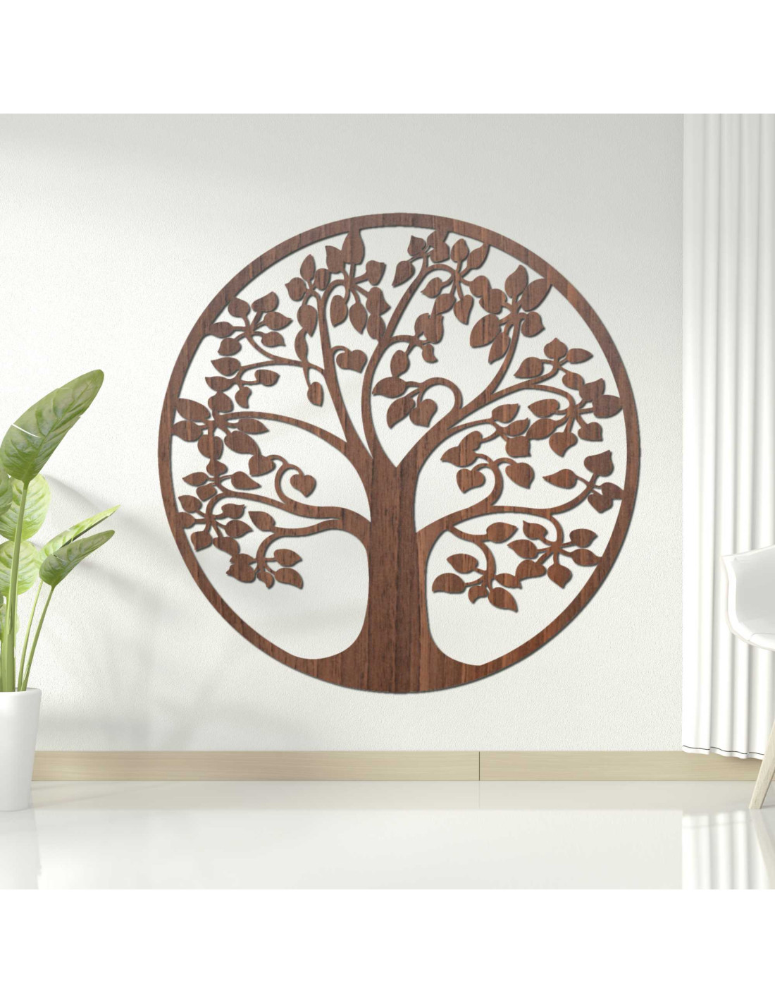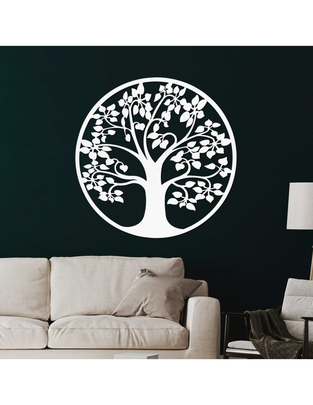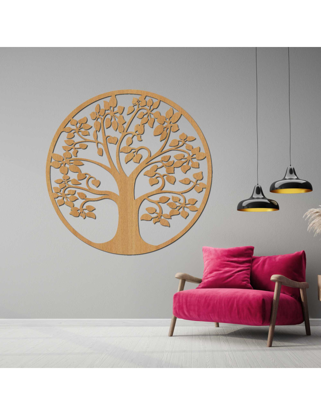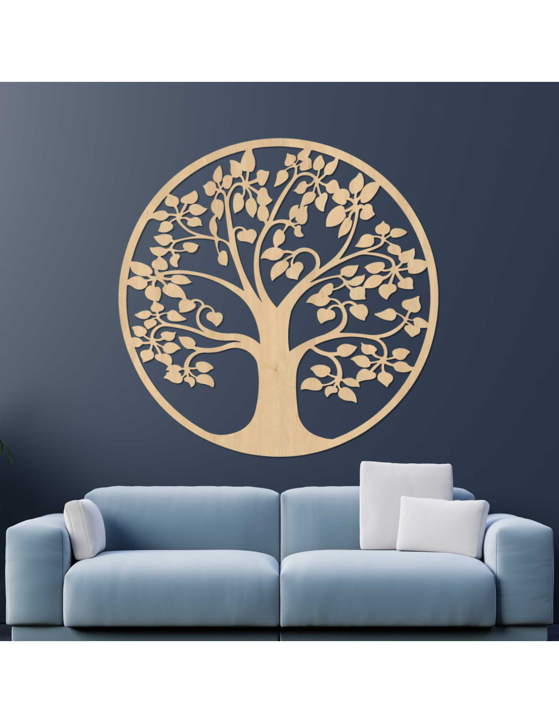 Die Visualisierung des Lebensbaums in einem kreisförmigen Design wirkt wie eine visuelle Poesie voller Symbole und Gleichgewicht. Die Komposition besticht durch die Reinheit der Formen und öffnet gleichzeitig den Raum für Interpretationen. Ein starkes Zentrum mit einer reich verzweigten Krone evoziert ein Gefühl von Verankerung und Entwicklung zugleich. Die Dekoration fängt die natürliche Schönheit des Baumes auf eine Weise ein, die sowohl das Gefühl als auch den Verstand anspricht.