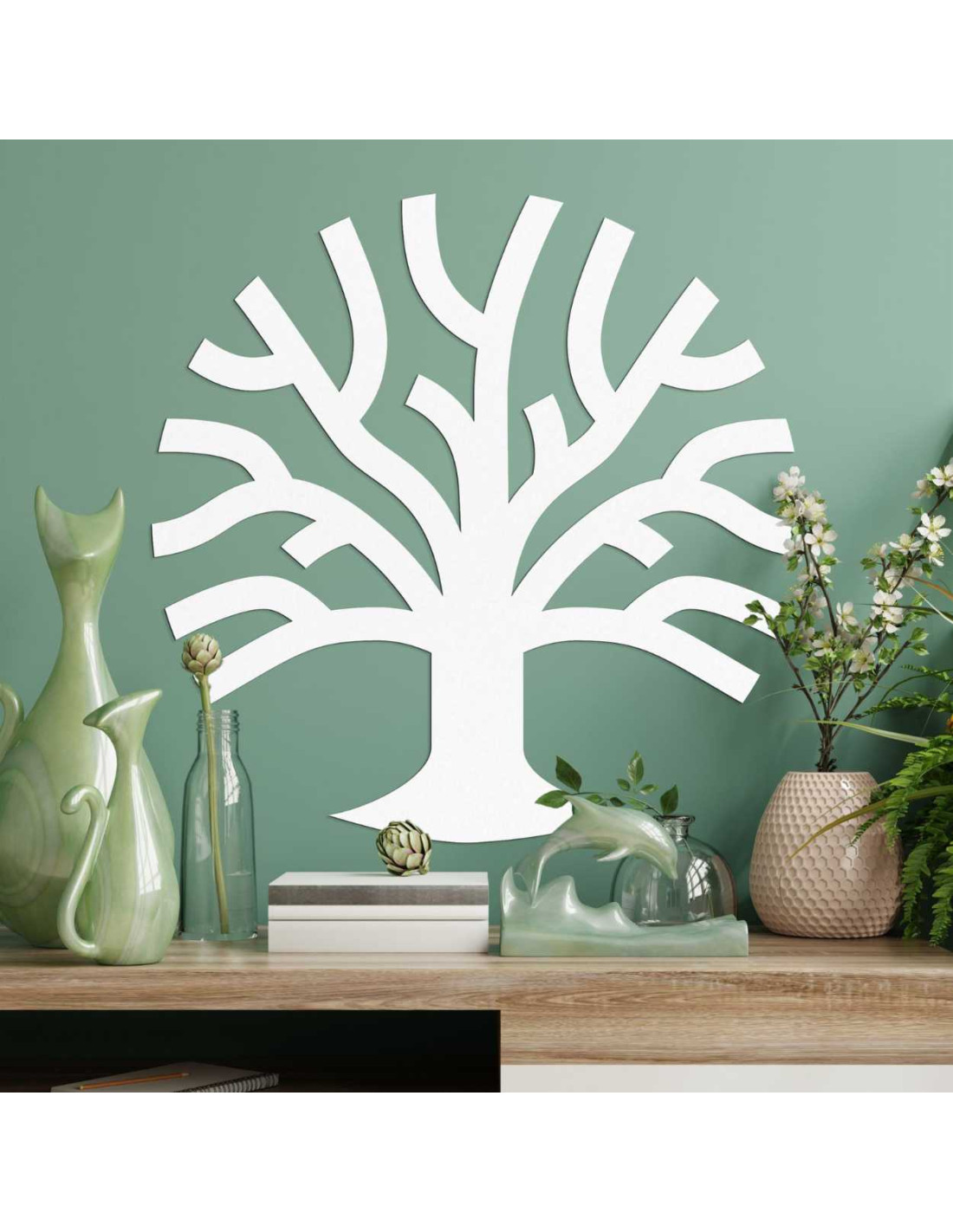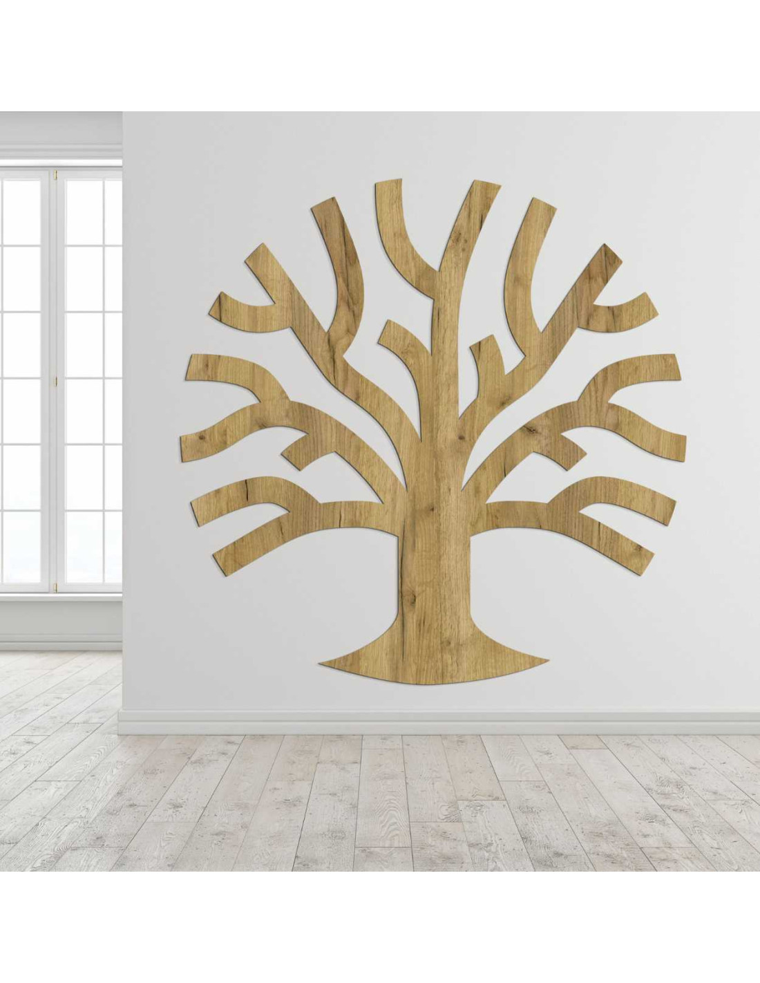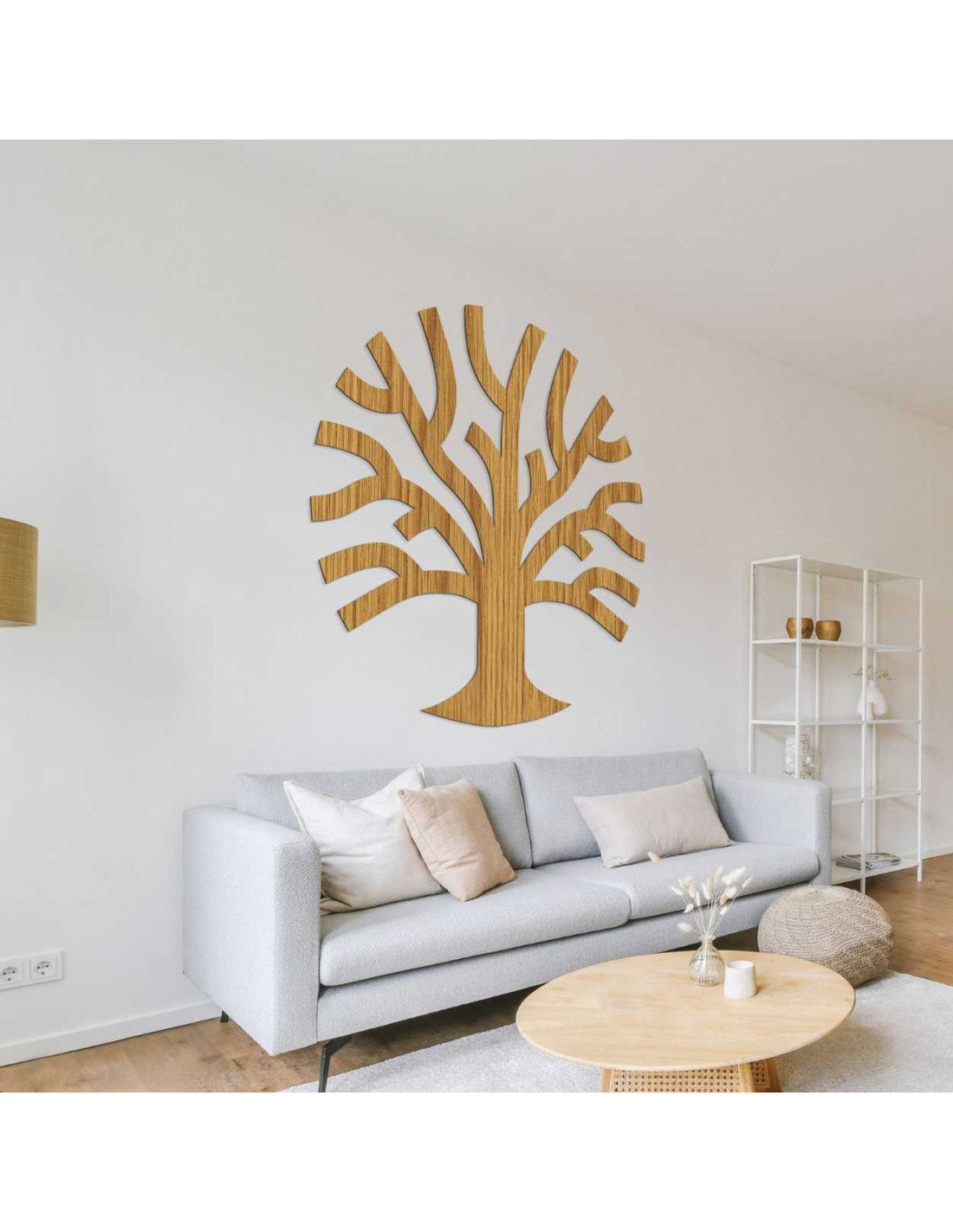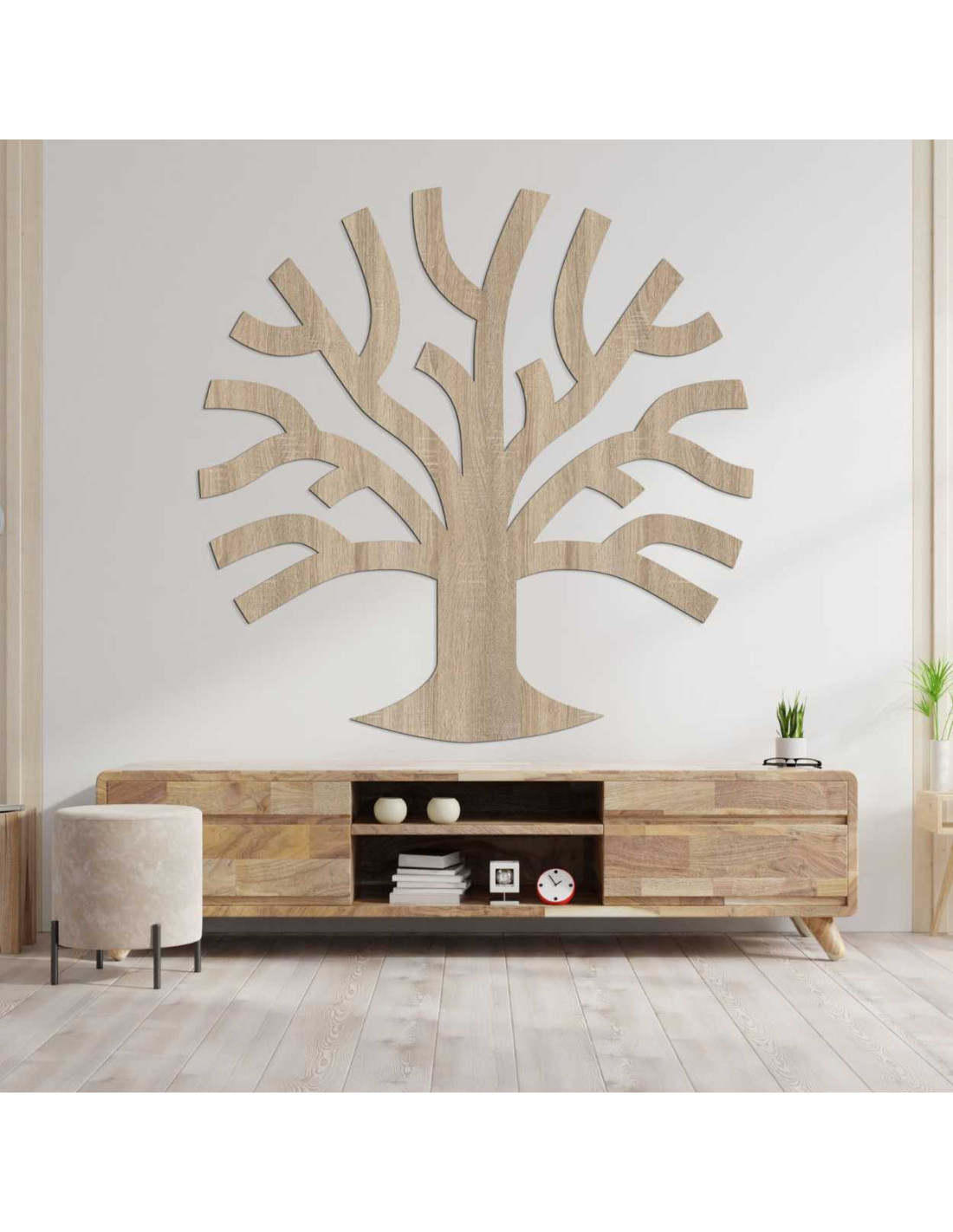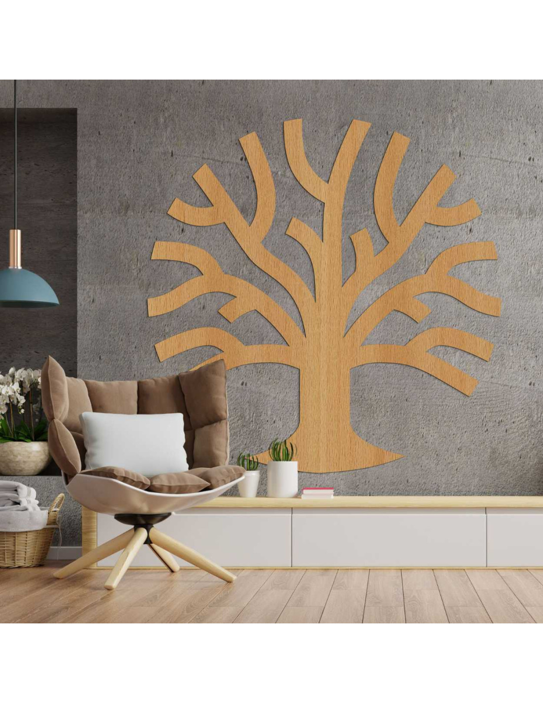 Die Baum -Wanddekoration aus Holz besticht durch ihre klaren Linien und die organische Form.