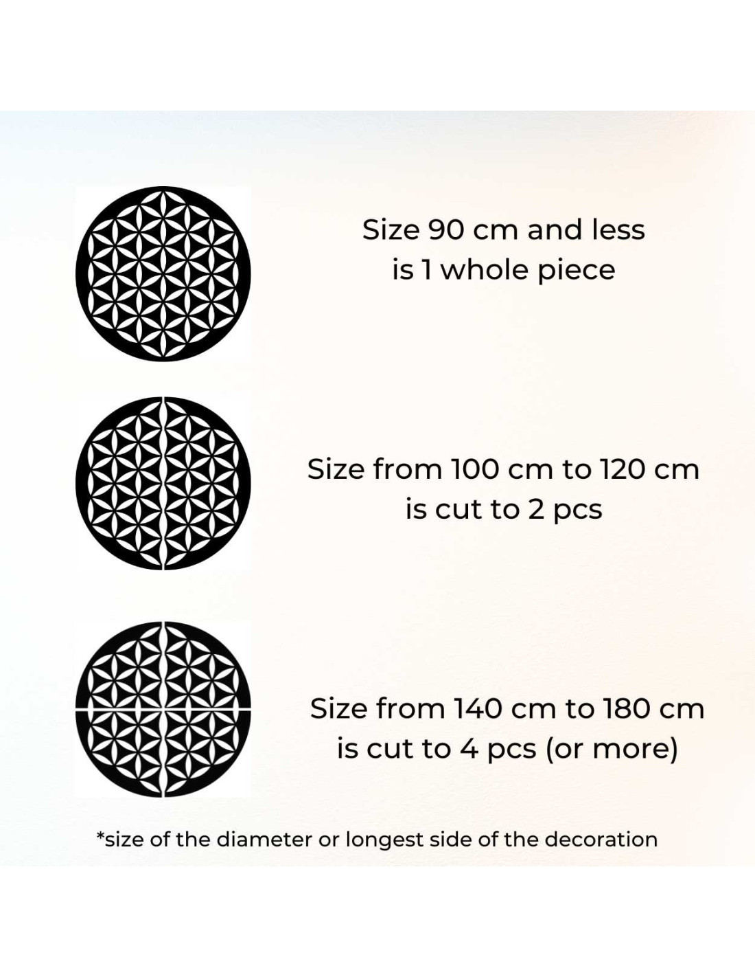 - Von 140 cm bis 180 cm - die Dekoration wird in vier Teile (oder mehr) geschnitten