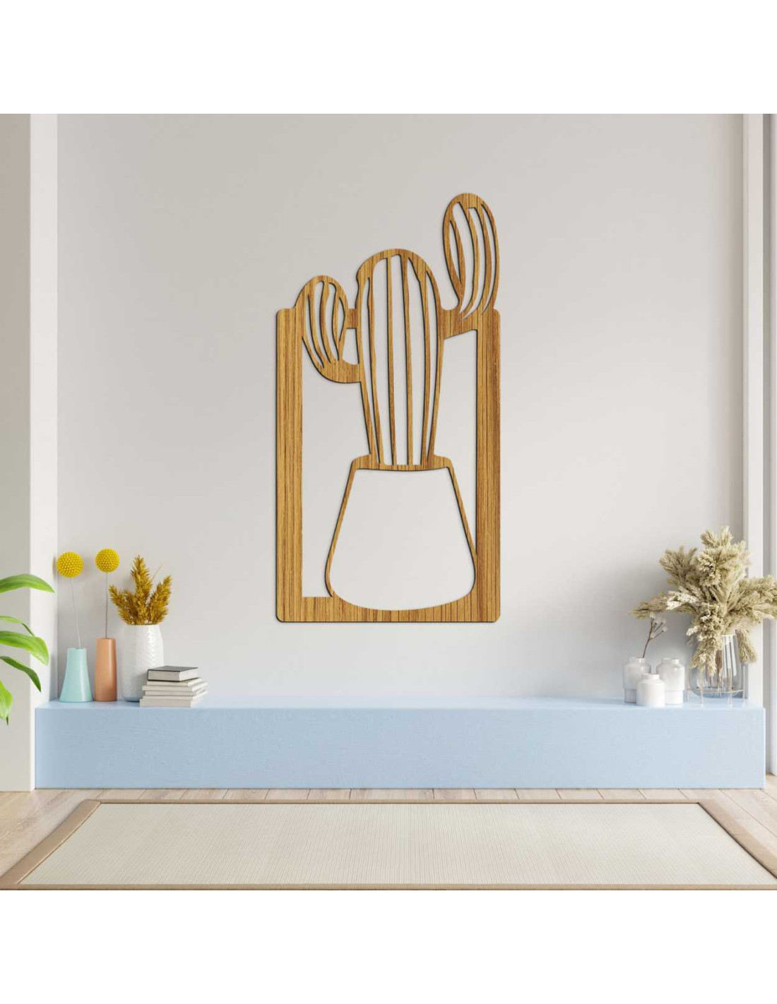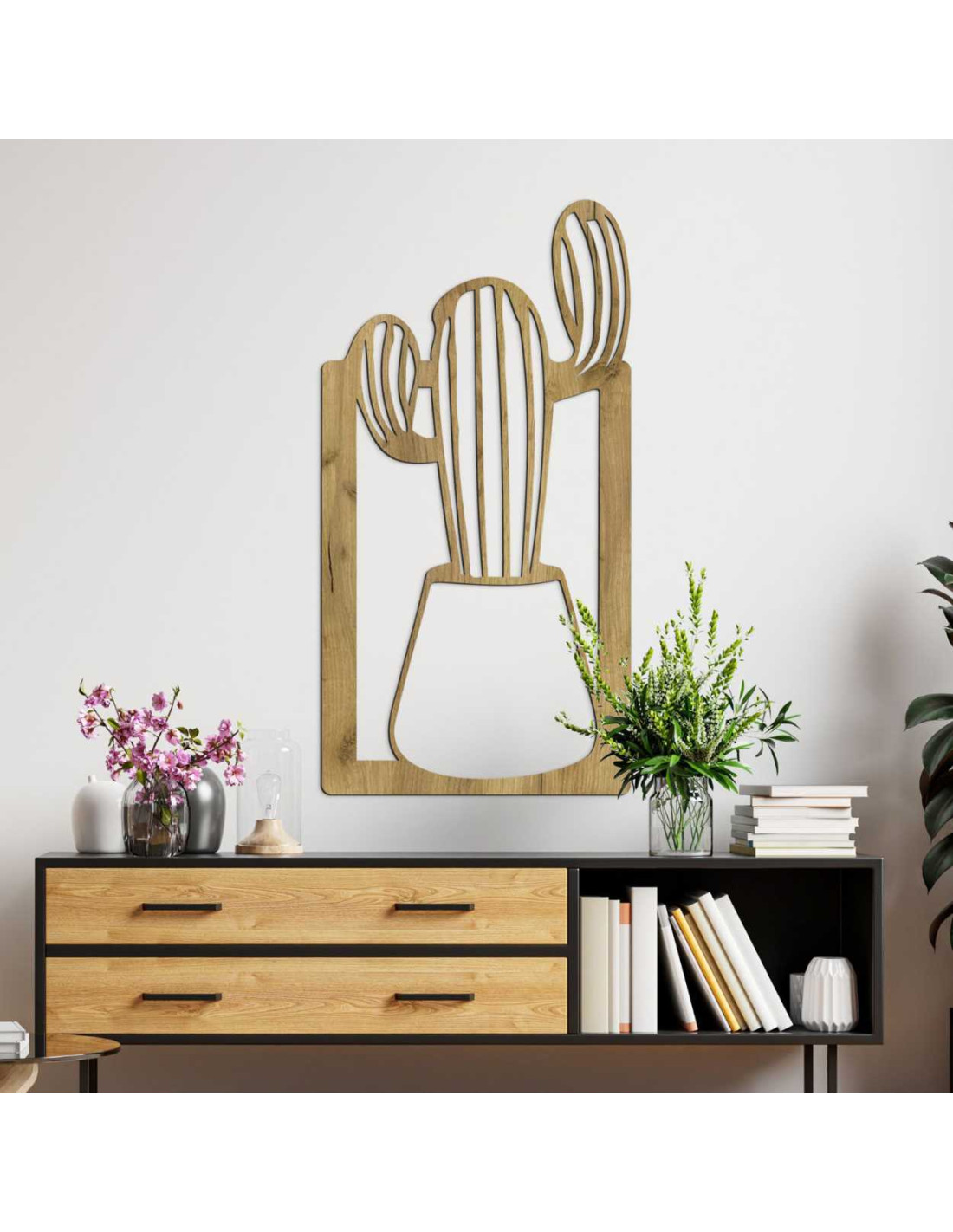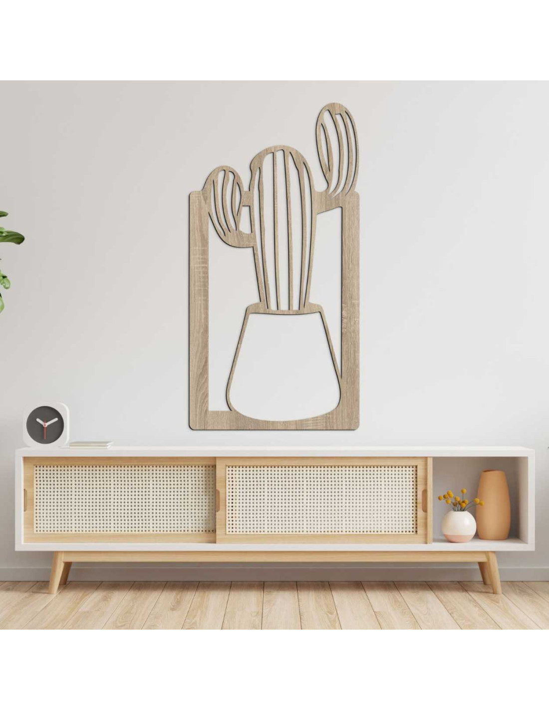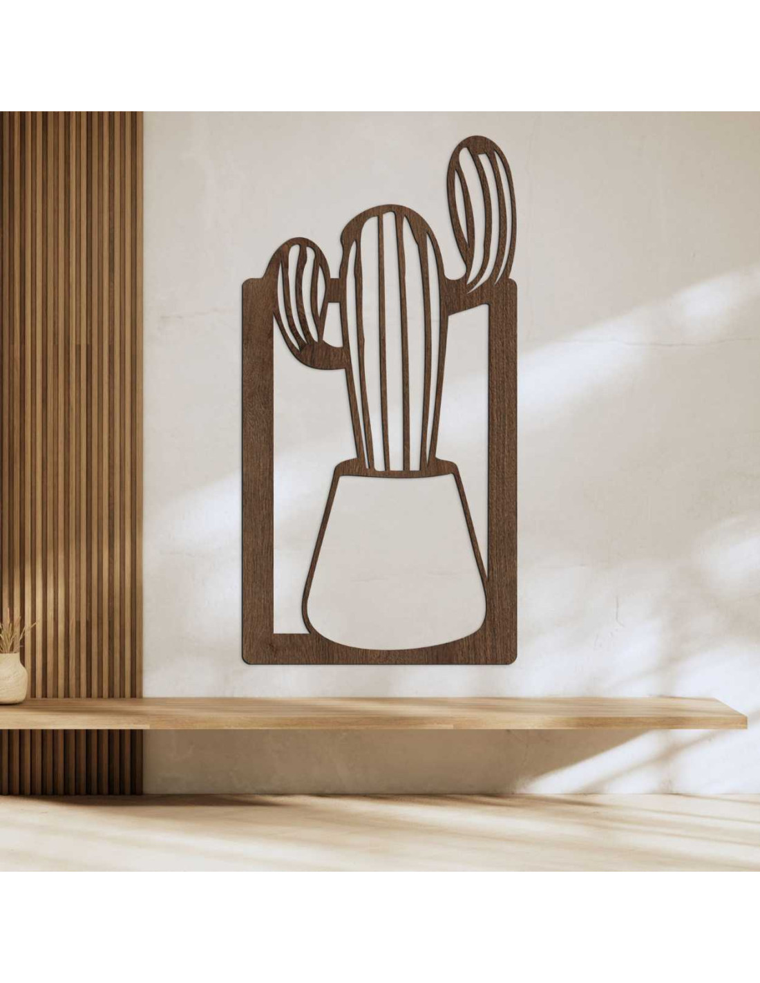 SentopDieses Holzbild ist eine außergewöhnliche Wanddekoration mit dem Motiv eines Kaktus im Blumentopf.
