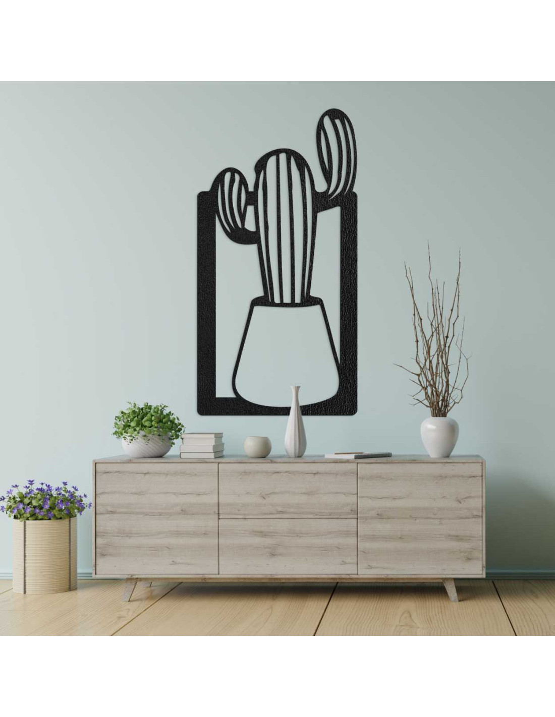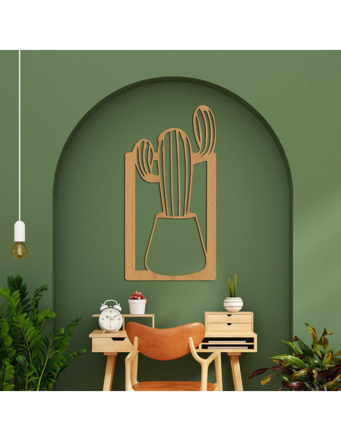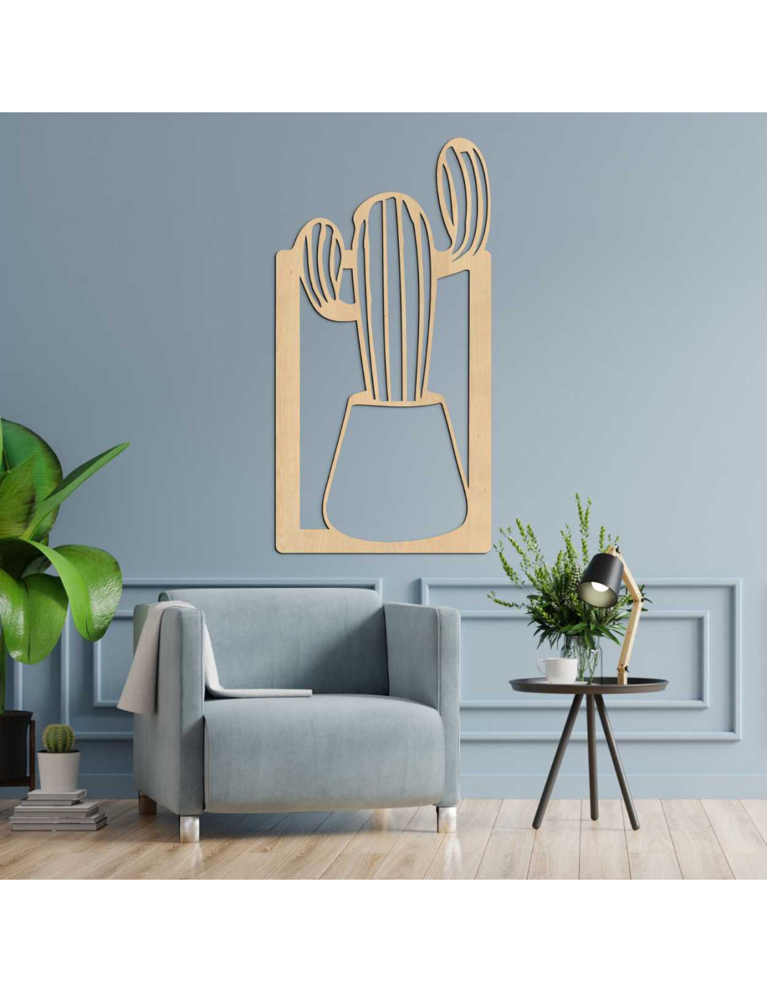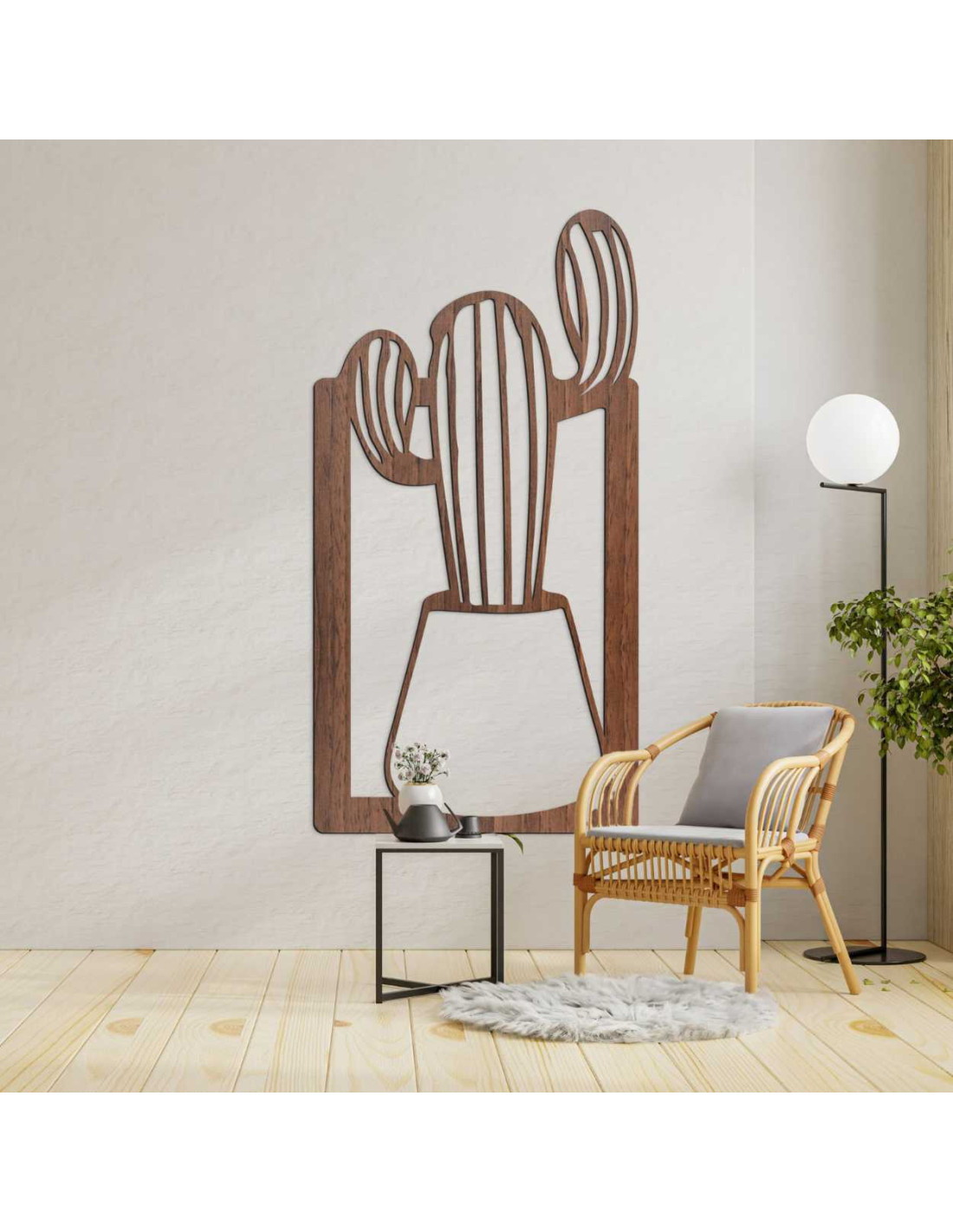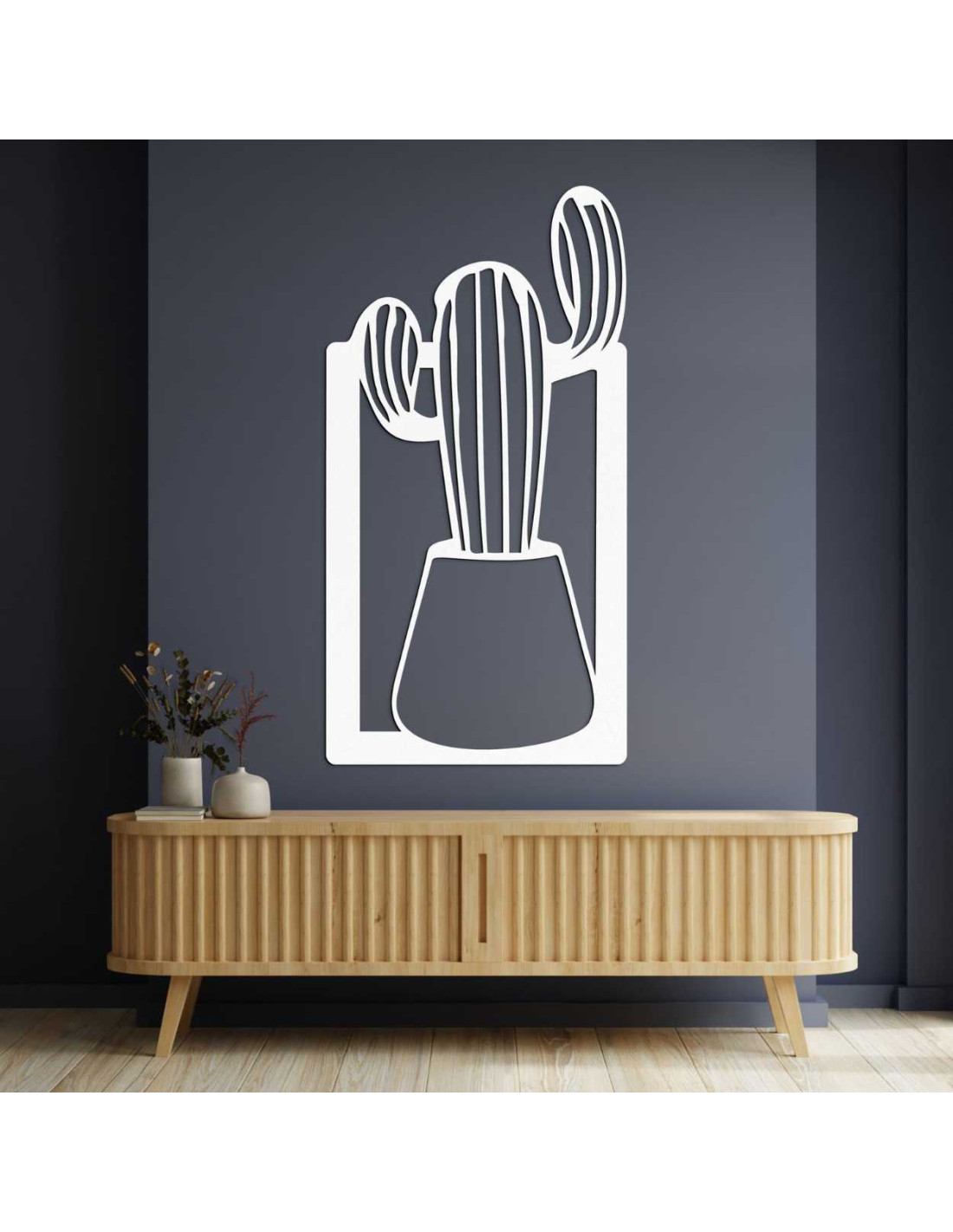 SentopDieses Holzbild ist eine außergewöhnliche Wanddekoration mit dem Motiv eines Kaktus im Blumentopf.
