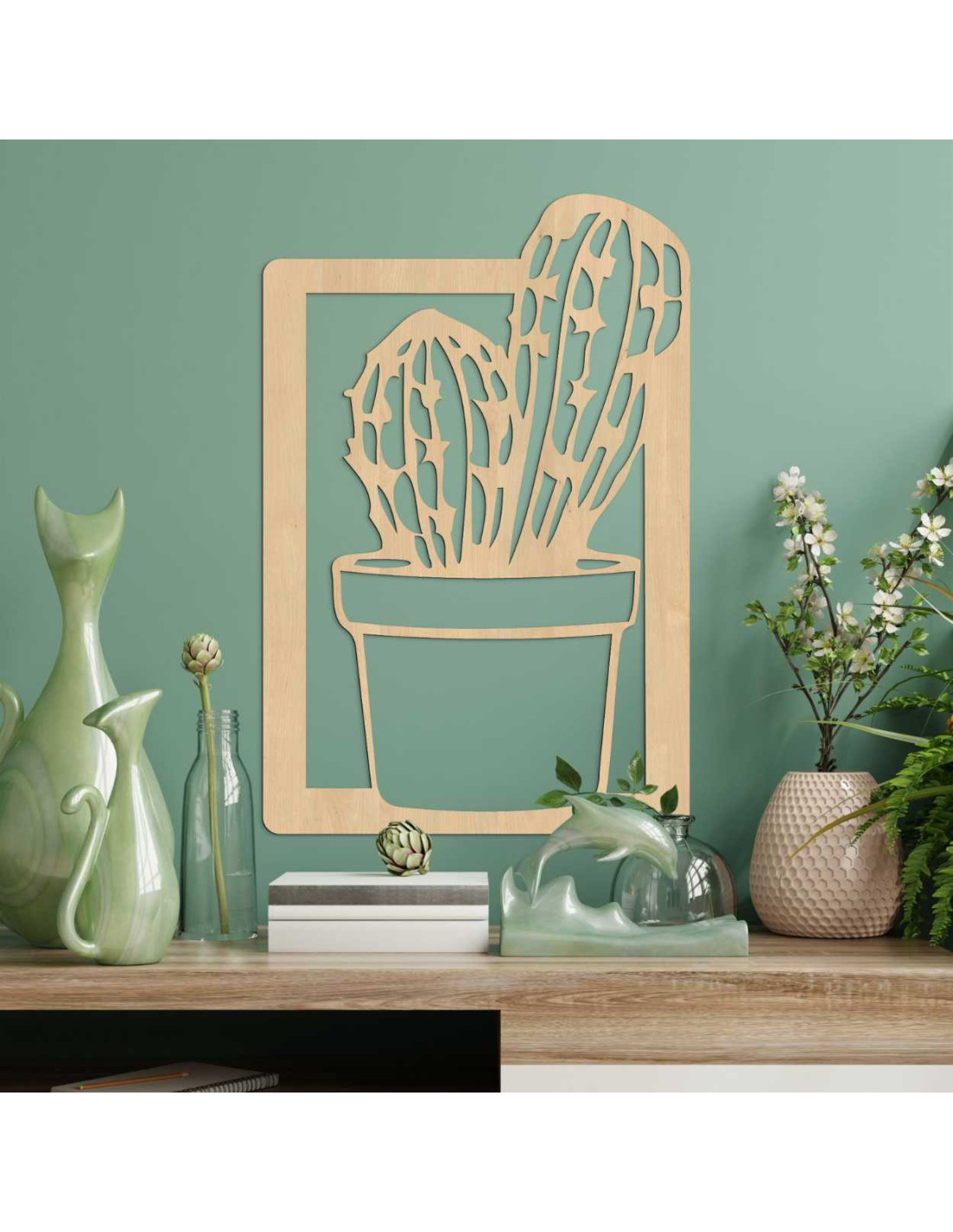 SentopEin stilvolles Holzbild in Kaktusform ist eine ideale Wanddekoration für Liebhaber natürlicher Gestaltung.
