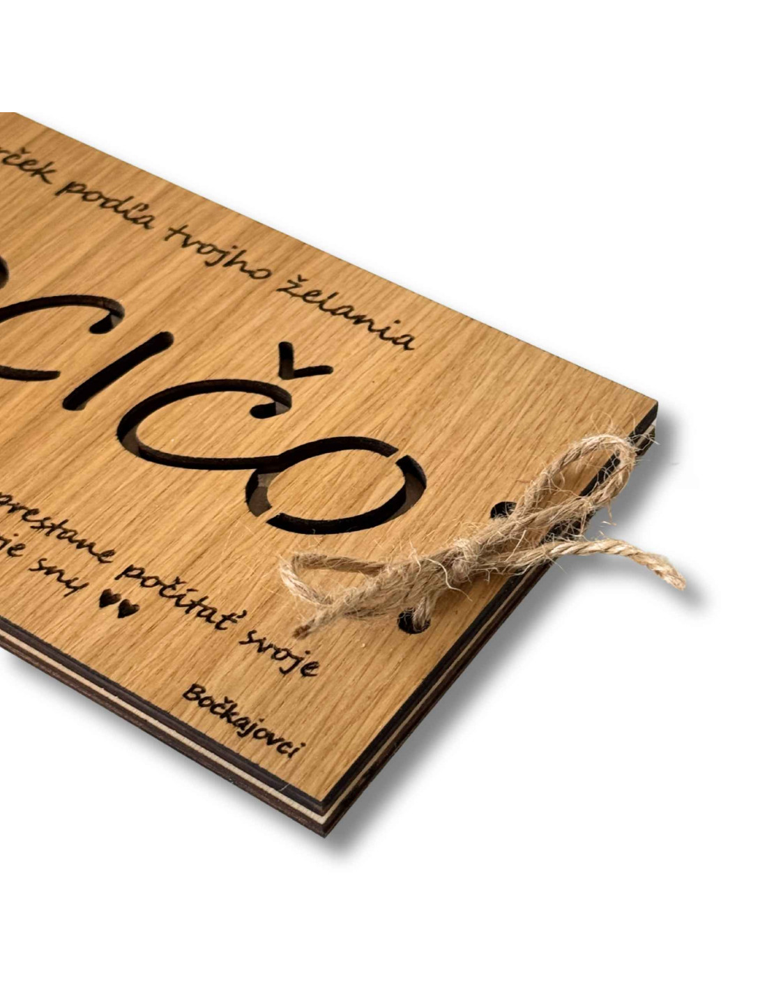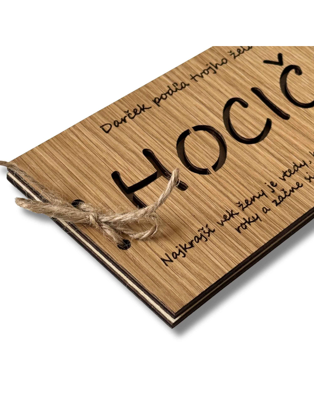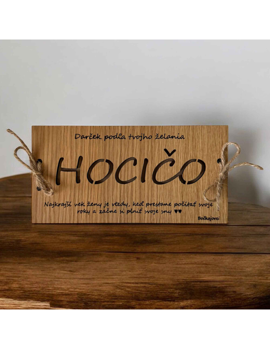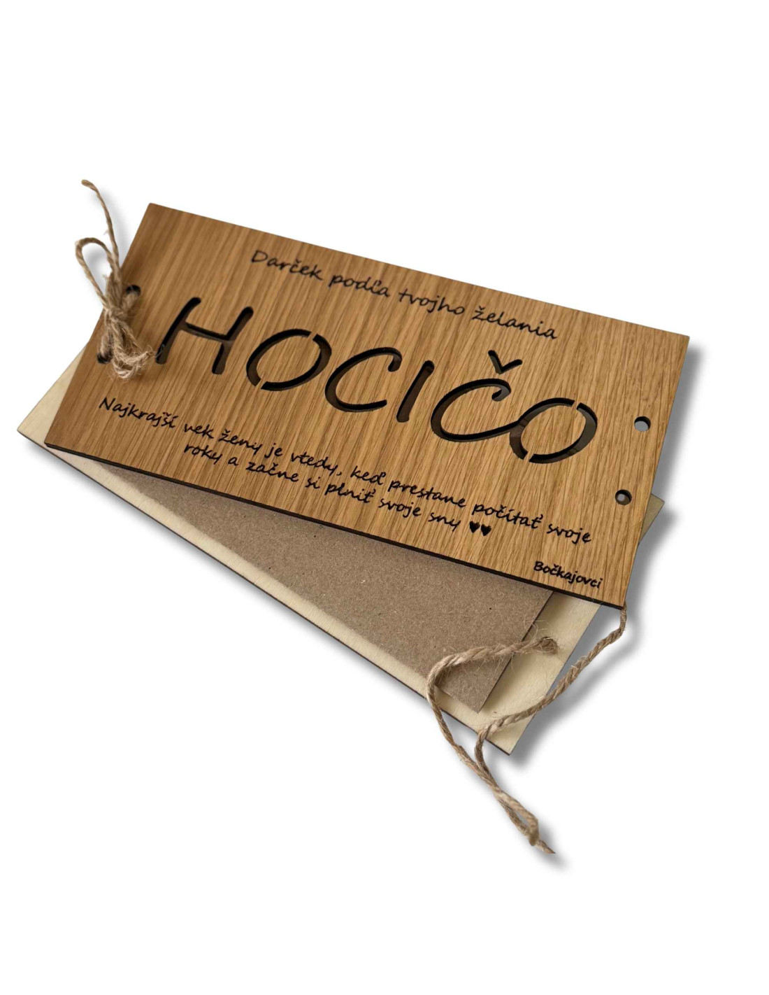 Lustige Inschrift - Der Umschlag trägt die Aufschrift „ Hocičo “, die dem Geschenk einen besonderen Charakter und Humor verleiht.