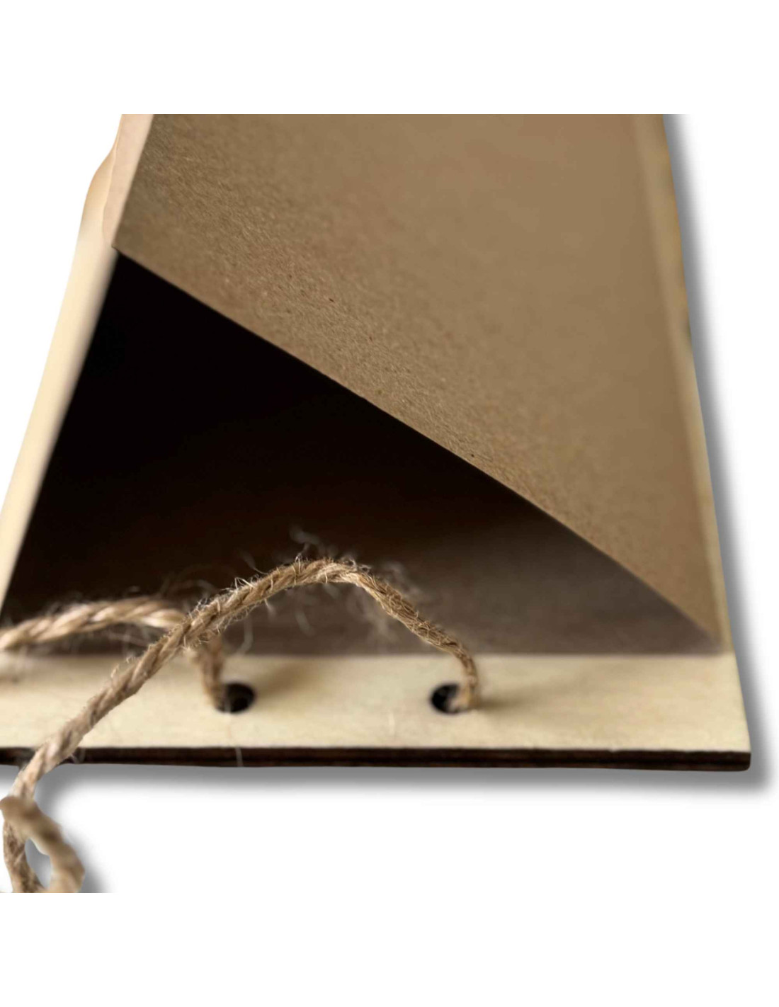 Der Umschlag ist mit Jutegarn verschnürt, was dem Produkt ein natürliches und authentisches Aussehen verleiht.