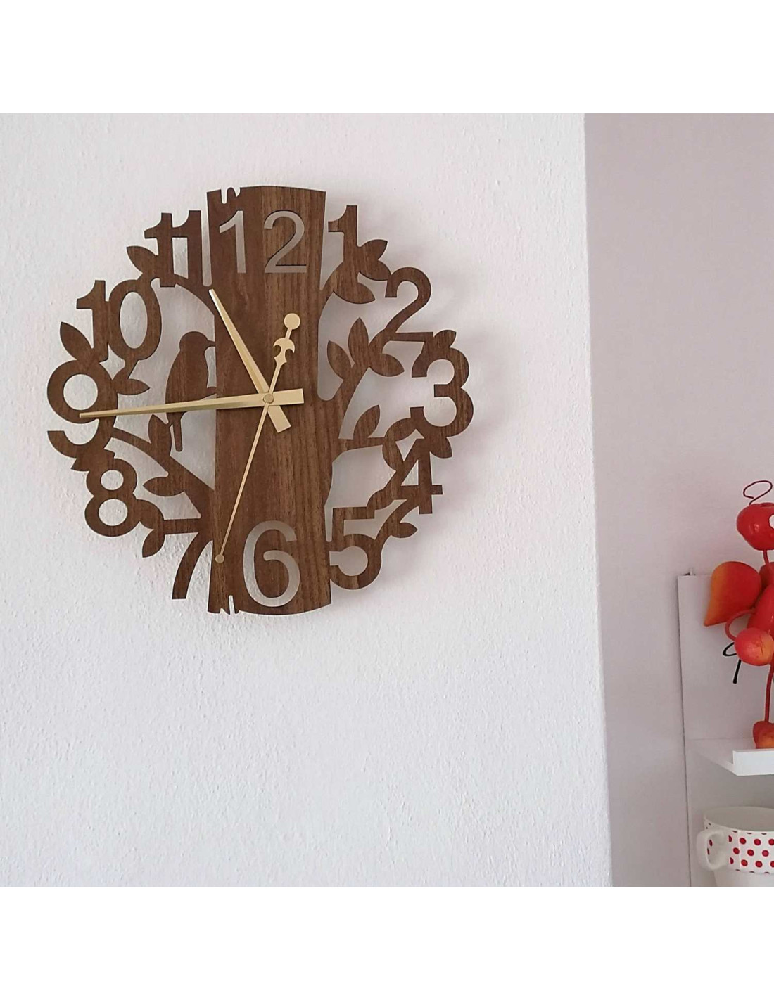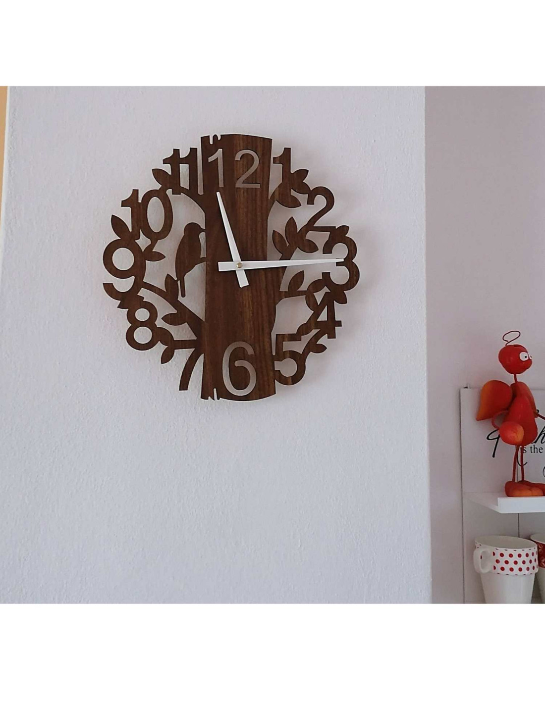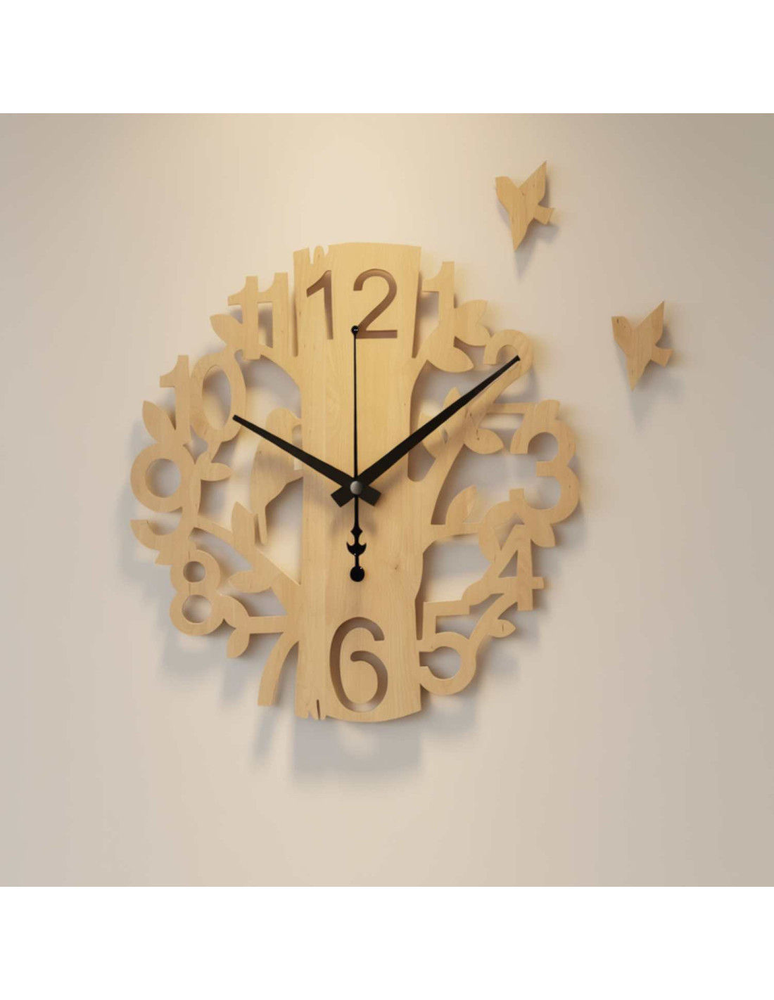 Holzwanduhr Lebensbaum mit Vogel - HELFERN