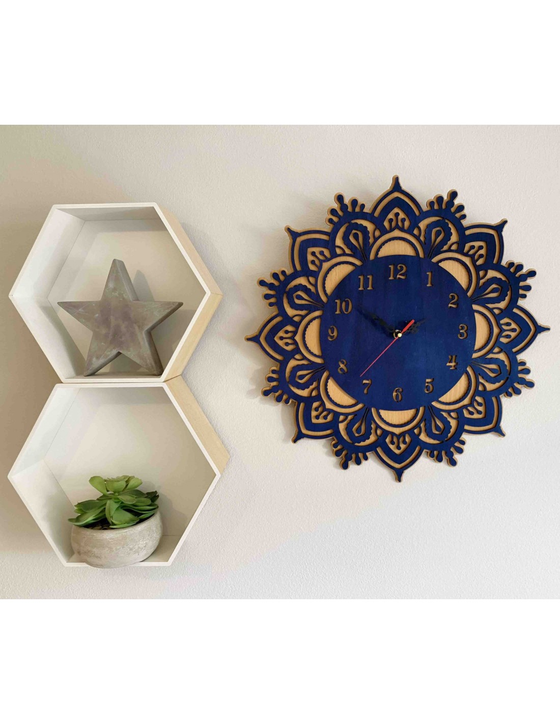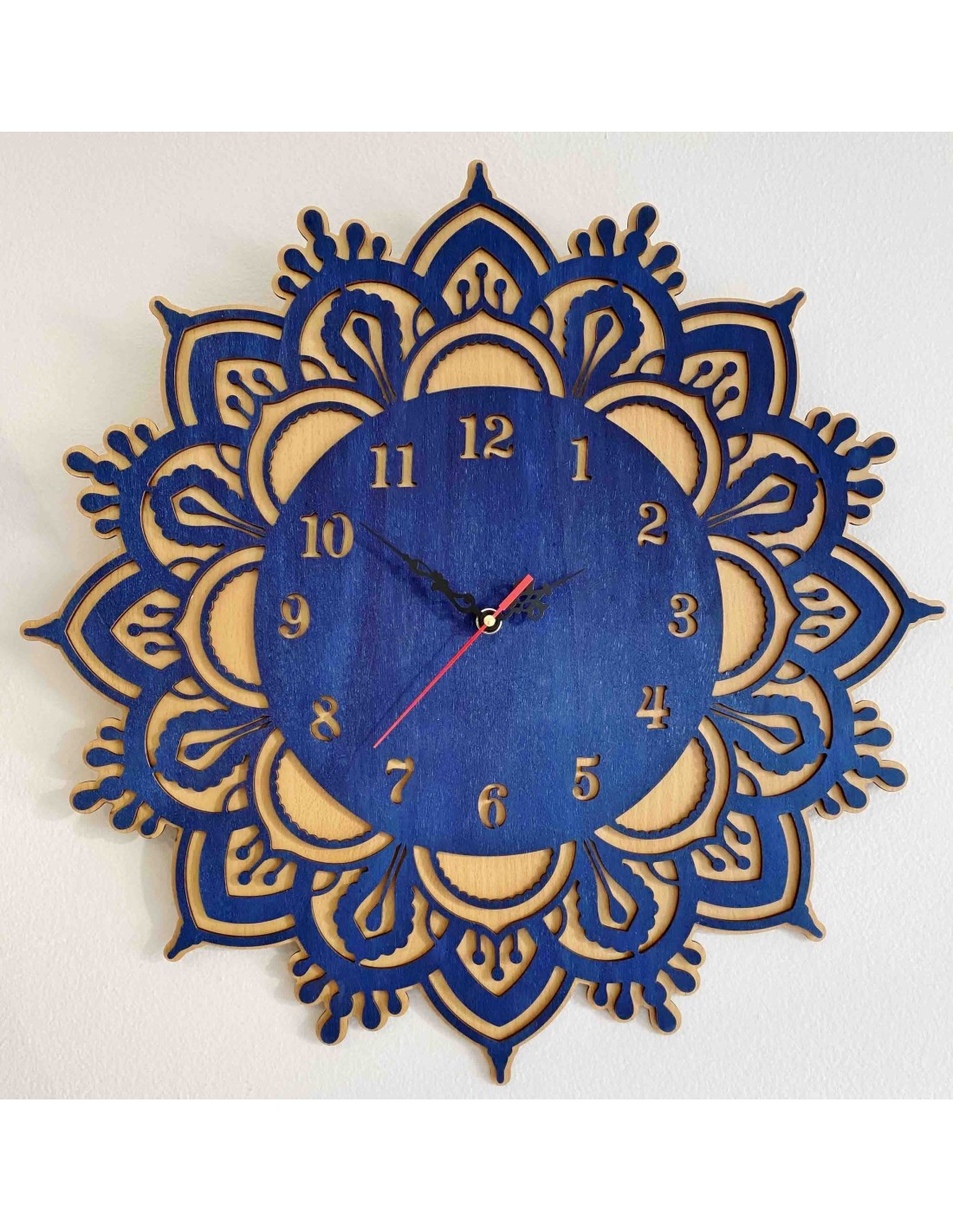 Verleihen Sie Ihrem Interieur Charme und Ruhe mit dieser dekorativen Wanduhr aus Sperrholz mit floralem Mandala-Muster.