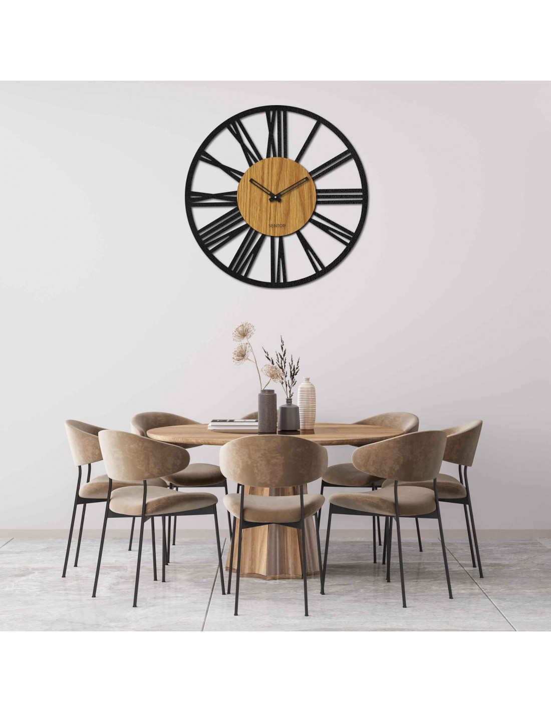 SentopDie HDF-Wanduhr verbindet Langlebigkeit mit modernem Design. Ihr robustes Aussehen und ihre hochwertige Verarbeitung machen sie zur idealen Lösung für alle, die Wert auf ein funktionales und dennoch ästhetisch ansprechendes Gerät legen. Diese Uhr verleiht jedem Raum einen einzigartigen Charakter und ist eine gute Wahl für alle, die eine stilvolle Ergänzung für ihre Einrichtung suchen.