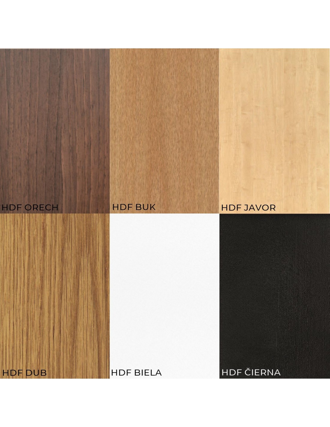• Farben: Eiche, Buche, Ahorn, Nussbaum, Weiß oder Schwarz