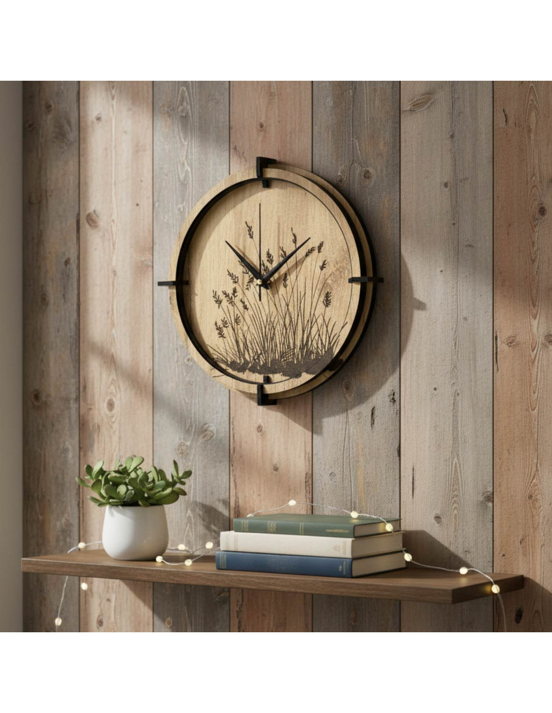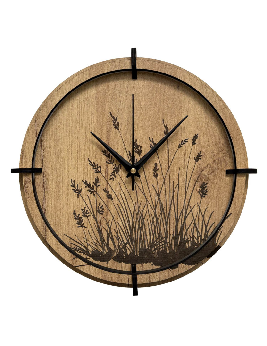 Wanduhr aus Holz mit Wiesengrasmotiv | SMIETK