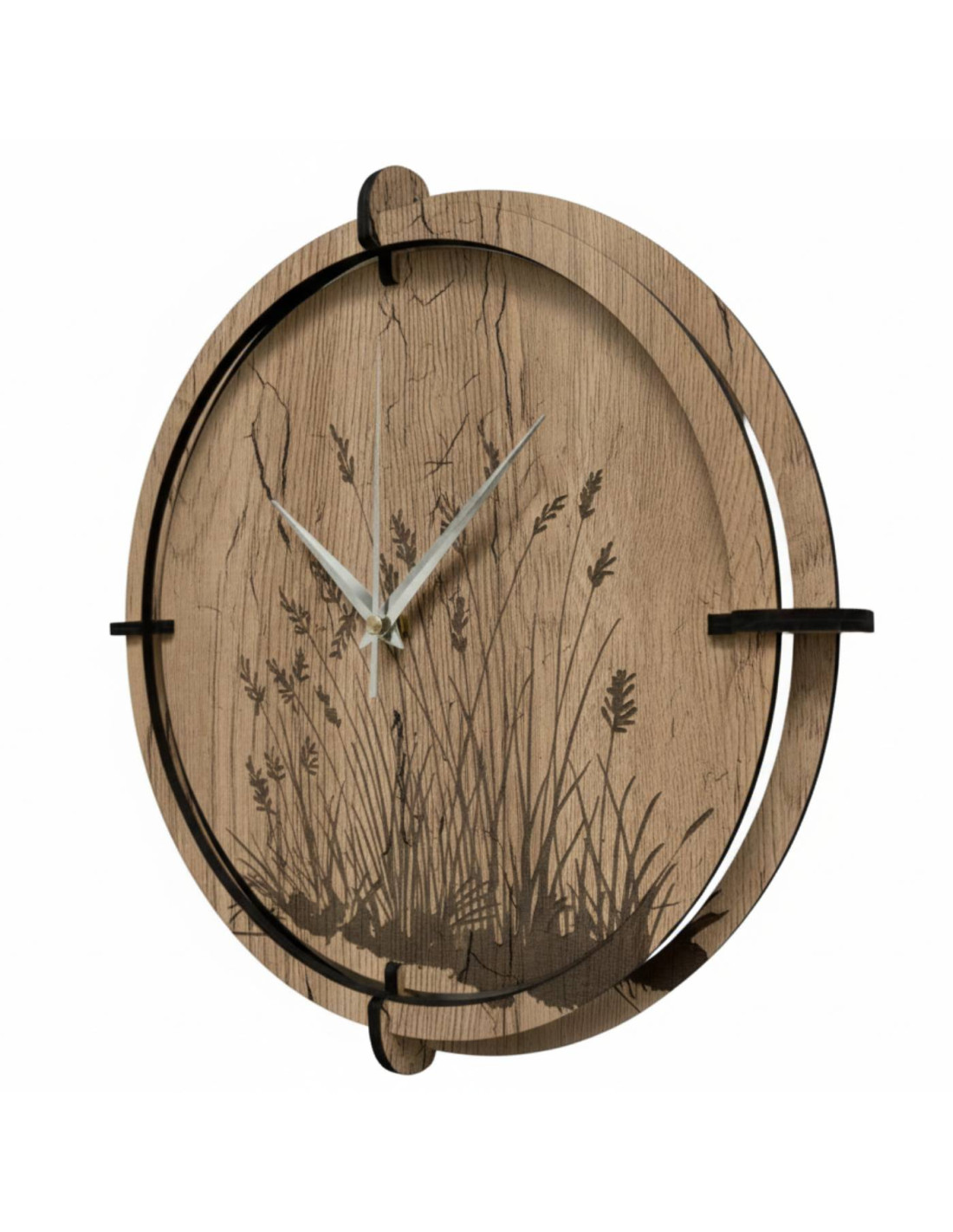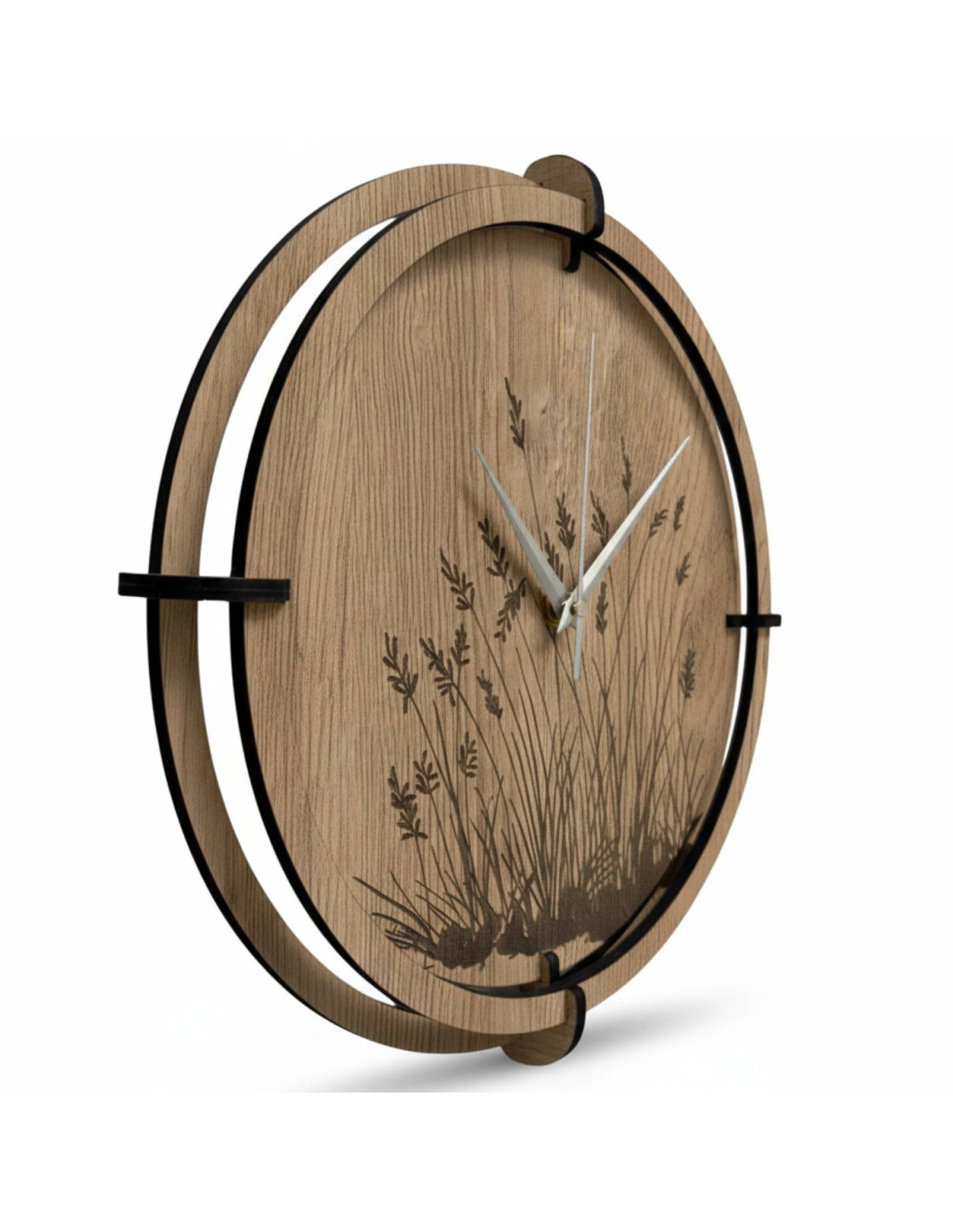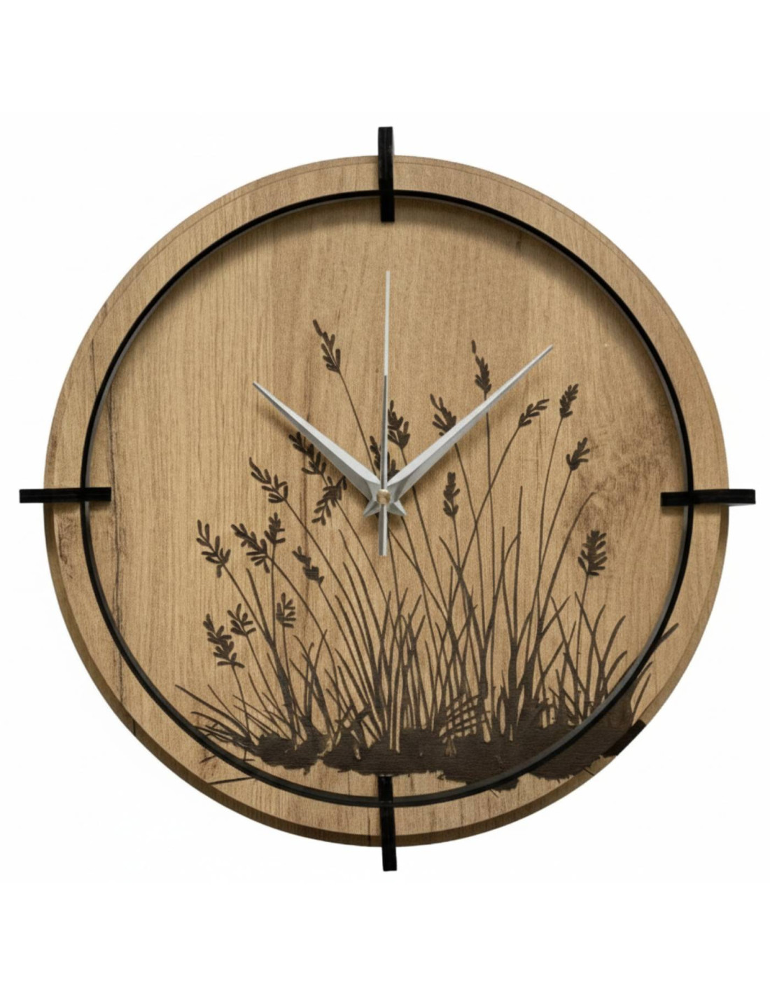 Wanduhr aus Holz mit elegantem Wiesengrasmotiv