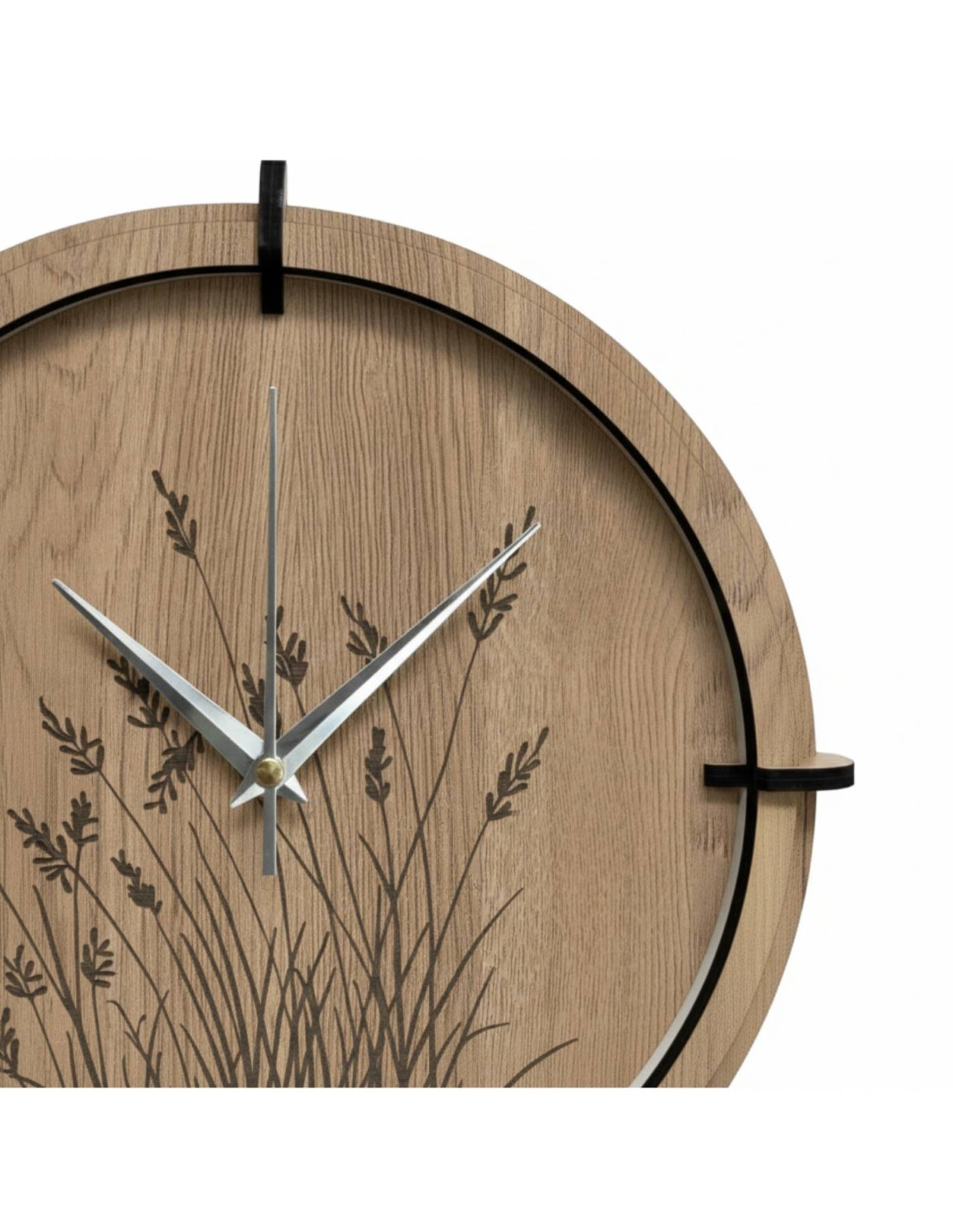 Holzuhr mit Grasmotiv | Eiche Halifax