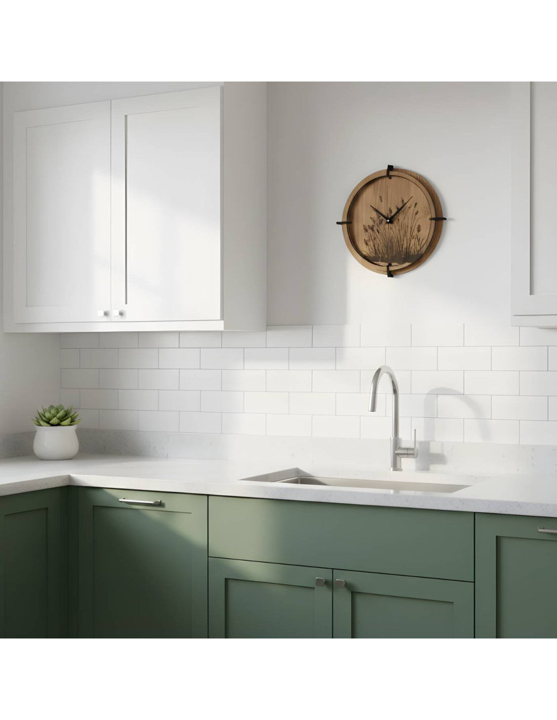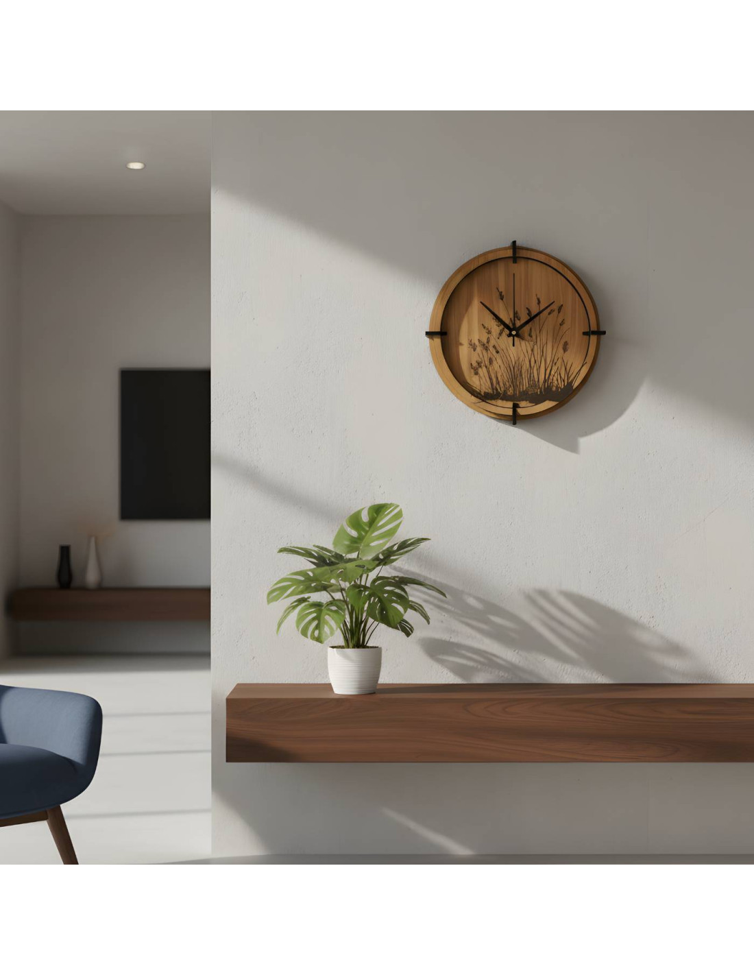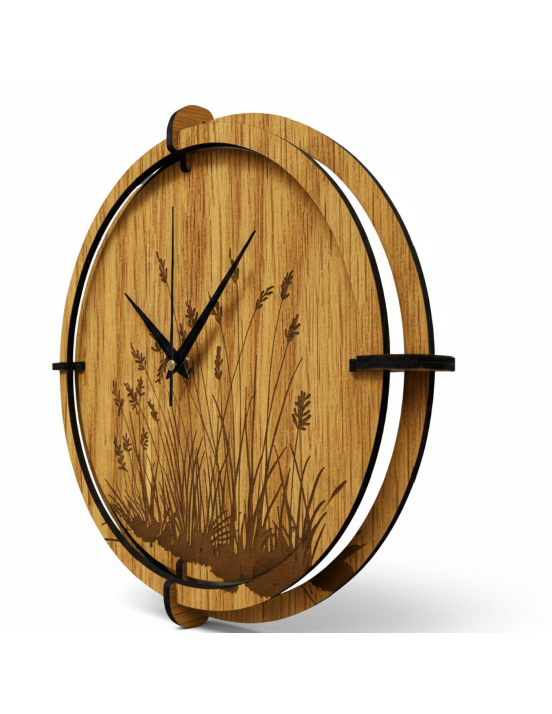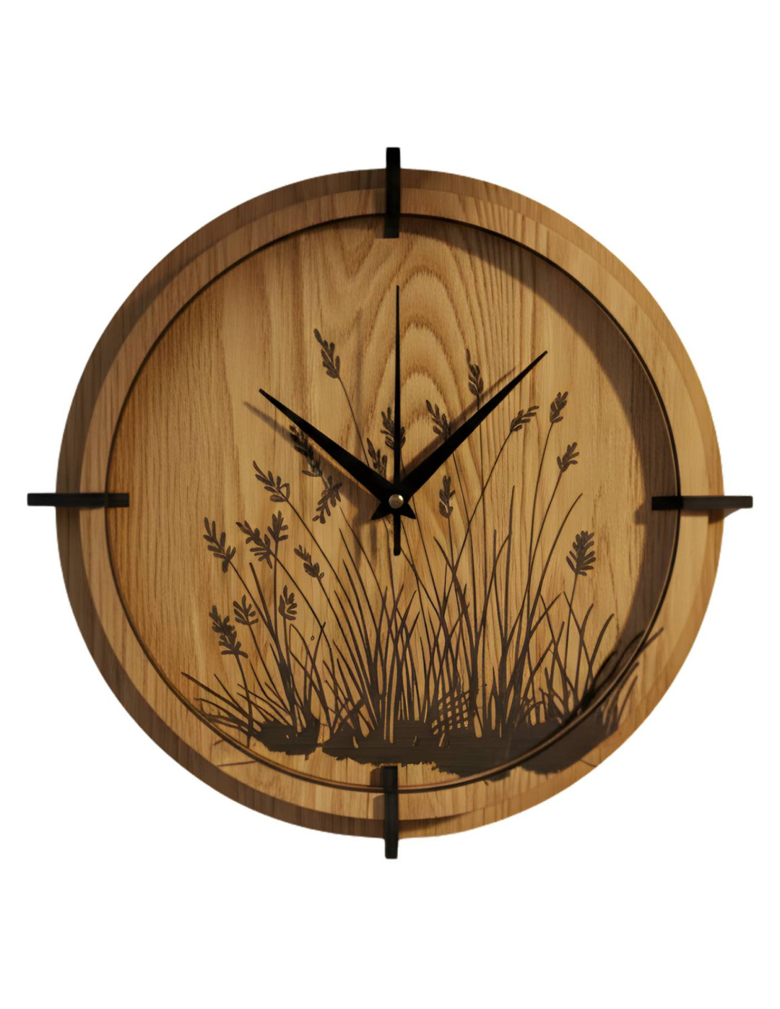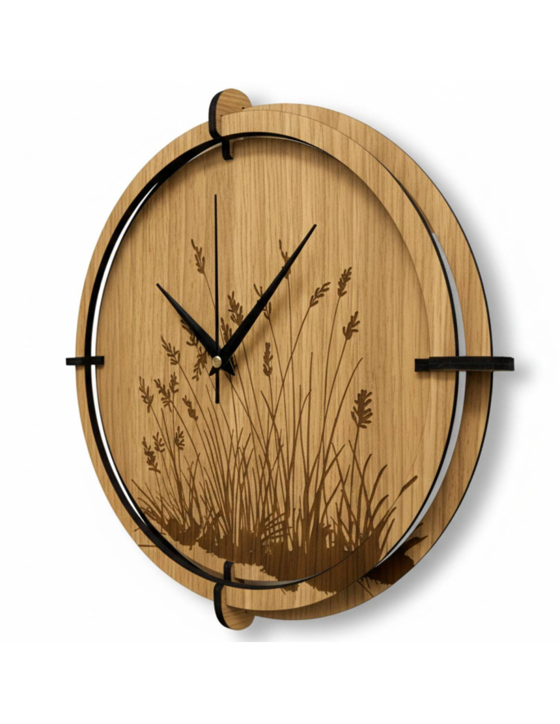 Wanduhr aus Holz mit elegantem Wiesengrasmotiv