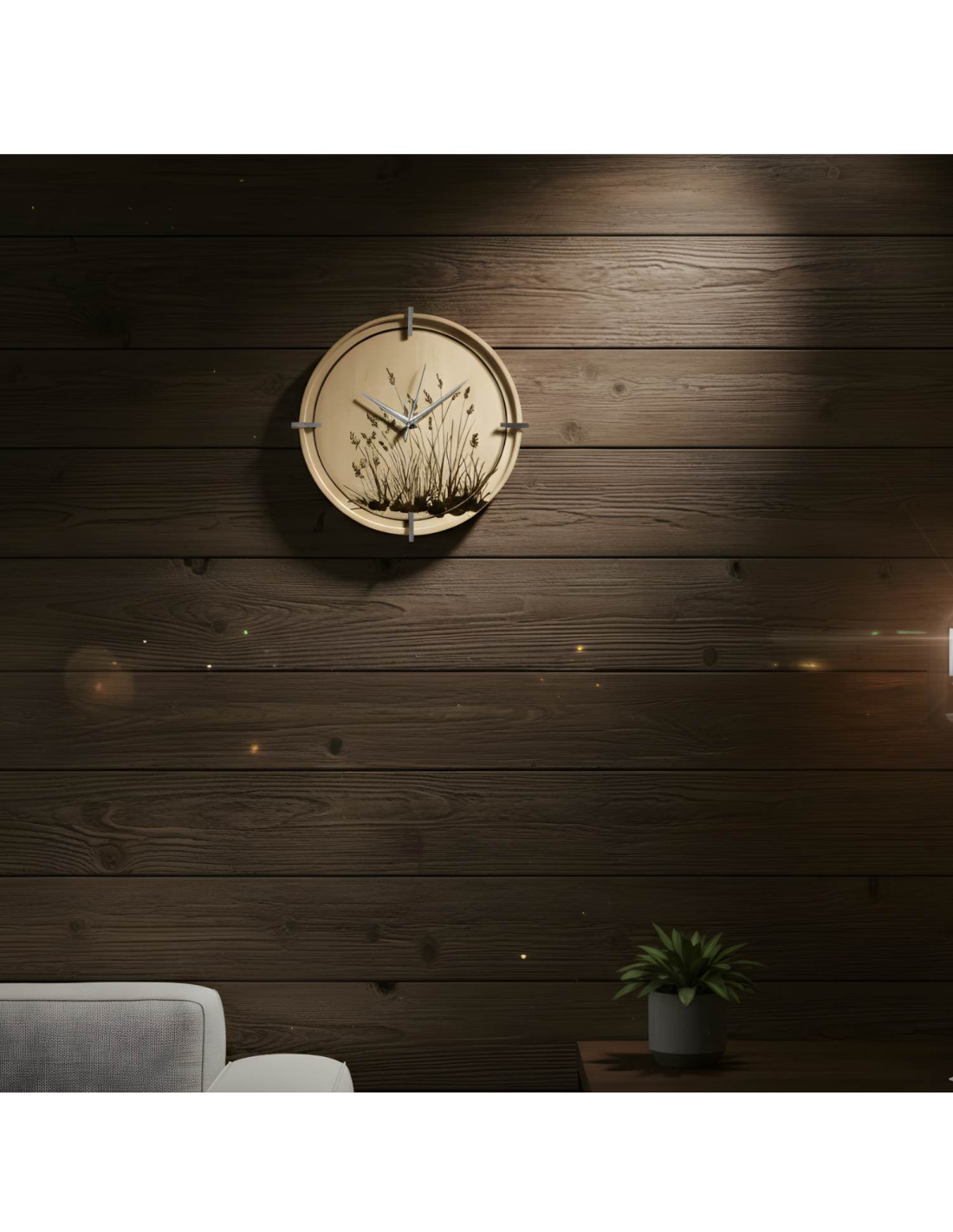 Wanduhr aus Holz mit elegantem Wiesengrasmotiv