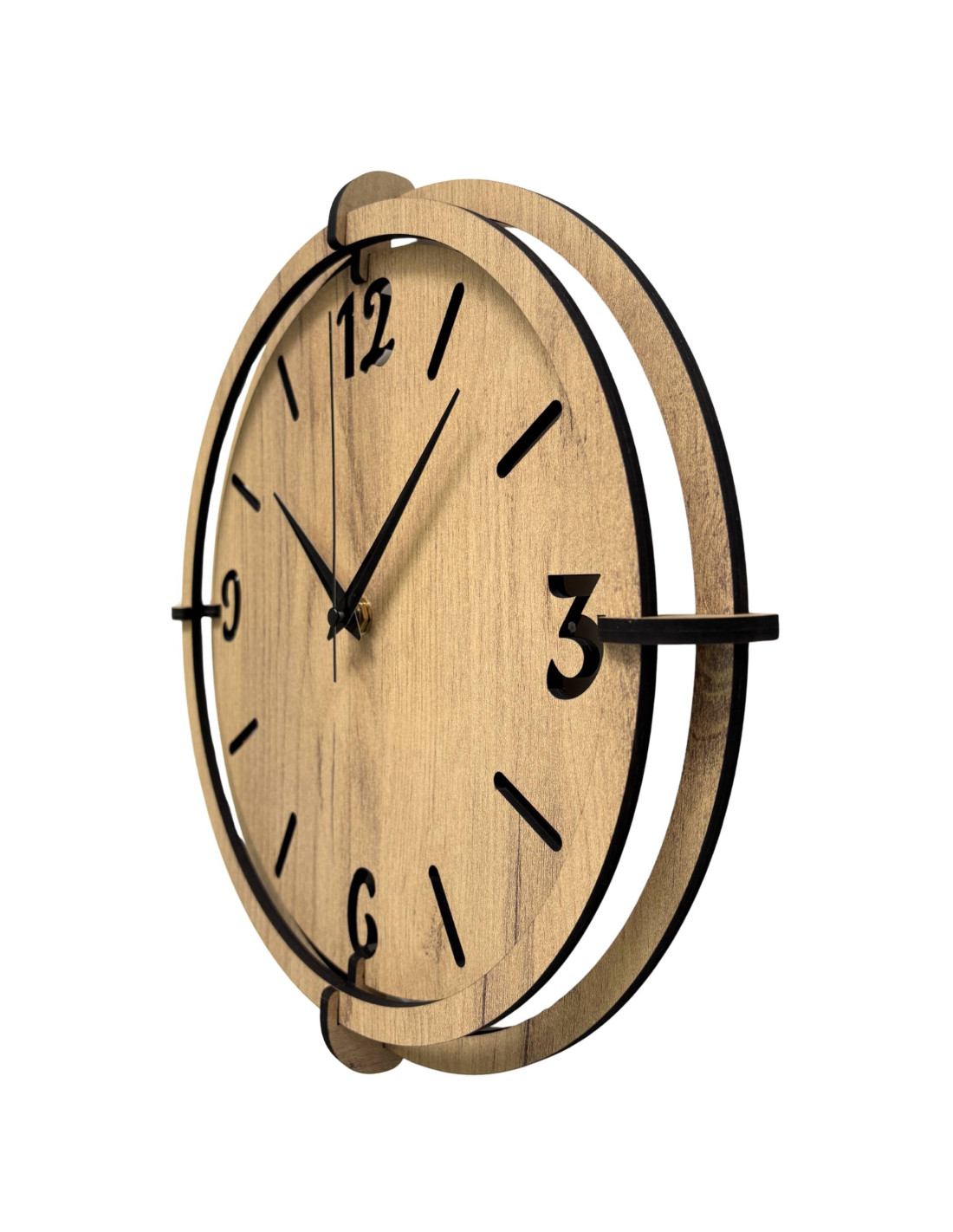 Diese aus HDF-Holz gefertigte Wanduhr vereint modernes Material mit ehrlicher Handwerkskunst.