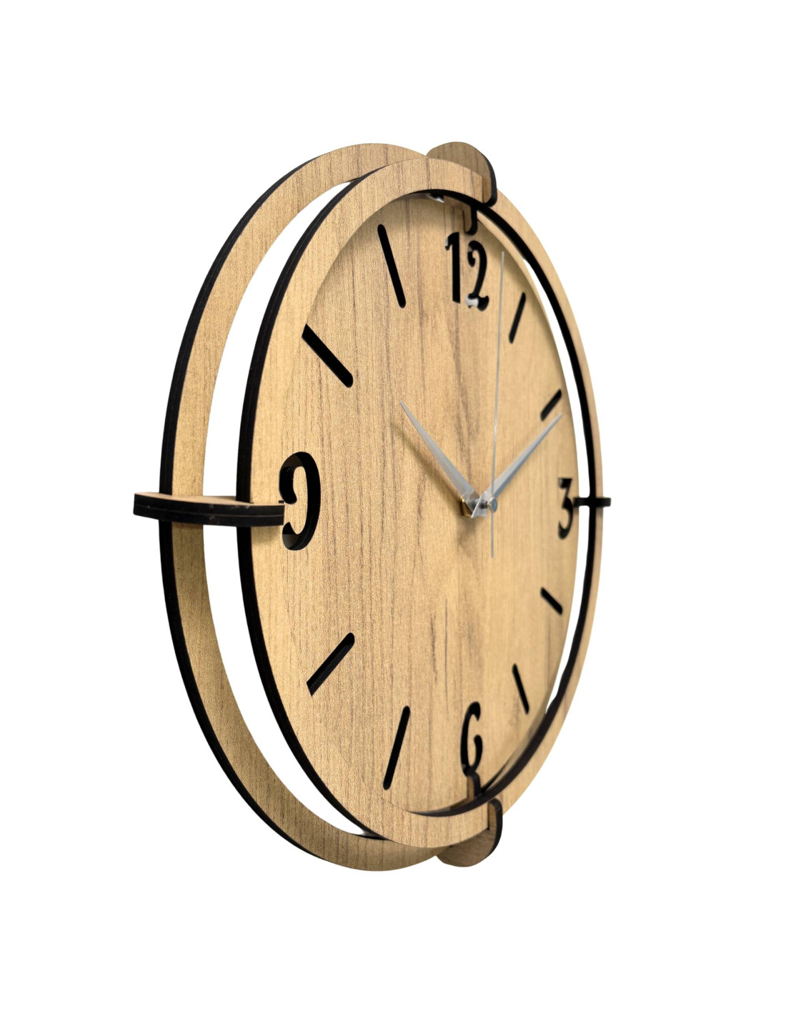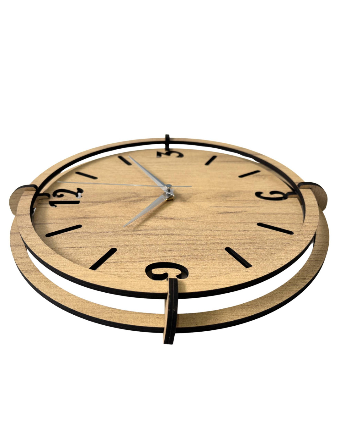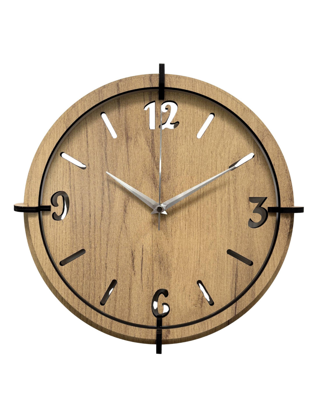 Diese aus HDF-Holz gefertigte Wanduhr vereint modernes Material mit ehrlicher Handwerkskunst.