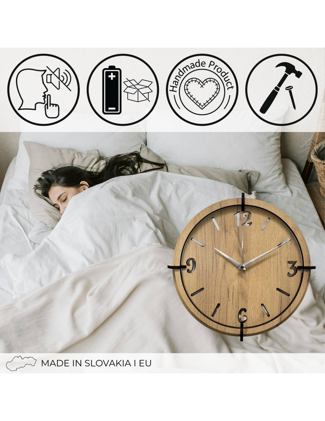 Holzuhren aus hochwertigen HDF-Platten vereinen die Ästhetik klarer Linien mit einem leisen Quarzwerk , das einen präzisen und geräuschlosen Betrieb gewährleistet.