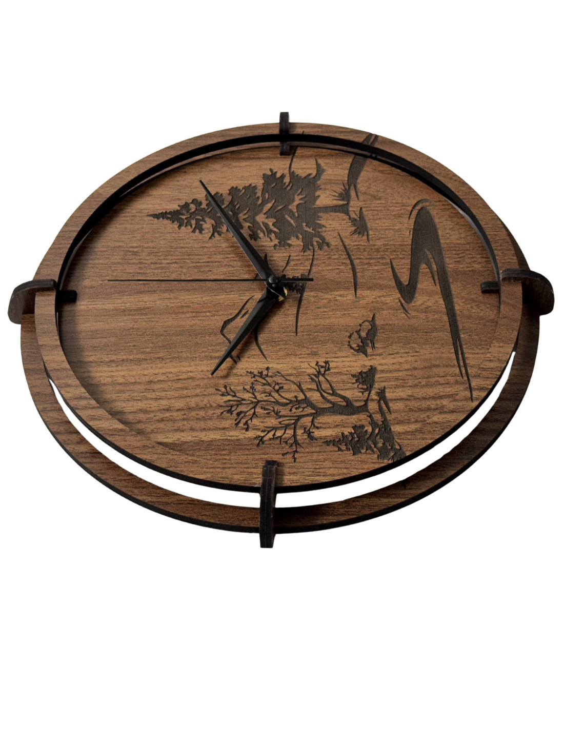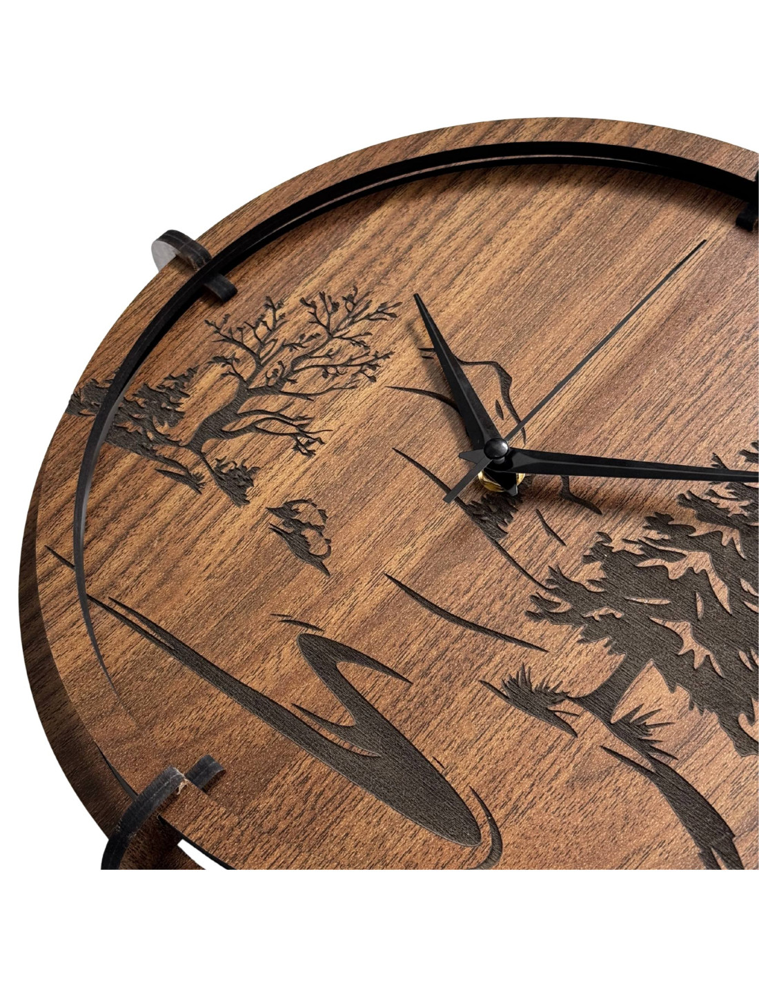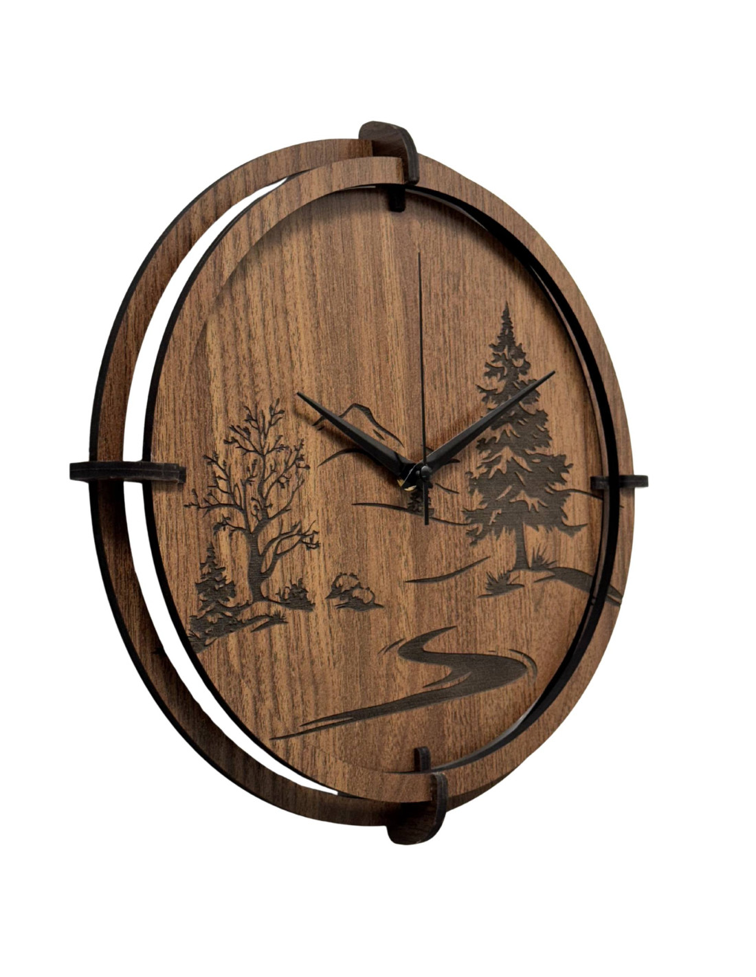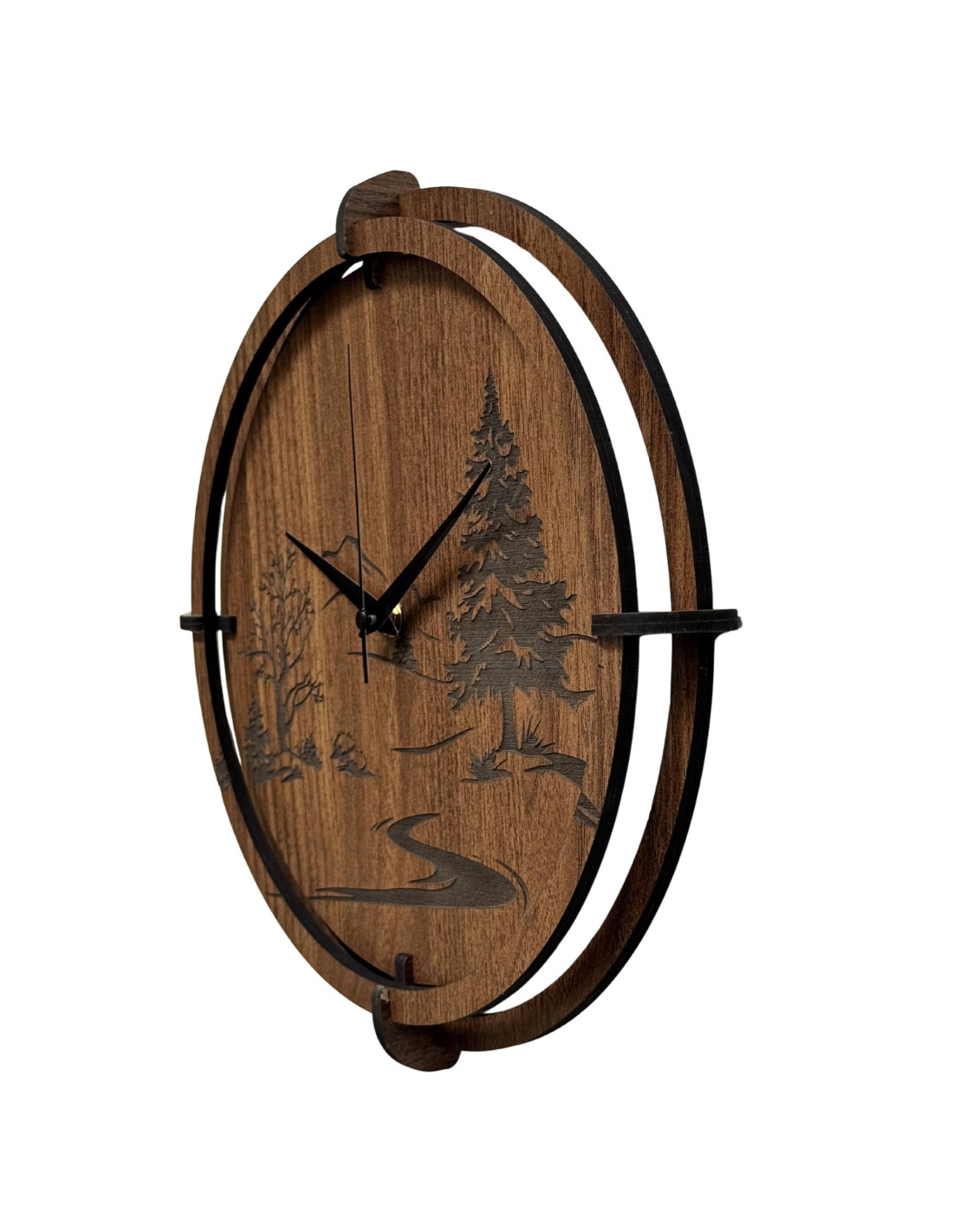 Wanduhr mit gravierter Waldlandschaft | Wenge-Nussbaum