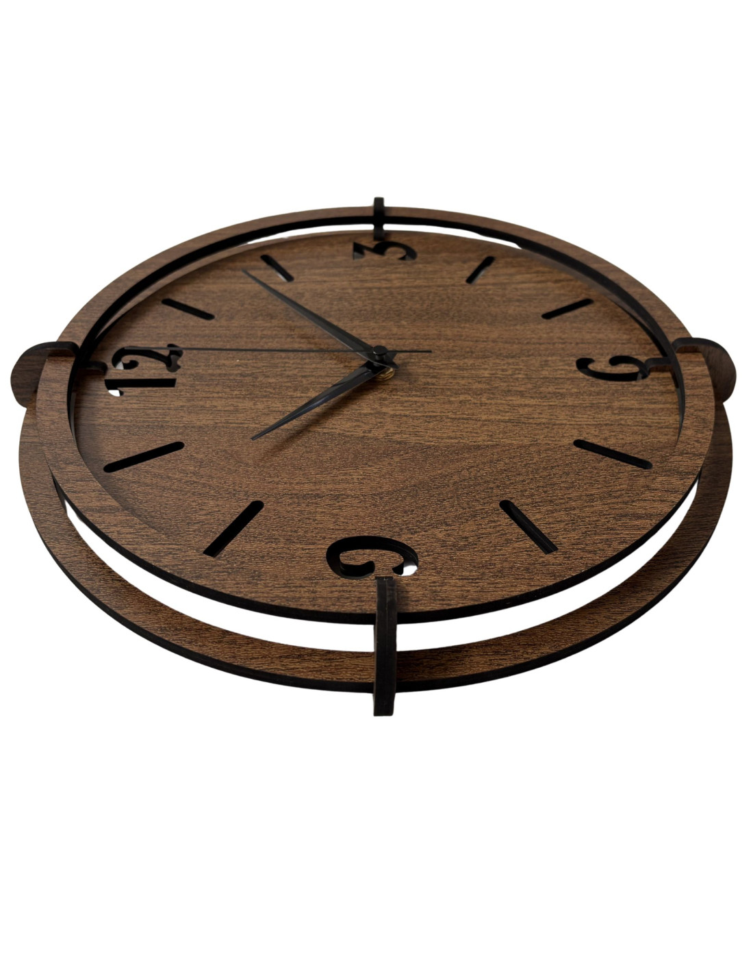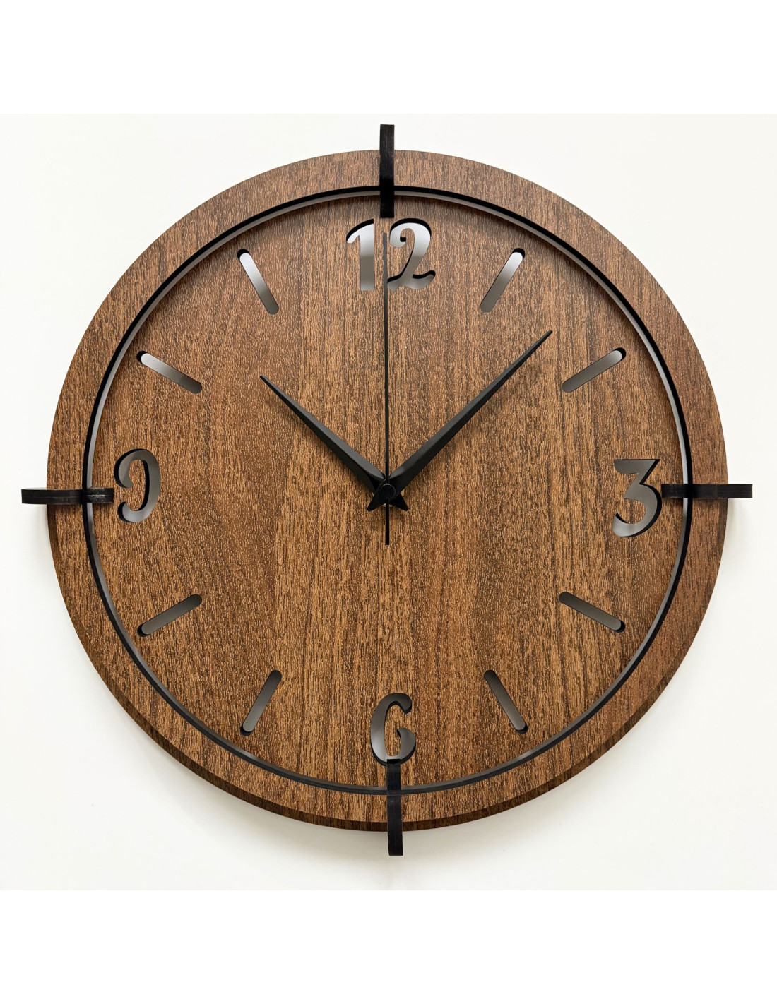 Diese aus HDF-Holz gefertigte Wanduhr vereint modernes Material mit ehrlicher Handwerkskunst.