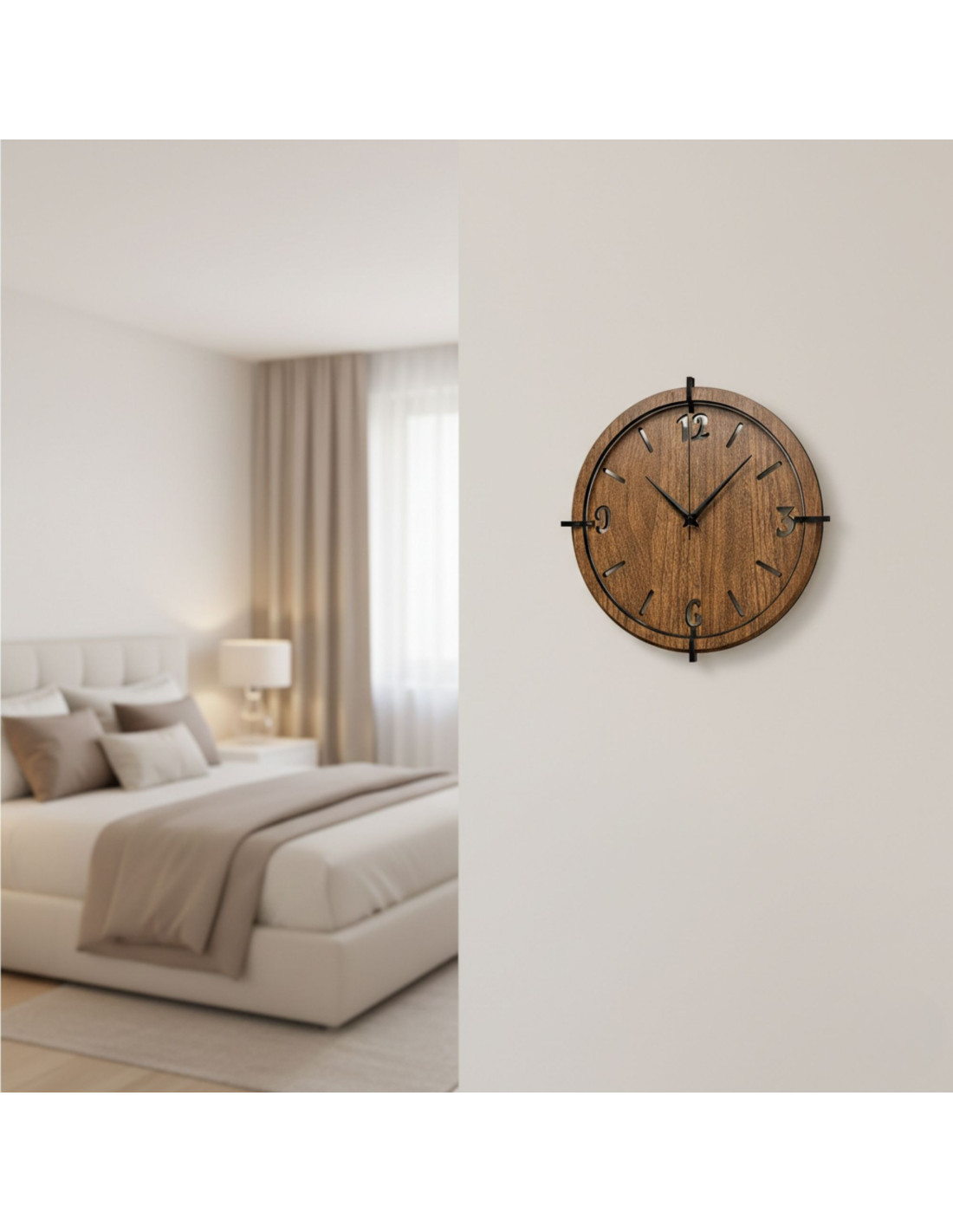Die markanten Ziffern und die schöne Holzmaserung sorgen für einen harmonischen und stilvollen Look , während das präzise und leise Quarzwerk eine zuverlässige Zeitmessung gewährleistet.