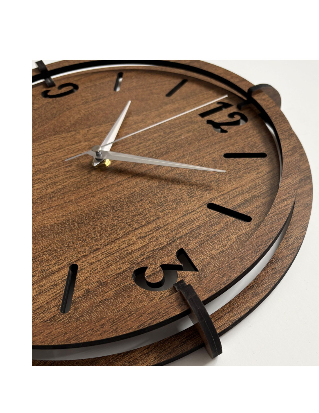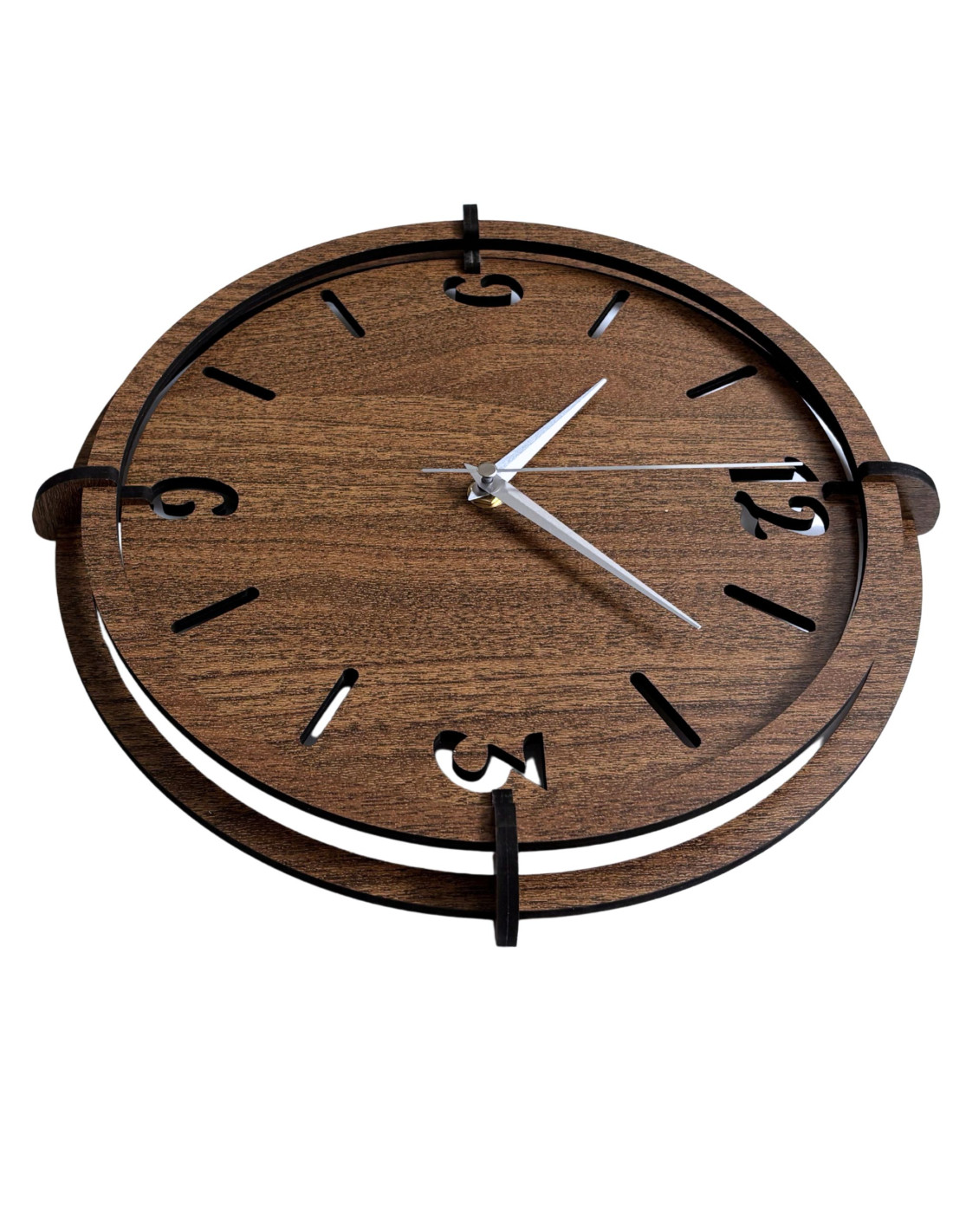 Diese aus HDF-Holz gefertigte Wanduhr vereint modernes Material mit ehrlicher Handwerkskunst.