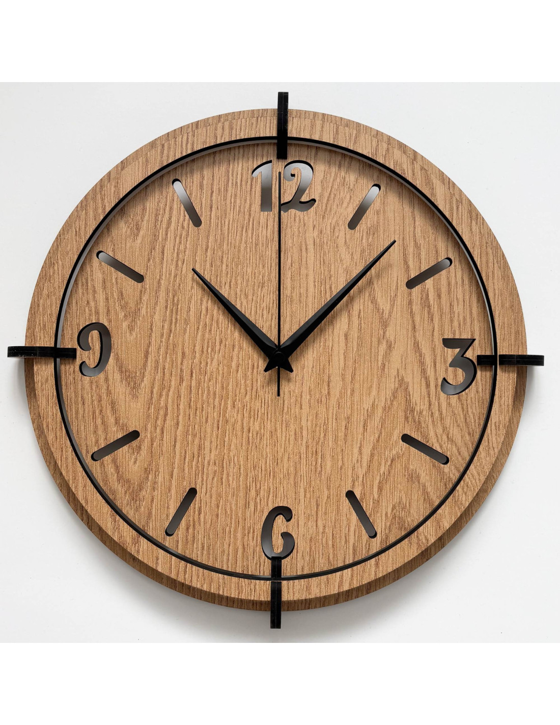 Stilvolle Eichenholzuhr – minimalistisches Design und kontrastierende schwarze Details