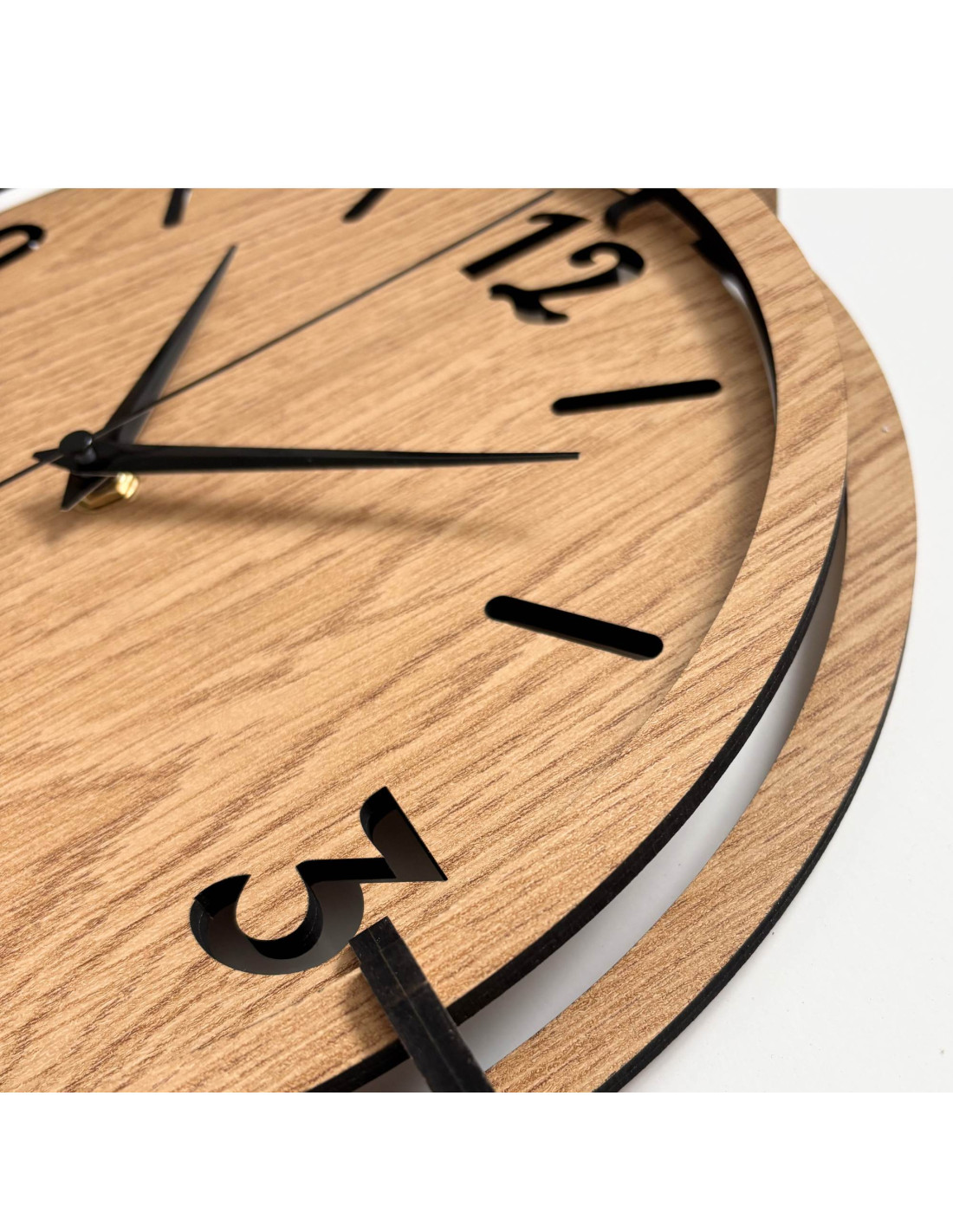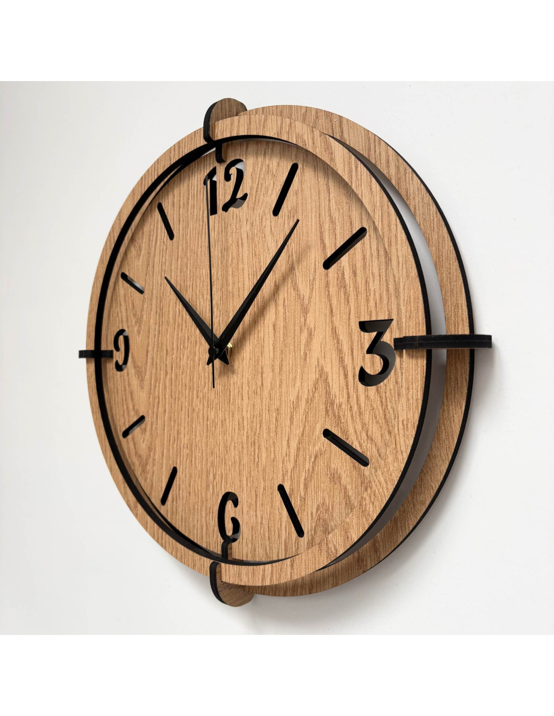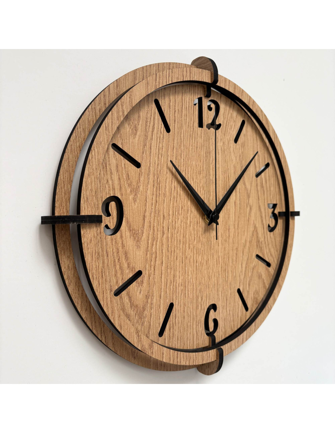 Moderne Uhr mit 3D-Effekt – Eichendekor für ein stilvolles Interieur