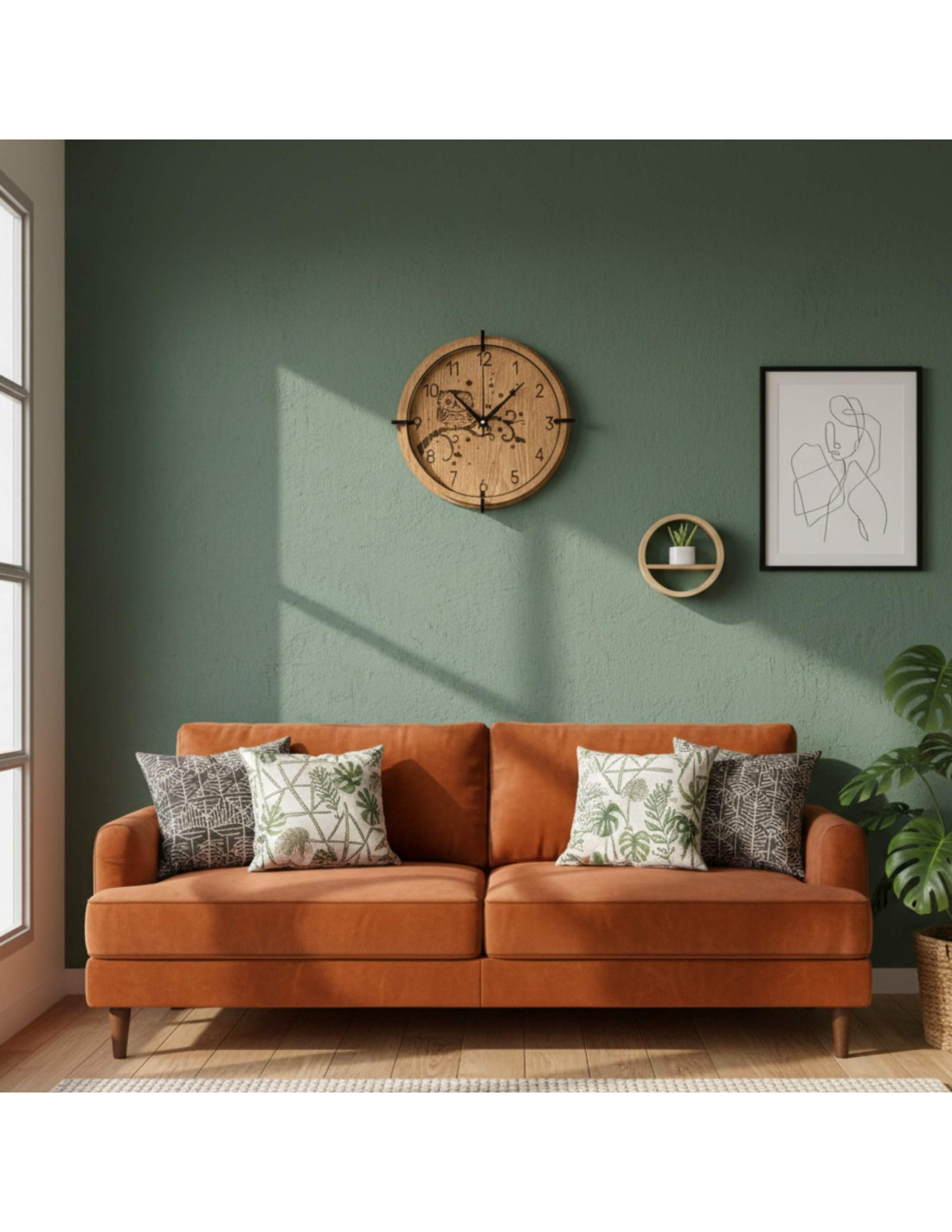 Wanduhr aus Holz mit Eule – natürliches Design mit leisem Betrieb