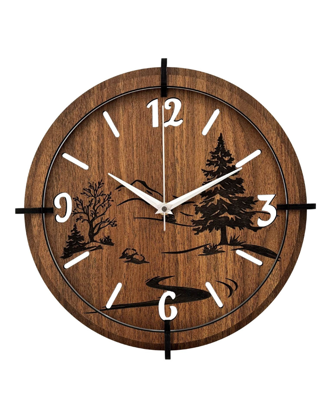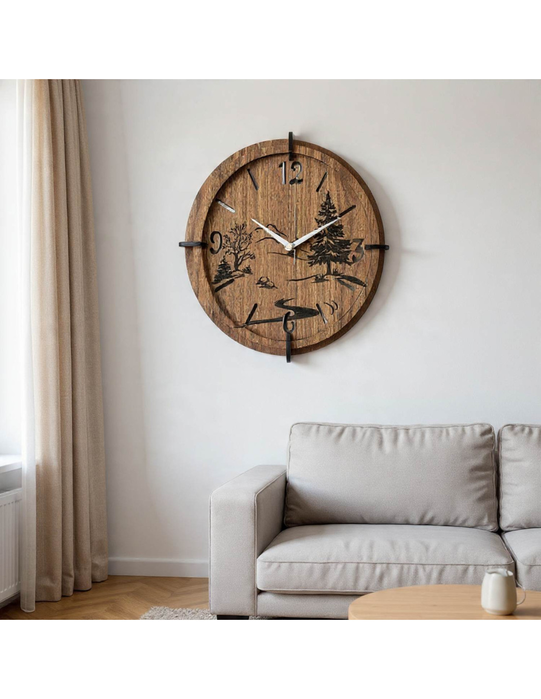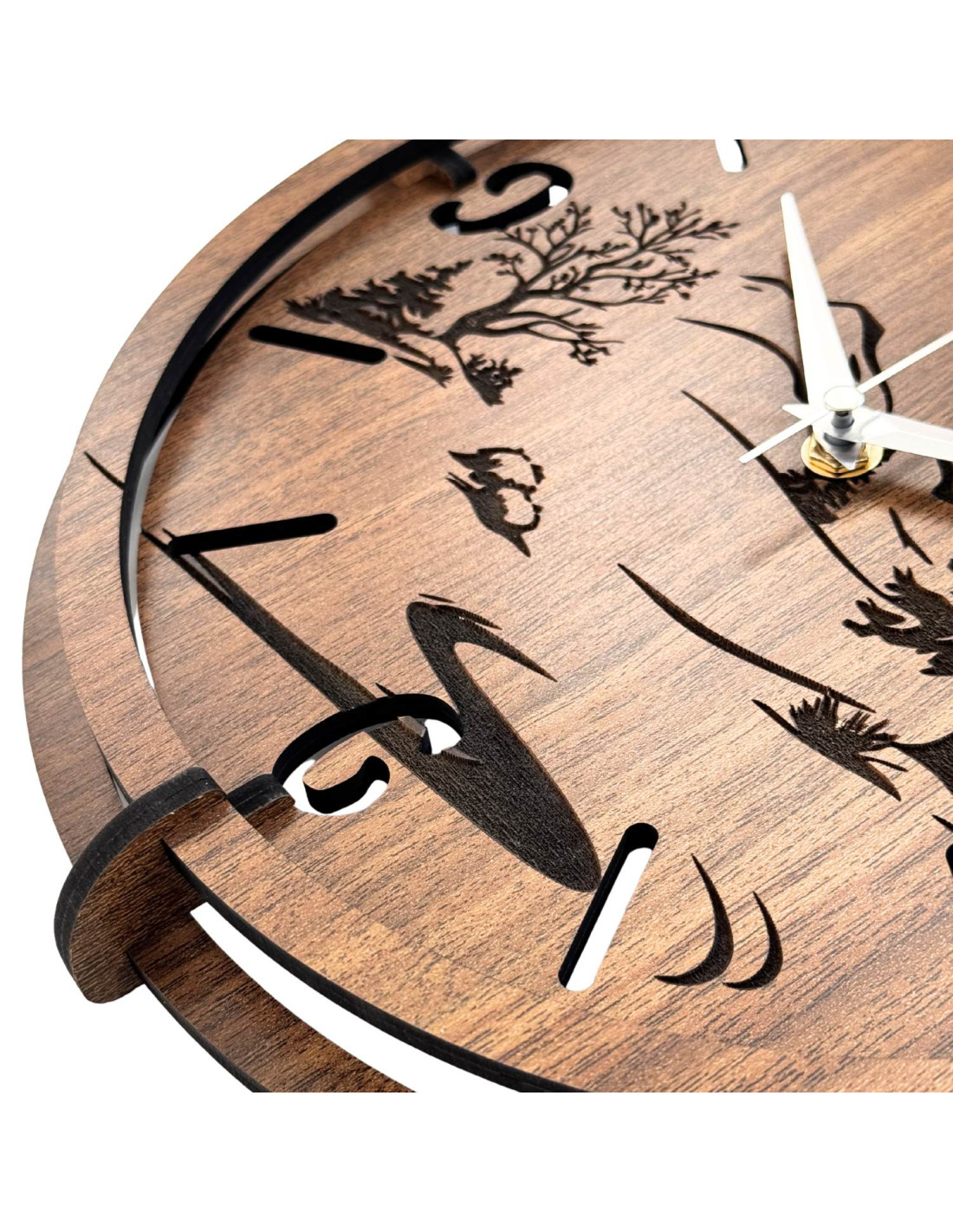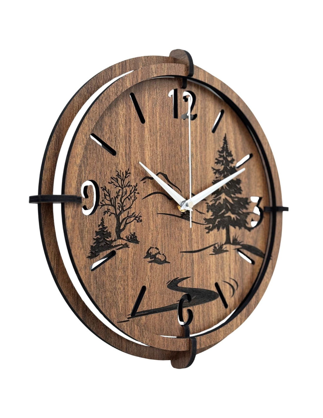 Wanduhr aus Holz mit Naturmotiv | Wenge-Walnuss