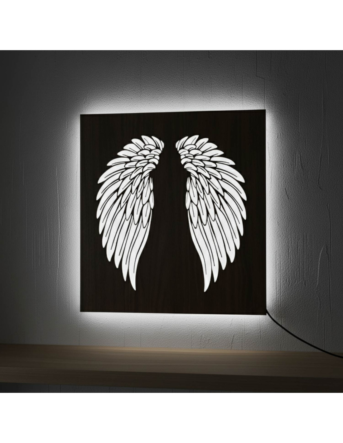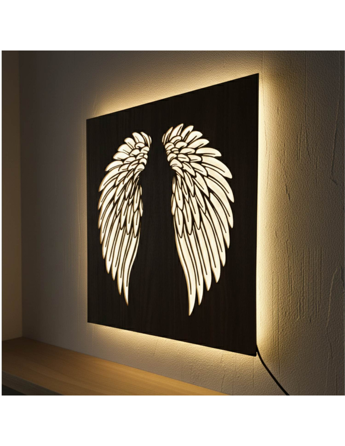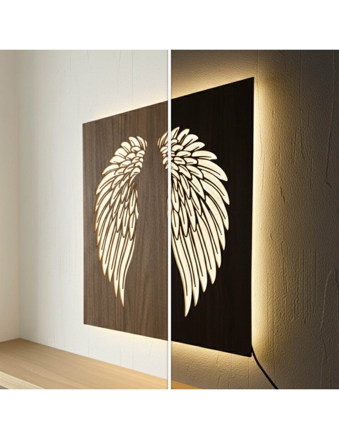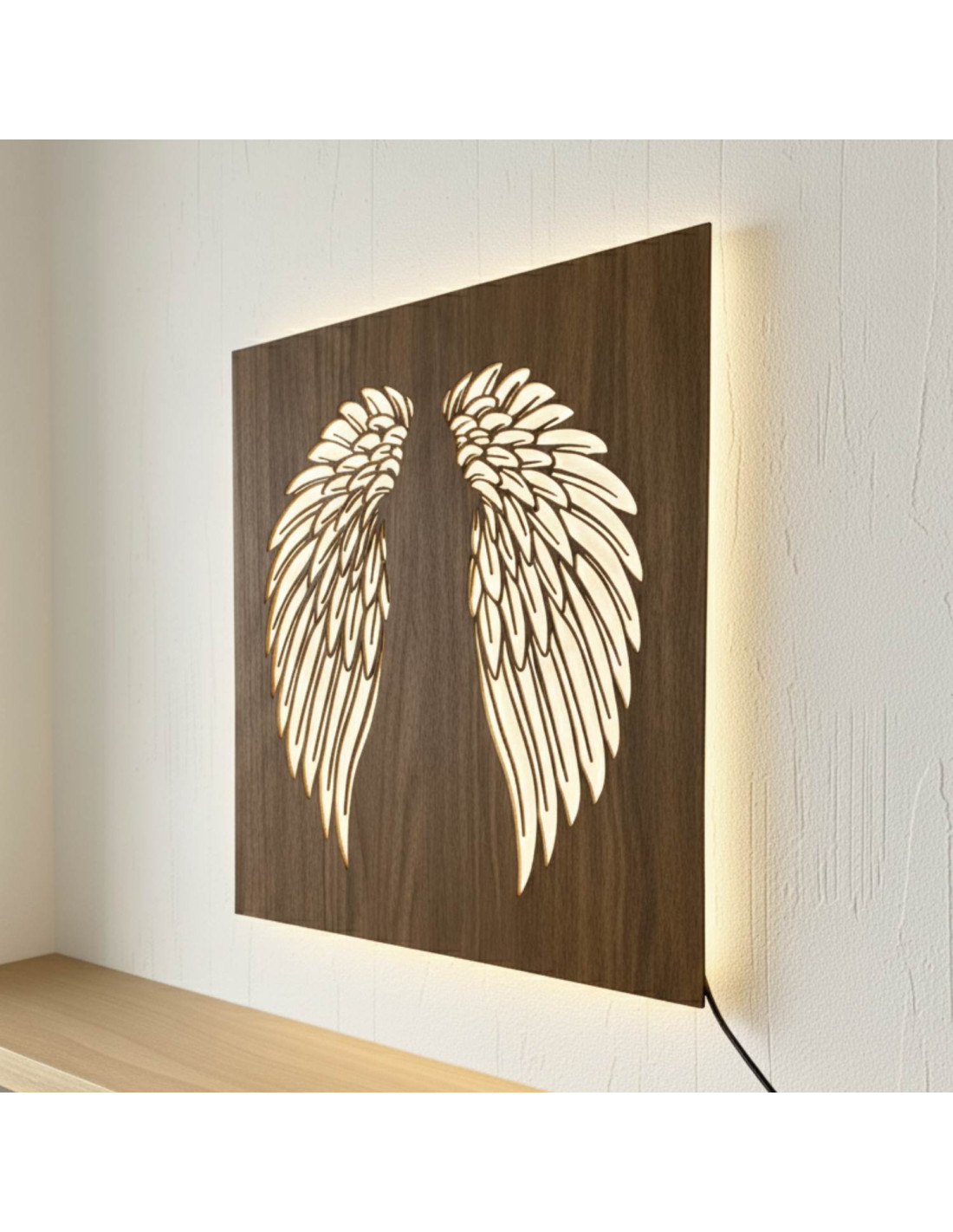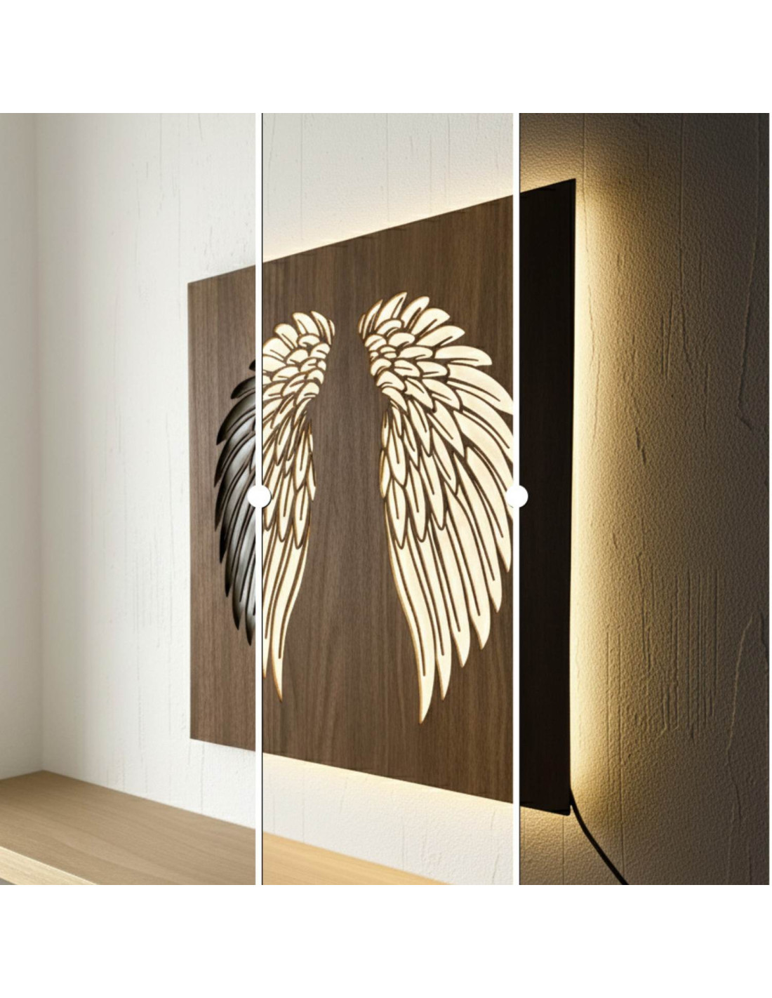 Hinterleuchtetes Holzbild mit LED-Beleuchtung – Engelsflügel an der Wand
