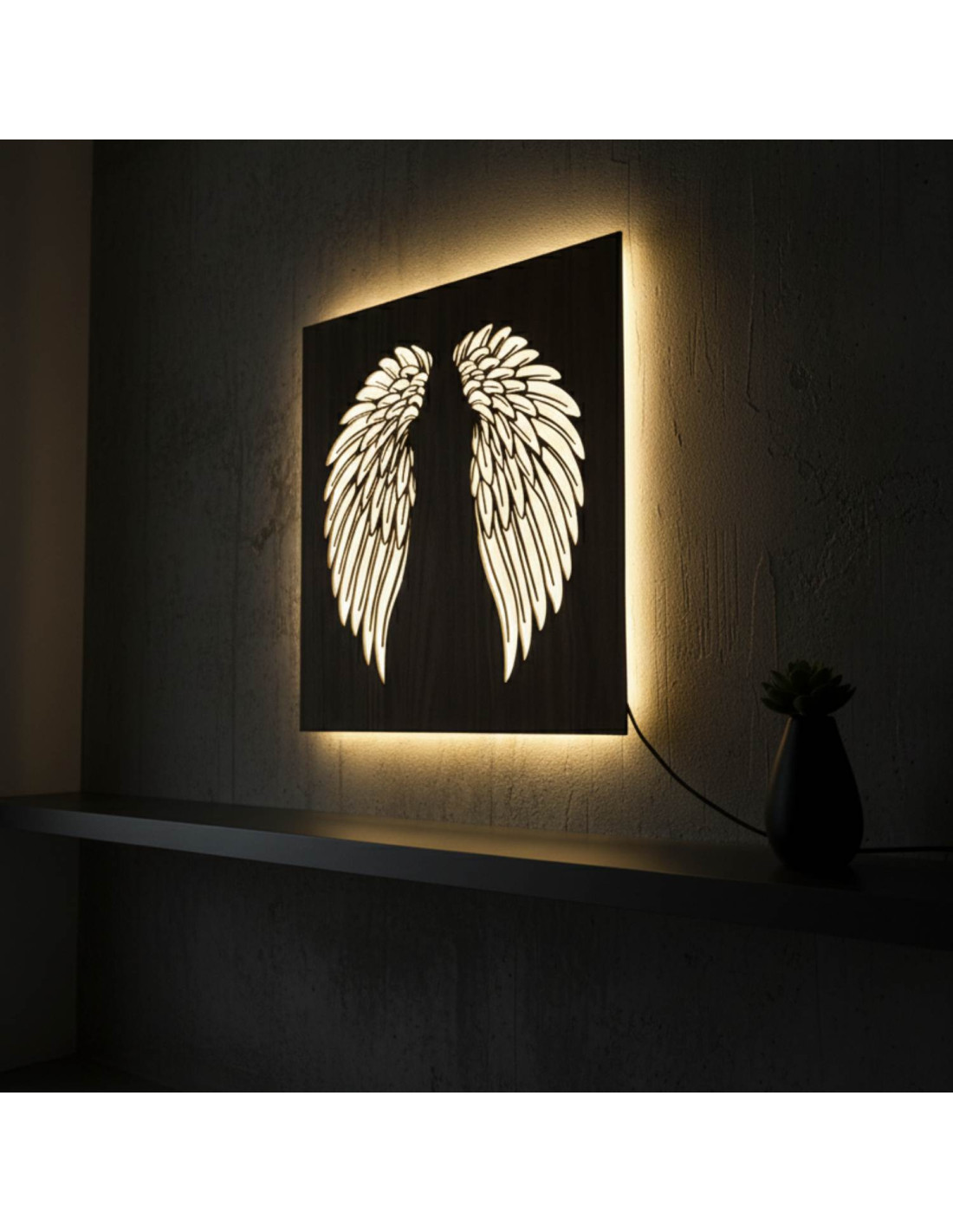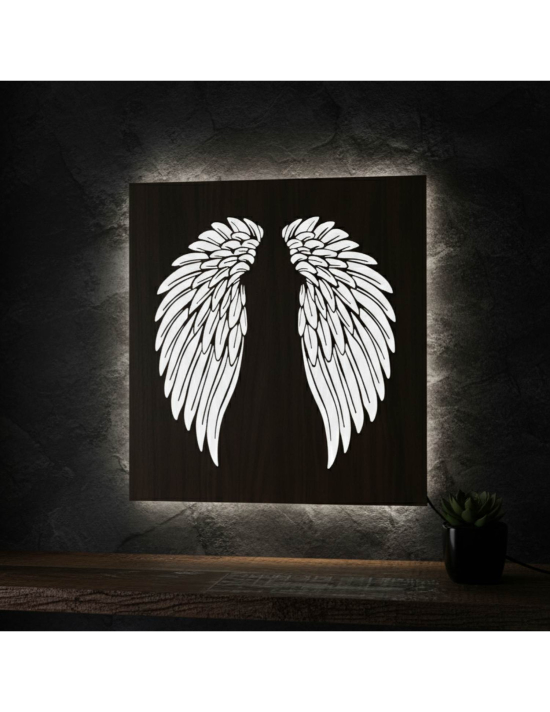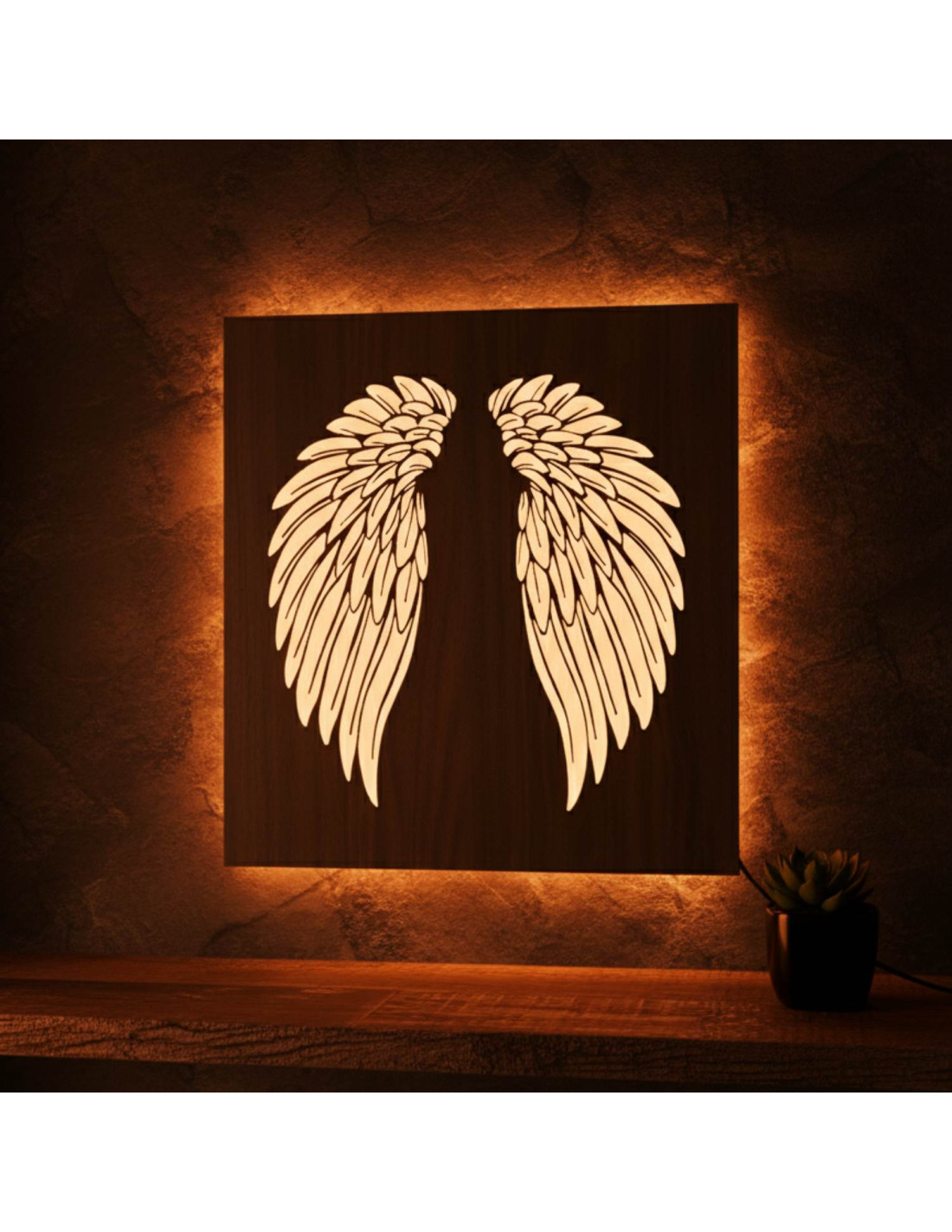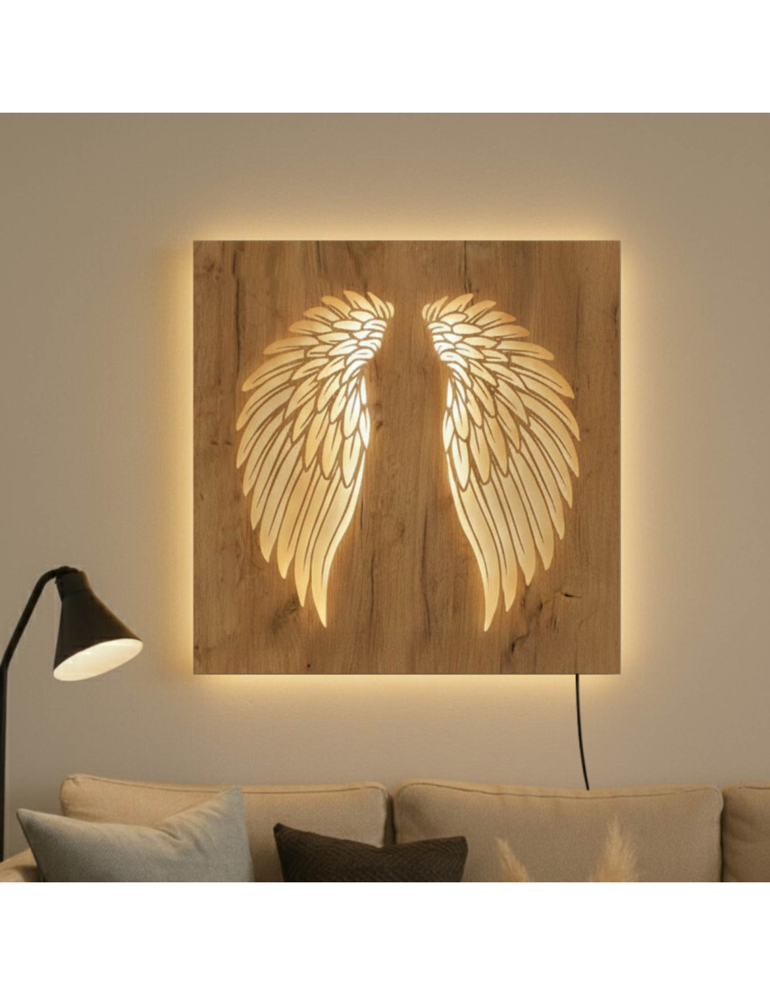 Hinterleuchtetes Holzbild mit LED-Beleuchtung – Engelsflügel an der Wand