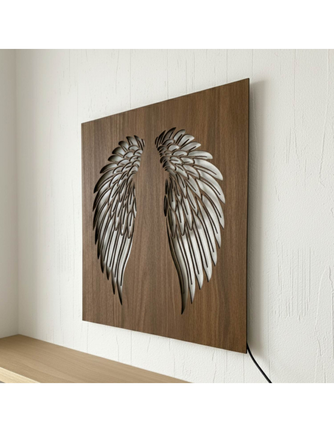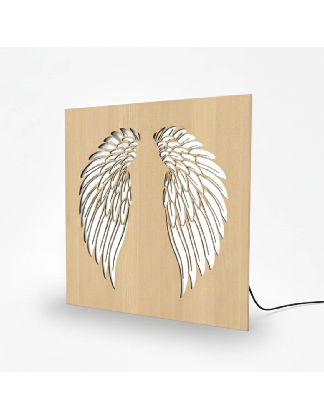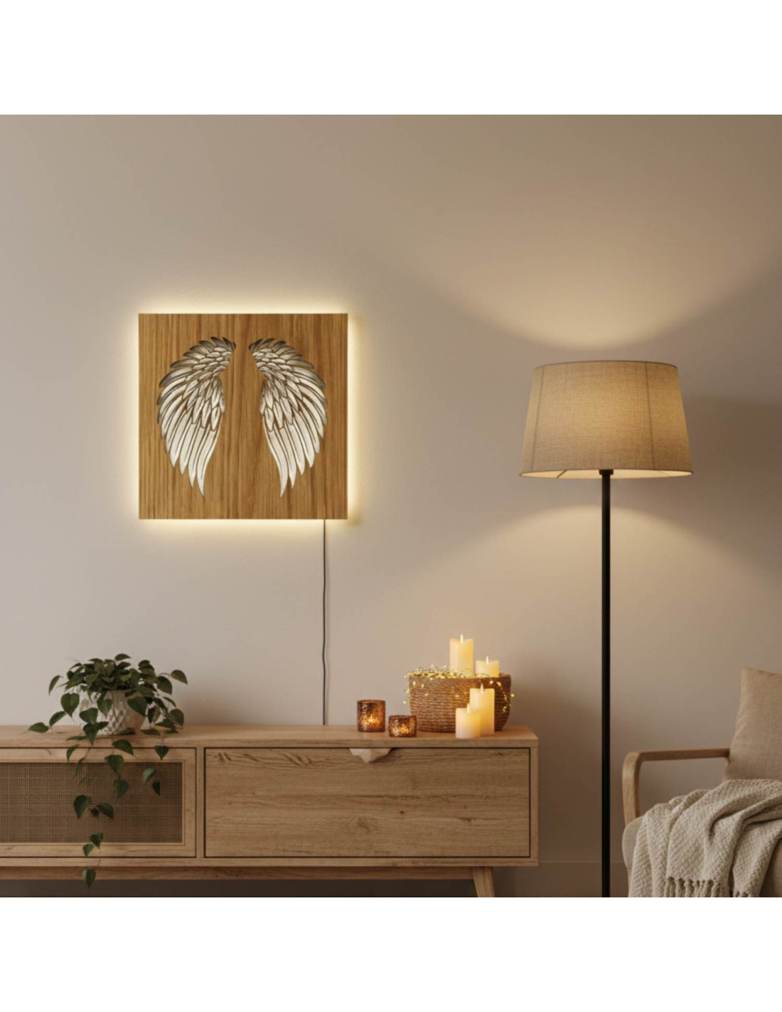 Hinterleuchtetes LED-Bild aus Holz – Engelsflügel an der Wand – MULO