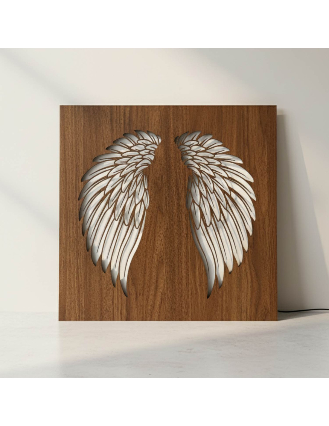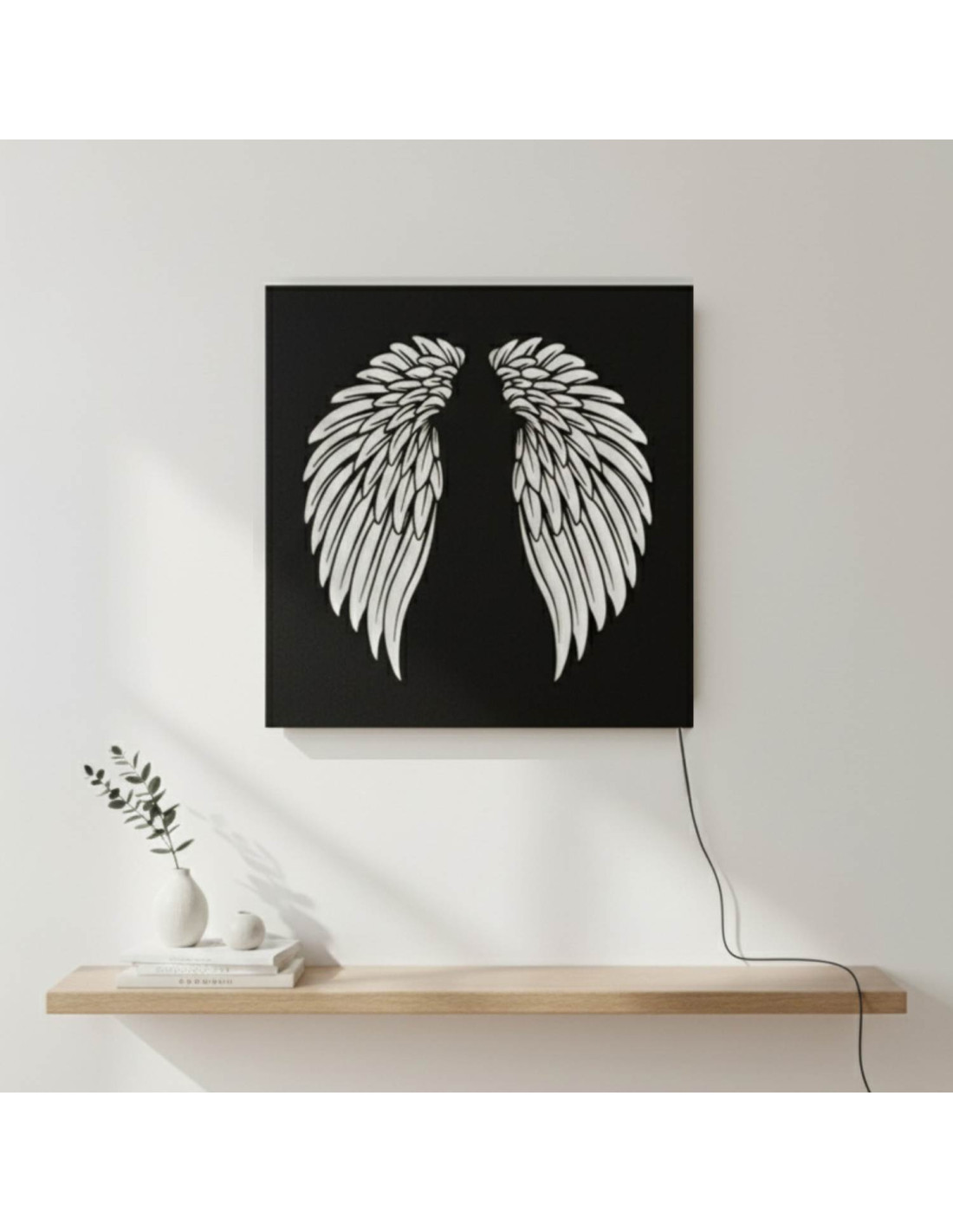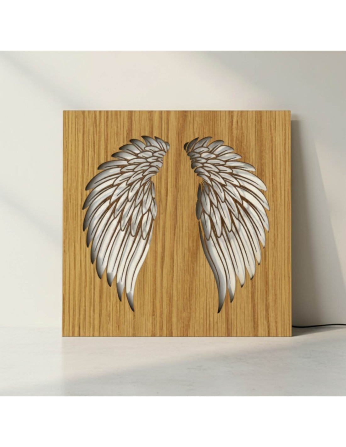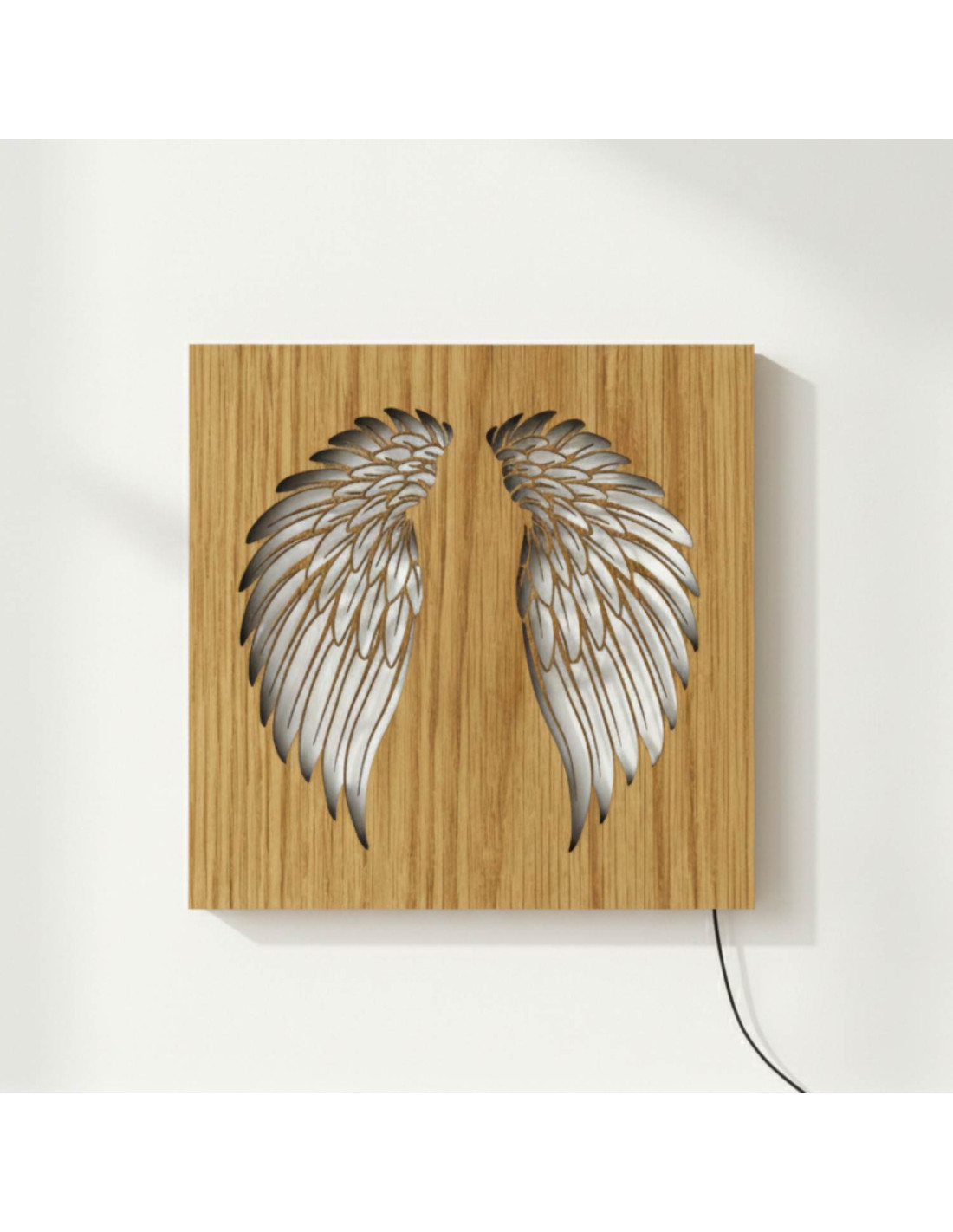 Hinterleuchtetes LED-Bild aus Holz – Engelsflügel an der Wand – MULO