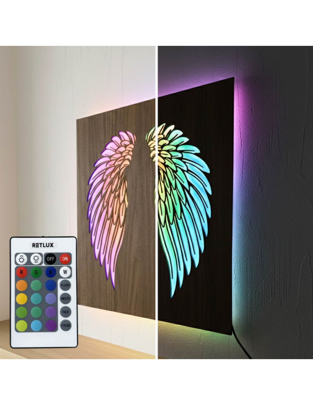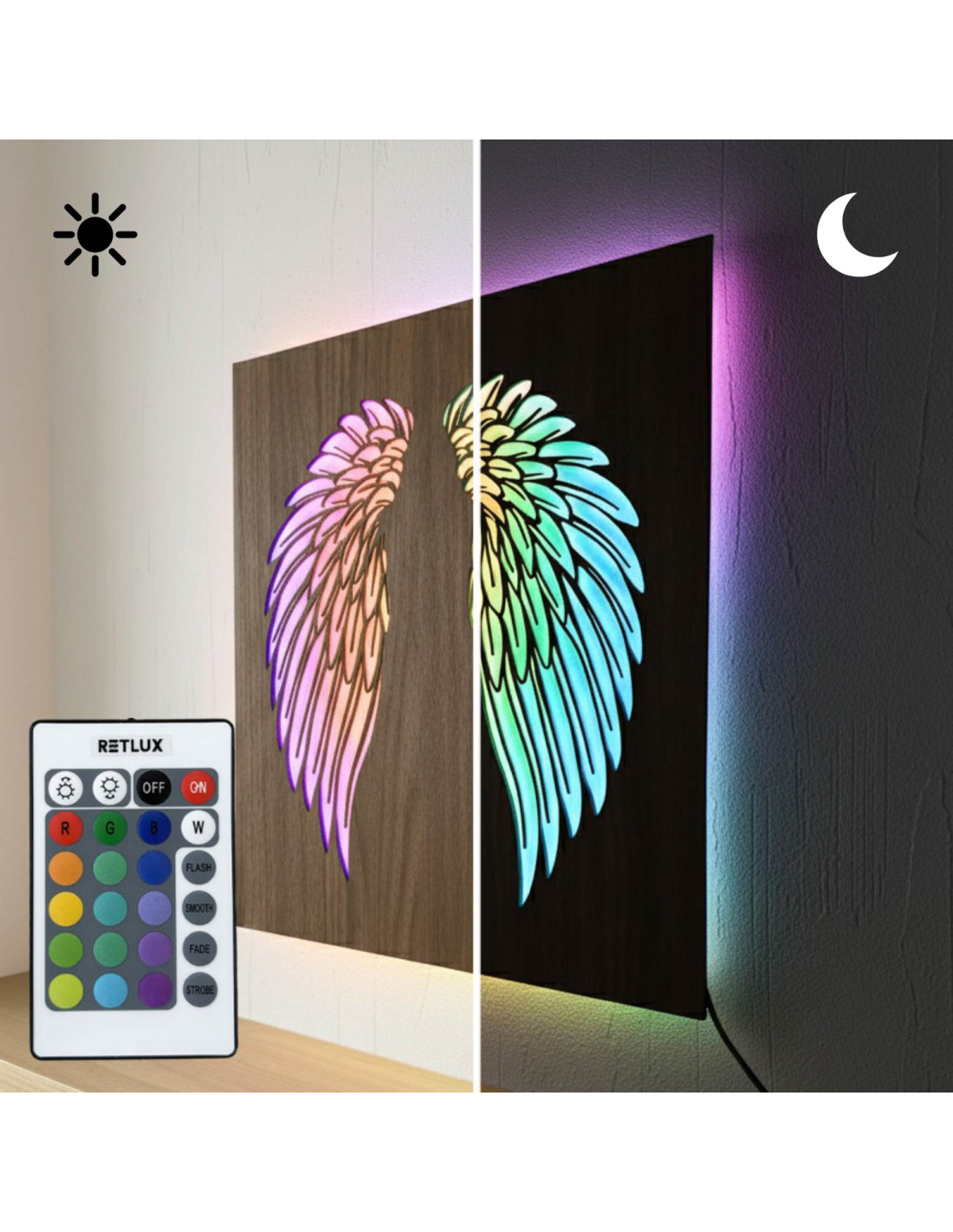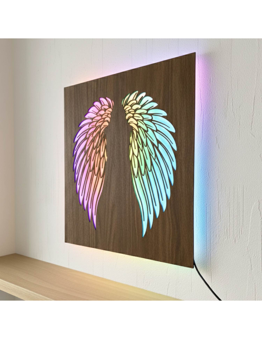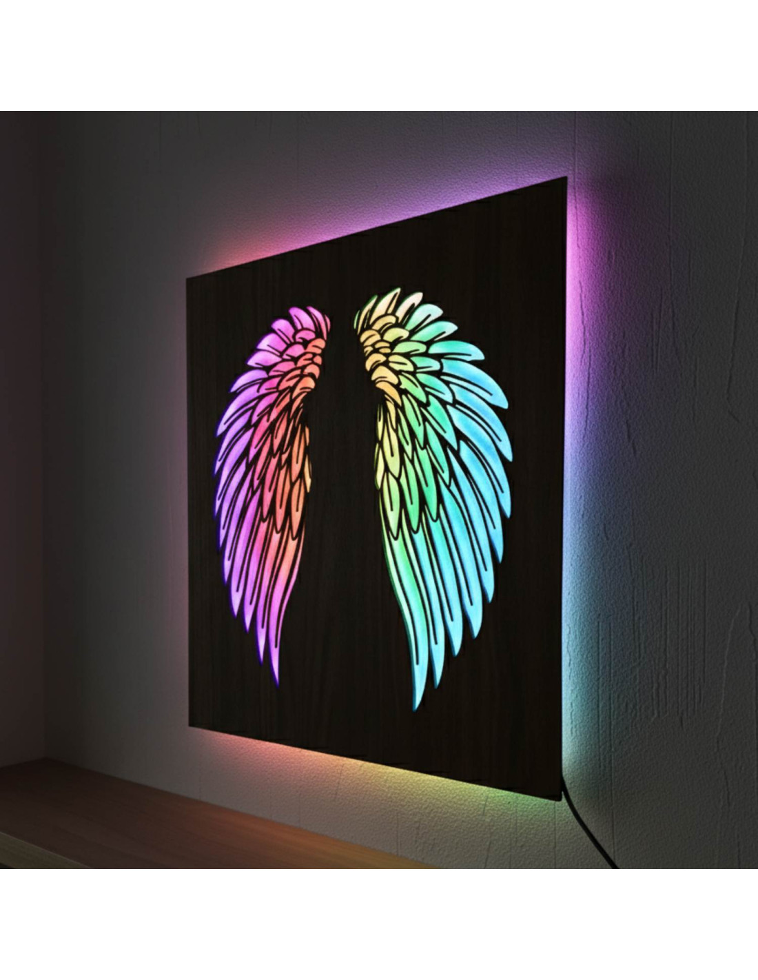 LED-Holzbild – Engelsflügel mit moderner RGB-Beleuchtung